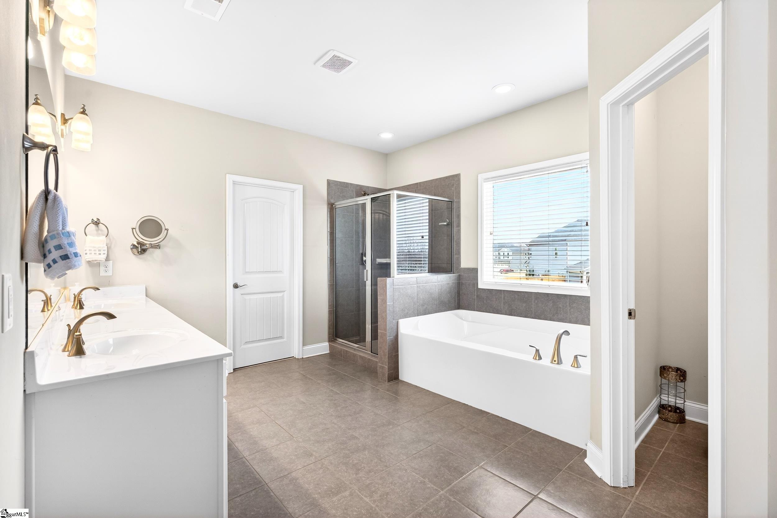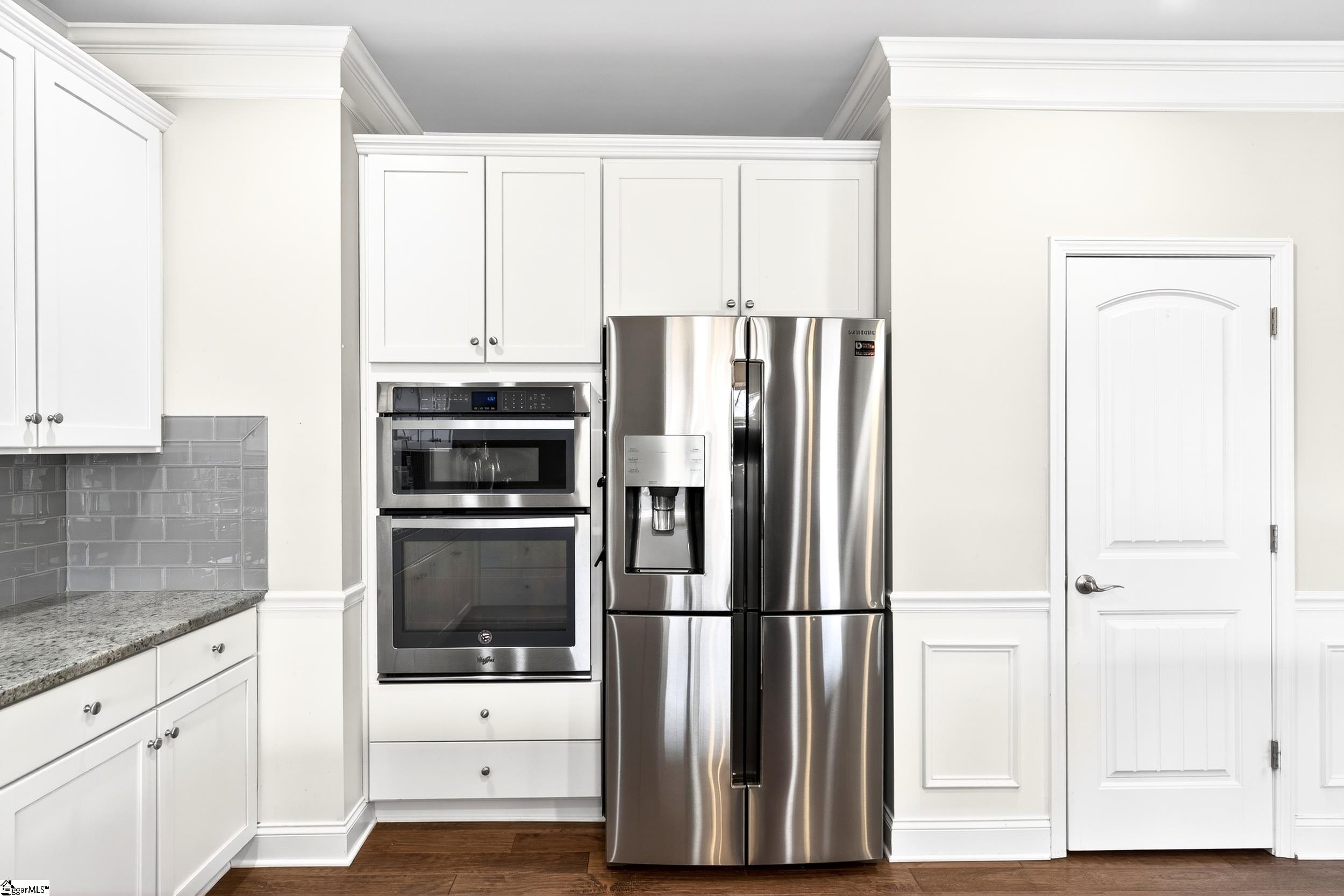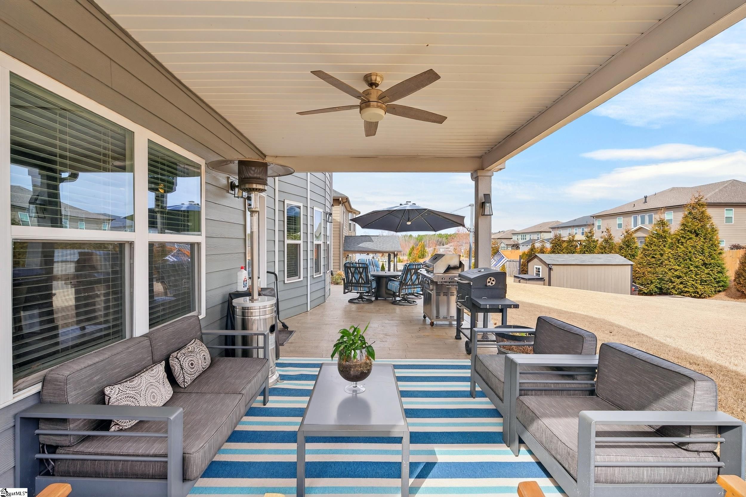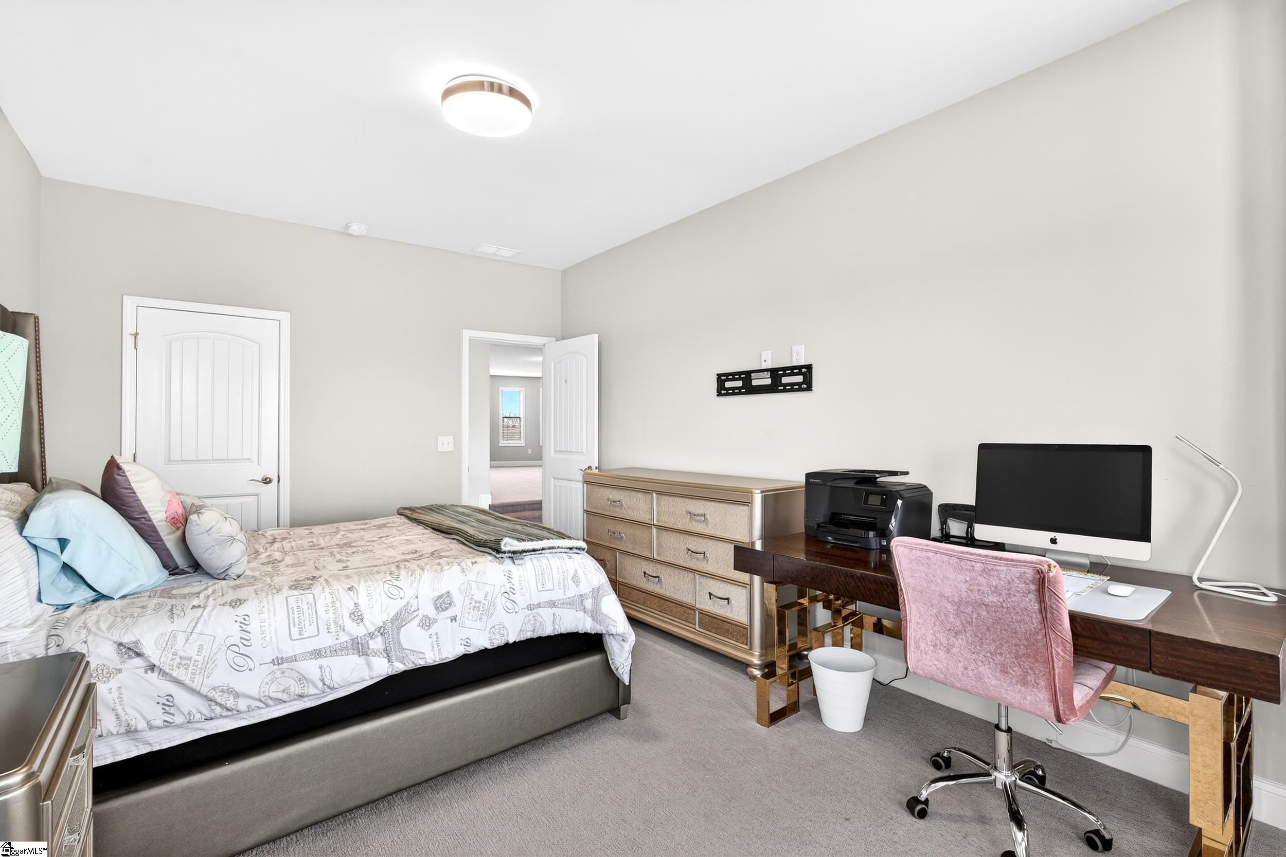 Beautiful brick and stone two-story home featuring hardwood floors, extensive trim detail, and a grand entry with staircase. The main level offers an open floor plan with a coffered ceiling in the living room, fireplace, and abundant natural light. Formal dining room with wainscoting and crown molding. Spacious bedrooms upstairs plus a versatile loft/flex area. The owner’s suite includes dual vanities and a separate shower. Dedicated laundry room and ample storage throughout. Enjoy the covered back patio overlooking a large, level backyard—perfect for entertaining or future outdoor additions. Two-car garage. Conveniently located near BMW, GSP Airport, downtown Greer and Greenville, with easy access to shopping, dining, and major highways.