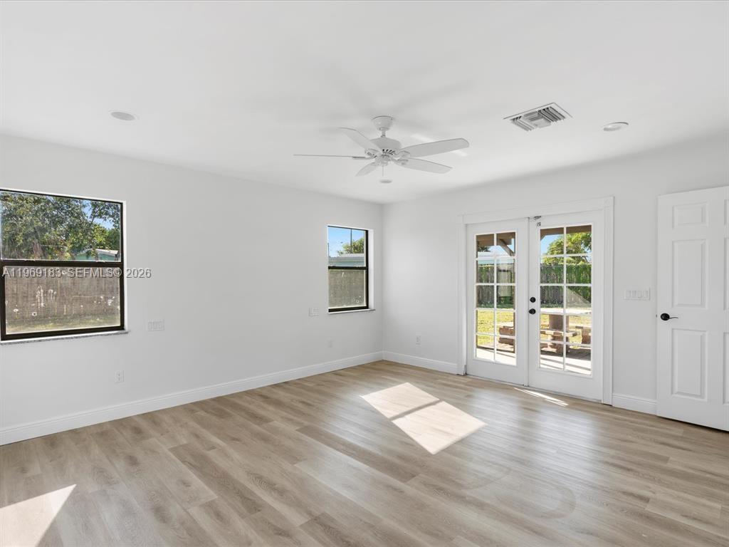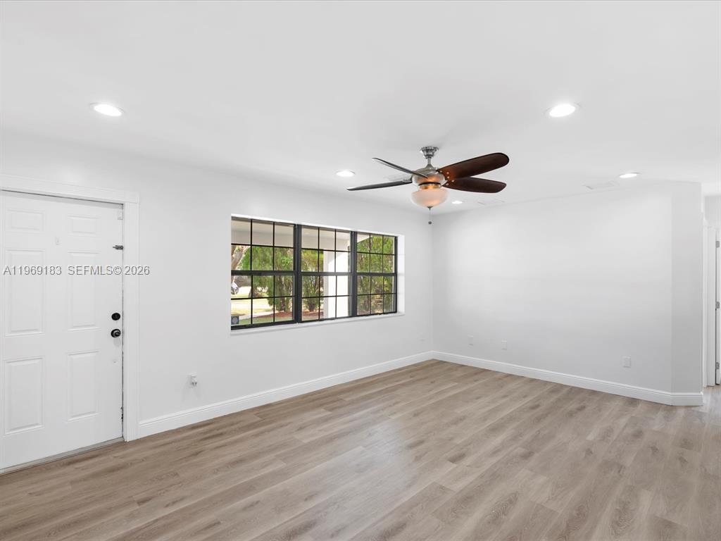 NO HOA and fast approval. Welcome to this charming 3-bed, 2. 5-bath home with an extra room that could be 4th bedroom or recreation. The open floor plan boasts abundant natural light, large living & family rooms, and a spacious kitchen with formal dining—ideal for entertaining. Newly installed wood floors & ceiling fans enhance comfort. Features newer A/C & W/D. French doors open to a large patio & huge fenced yard—perfect for dogs. Includes a giant metal storage shed. Nestled in a quiet cul-de-sac, close to I-95, US1, Deerfield Beach, shopping & dining!