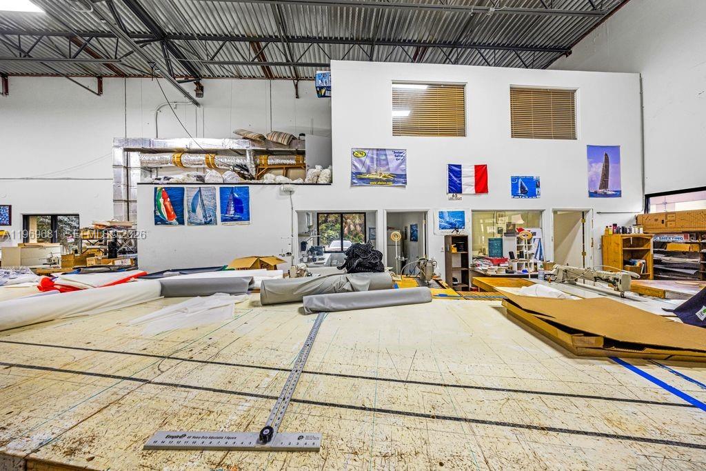 The warehouse features approximately 21’ clear ceiling heights, supporting efficient vertical storage, racking, light manufacturing, and even the potential addition of a second-floor office to maximize usable space. Constructed with durable tilt-up concrete, the building provides hurricane-resistant design, a fully air-conditioned warehouse, and a professional ground-level office presence.