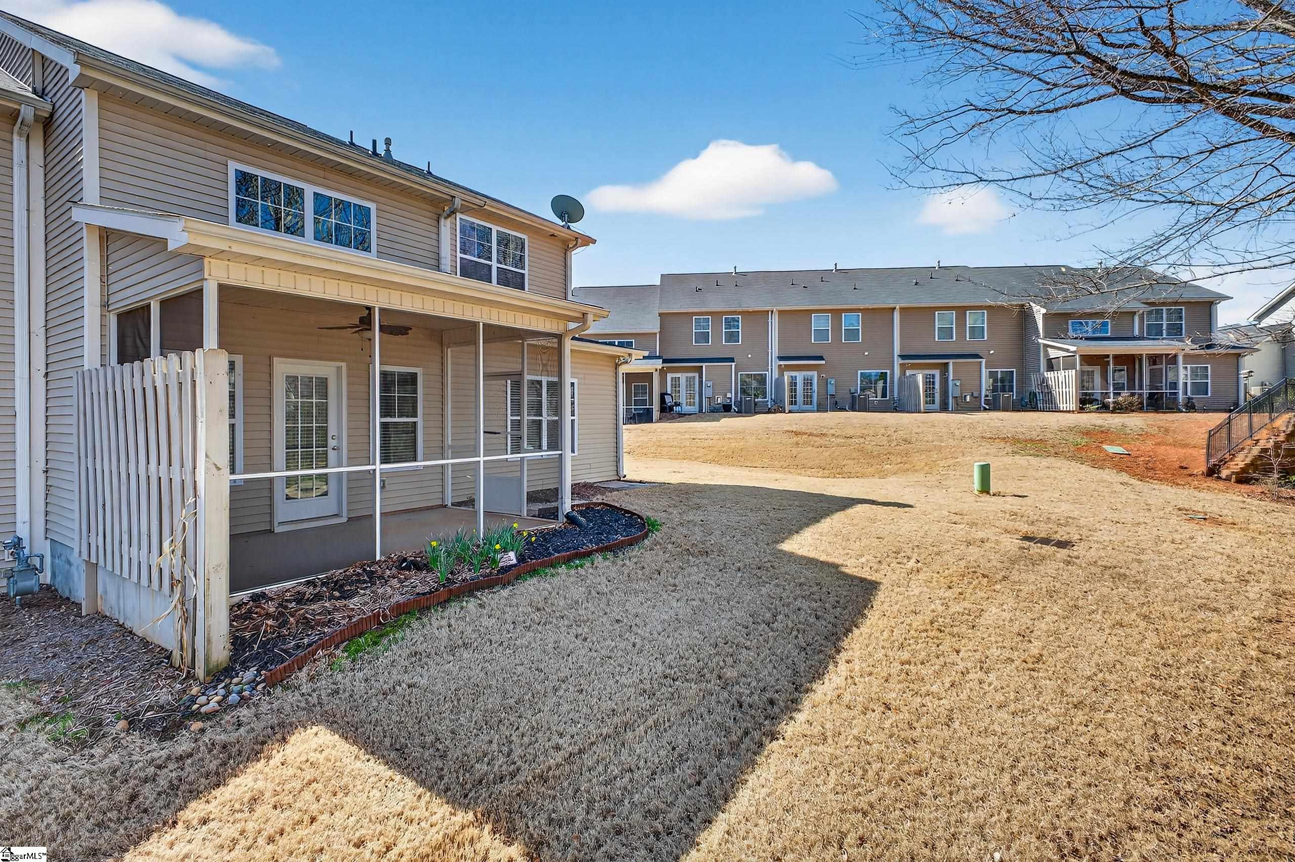Wonderful townhouse in a gated community that is conveniently located to I-385 with easy access to Simpsonville and downtown Greenville. The spacious, open floorplan features a dining room, great room, kitchen and primary bedroom on the main level. The kitchen has granite countertops and stainless appliances. Upstairs you will find 2 bedrooms, a full bath and a loft which would be the perfect office. There is plenty of storage with the large closets and a walk in attic. Enjoy spending time on your screened porch overlooking green space. This end unit has one of the best lots in the neighborhood! Home was recently painted and is in move in condition!