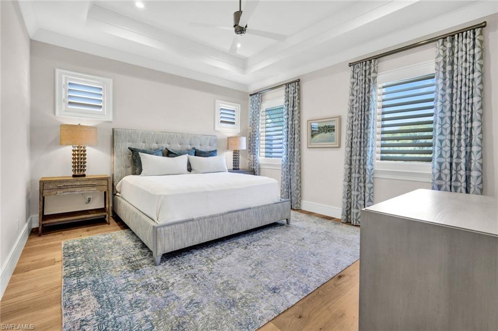 New to the market in Windward Isles, 6892 Leeward Way is a custom Seagate Development estate positioned on an oversized south facing homesite with expansive lake views and rare privacy. Thoughtfully designed with elevated craftsmanship and high end finishes, the residence welcomes you through a 10 foot solid entry door into a marble accented foyer highlighted by a striking floating staircase with glass panels and substantial wood treads, while wide plank wood flooring, detailed ceilings, crown molding, plantation shutters, and Bahama shutters enhance the interiors. The gourmet kitchen is outfitted with a 48 inch Wolf gas dual oven range, Sub Zero refrigeration and wine storage, two Bosch dishwashers, and a generous custom walk in pantry, opening seamlessly to spacious living and dining areas protected by hurricane impact glass, motorized bug screens, and hurricane shutters. The first floor primary suite serves as a private retreat with three large walk in closets featuring custom built ins and a spa style bath offering dual water closets with bidets, a freestanding soaking tub, an oversized multi head shower, and marble flooring, while a den or fourth bedroom and an elegant powder bath complete the main level. Upstairs, a large loft and dedicated media or family room with U Line under counter refrigerator complement two well appointed guest suites with walk in closets and beautifully finished en suite baths, one enjoying a private balcony with panoramic lake views. Outdoor living is equally impressive with a custom pool and spa accented by dual waterfall bowls, lush landscaping with artificial turf, a fully equipped summer kitchen, linear fireplace, and expansive covered seating areas designed for entertaining. Additional features include a 500 gallon buried propane tank, whole home generator, Control4 smart home integration, Somfy motorized blackout shades, dedicated AV rack, and a conditioned three car garage, all set within one of Naples’ most desirable and centrally located communities.