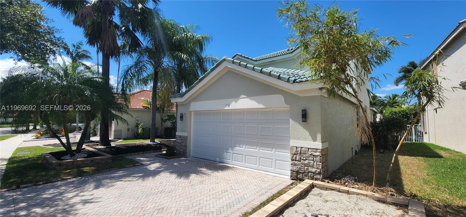 Enjoy beautiful lake views from the covered patio with screened enclosure. Additional features include hurricane shutters and a two-car garage.
