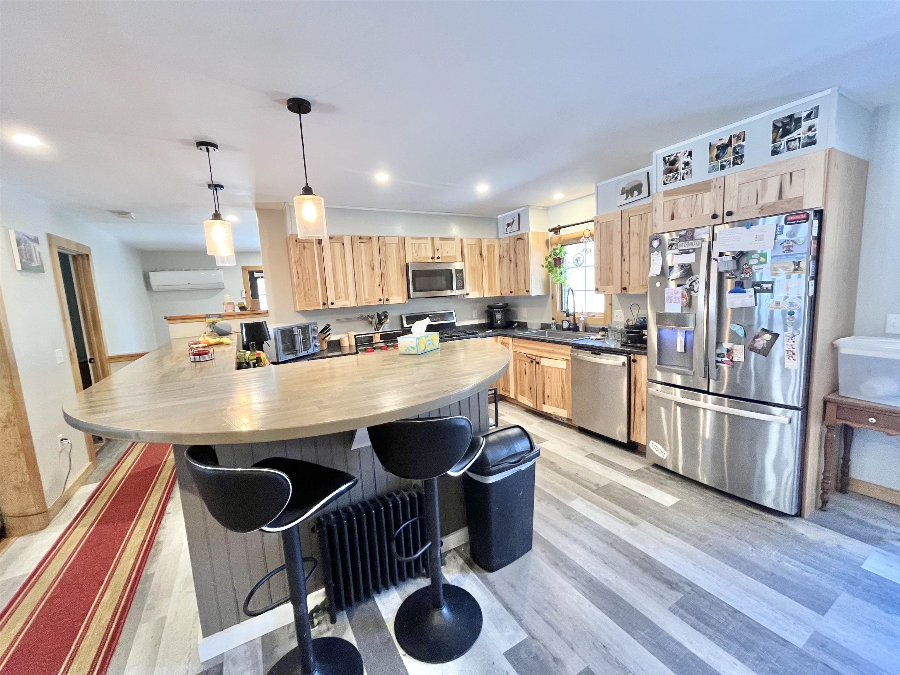 Come see this pristine, newly renovated 3 bedroom, 2 bath home set on 7. 58 private acres. The current owner has thoughtfully enhanced the property with numerous upgrades, including fresh exterior paint, an oversized wraparound deck, a poured concrete garage floor, new high efficiency water heater, and wood stove inserts in both the main level and lower level fireplaces. Mini splits provide efficient heating and cooling, while a whole house generator ensures year round peace of mind. The main level of the home features a well designed kitchen with granite countertops, an oversized butcher block dining island, and stainless steel appliances, with direct access to a spacious deck overlooking the backyard and surrounding woods & trails. The main living area offers a warm Vermont feel, complete with a striking stone fireplace and ample space to gather. Off the main level living space are three large bedrooms and the two bathrooms. The finished lower level expands your living options with a full kitchen, large living room with a second fireplace, walkout access to the level yard, a bonus room, huge storage closet and potential to complete an additional bathroom—ideal for guests or multi-generational living. Outdoors, enjoy maintained trails throughout the property and a freshwater stream, perfect for nature lovers. The oversized two-car garage provides plenty of room for vehicles and recreational equipment. For outdoor enthusiasts, this location is hard to beat—ride directly from your home for snowmobiling straight to the VAST trails from your property or ATV adventures, and enjoy nearby hiking and lakes. Conveniently located between Mount Snow and Berkshire East, with easy access from Massachusetts, Connecticut, and New York, this property is ideal as a primary residence, vacation home, or investment.