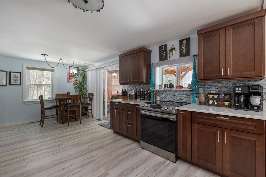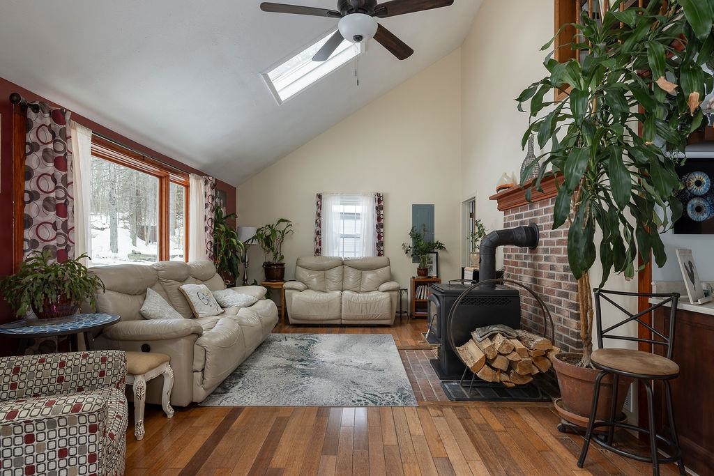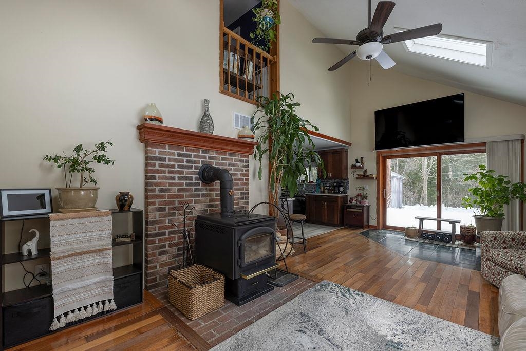 Discover the perfect blend of charm, comfort, and natural beauty in this must-see Saltbox Cape, ideally situated just outside of town with 2. 5 acres, river frontage, and generous garden space. Inside, the home has newer windows and sliders and has been thoughtfully remodeled, beginning with the beautiful kitchen featuring Energy Star smart appliances, a Kraus water filtration system, quartz countertops, KraftMaid solid wood cabinetry, luxury vinyl plank flooring, and a welcoming dining area with coffee bar. The renovated bathroom offers double sinks, a tiled shower and radiant floor heat under lovely tile for a cozy touch you’ll appreciate year-round. The living room, with its cathedral ceiling, skylights and wood stove, creates an inviting gathering space. A spacious first-floor office/laundry room adds everyday convenience. Upstairs, you’ll find two large bedrooms with closet systems plus a walk-up attic for additional storage or future expansion. A detached two-car garage (new in 2005) provides ample parking and workspace. Outside, a brand-new greenhouse awaits your gardening ambitions, complemented by additional outbuildings and canopies for tools and supplies. The soothing sound of the river below enhances the peaceful setting, while the covered porch and deck offer wonderful outdoor living areas. Strawberry plants and fruit trees provide summer enjoyment. This location strikes the perfect balance between tranquility and accessibility—walk to local shops and the library, enjoy an easy commute via I-89 north or south, and reach Lake Sunapee or Mount Sunapee in minutes. Boston is just 1. 5 hours away. Town residents also have access to French's Park at Lake Massasecum for summer fun. A rare opportunity to enjoy acreage, river frontage, and modern updates in a truly convenient location. Showings begin at the Open house on Saturday, February 21st from 10-1.