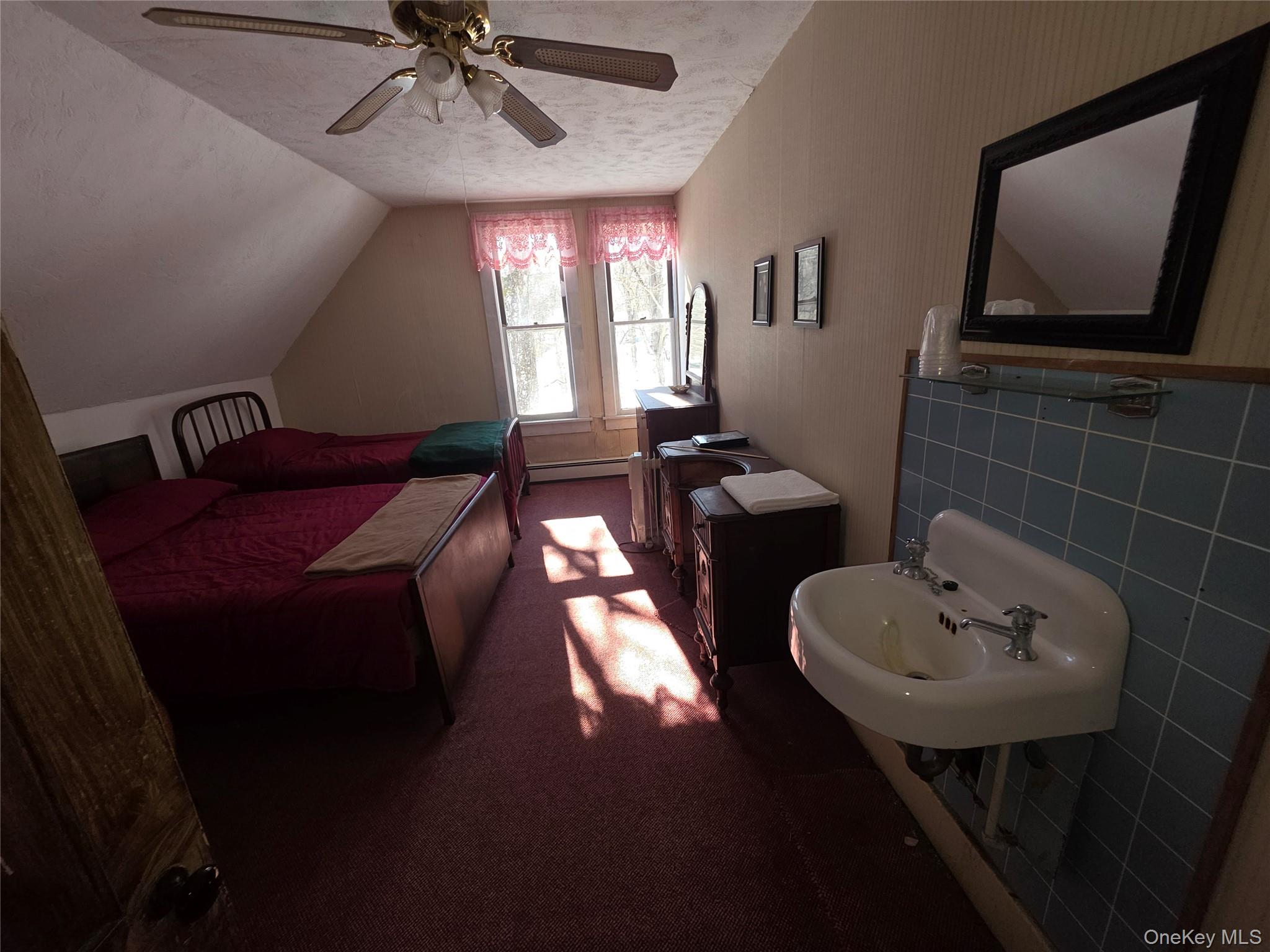 Exceptional opportunity to own a historic lodge property in the Catskills, formerly operated as the well-known Woodlands Lodge. Situated on approximately 2. 4 acres in desirable Round Top, New York, this expansive property offers incredible potential for a bed & breakfast, boutique inn, wedding venue, retreat center, or private estate. The main residence features multiple levels of bedrooms and baths, showcasing original character throughout, including beautiful woodwork, pocket doors, and a grand staircase in the impressive entry foyer. The first floor offers a spacious prep kitchen with pantry and office area, bar room, double parlor, large sun-filled dining room, and an additional sitting room created from enclosed porch space. A rear staircase and separate exterior entrance provide convenient access to guest accommodations. The second floor includes five bedrooms and six bathrooms, while the third floor offers seven additional bedrooms with sinks and two full baths. A rear addition provides four more bedrooms with baths, creating substantial capacity for guests or extended living arrangements. Additional features include a laundry area and staff quarters off the kitchen. The Property is being sold As-Is and Cash offer preferred because of low asking price. The back cottage is gutted and is approximately 1024 square feet. The property is ideally located near popular ski resorts, golf courses, hiking trails, and outdoor recreation, with convenient access to the New York State Thruway, making travel from the New York City metro area easy. With vision and renovation, this property presents tremendous potential to restore it to an active hospitality destination or create a one-of-a-kind private compound. The property has been successfully subdivided, and taxes will be based on the 2. 4-acre parcel. Most furnishings and contents associated with former lodge operations are included in the sale, with limited personal exclusions
