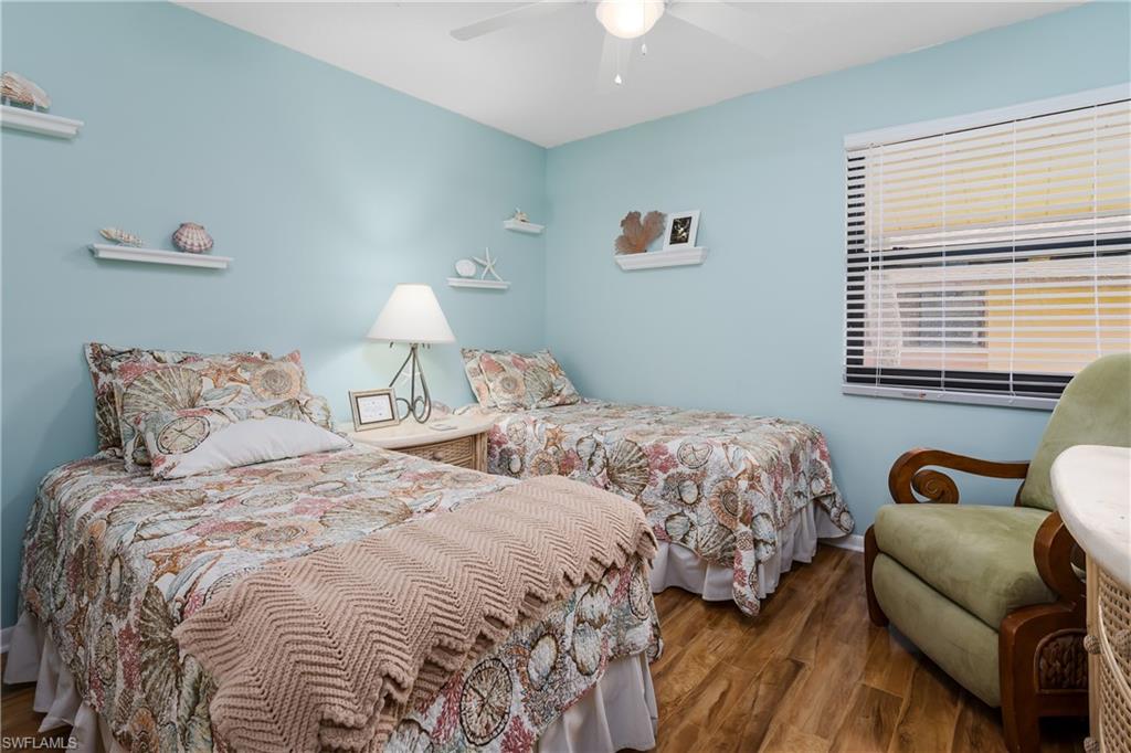 Beautiful second floor condo at Tropic Schooner with views of the pool area and furnished with a tropical flair. The kitchen features white cabinets and appliances plus a breakfast nook to enjoy your morning coffee. Move in ready. There are two bedrooms, two bathrooms, a utility area with washer and dryer plus a large storage closet. New AC installed in 2026. Tropic Schooner offers tennis, pickleball, bocce, a community room with gas grills and car wash area, and two lovely pool areas. Tropic Schooner is located close to The Isle of Capri, Marco Island, and minutes away from all the activities of Naples. You will have no shortage of restaurants, beaches, shopping, and entertainment available. Welcome to your piece of Paradise.