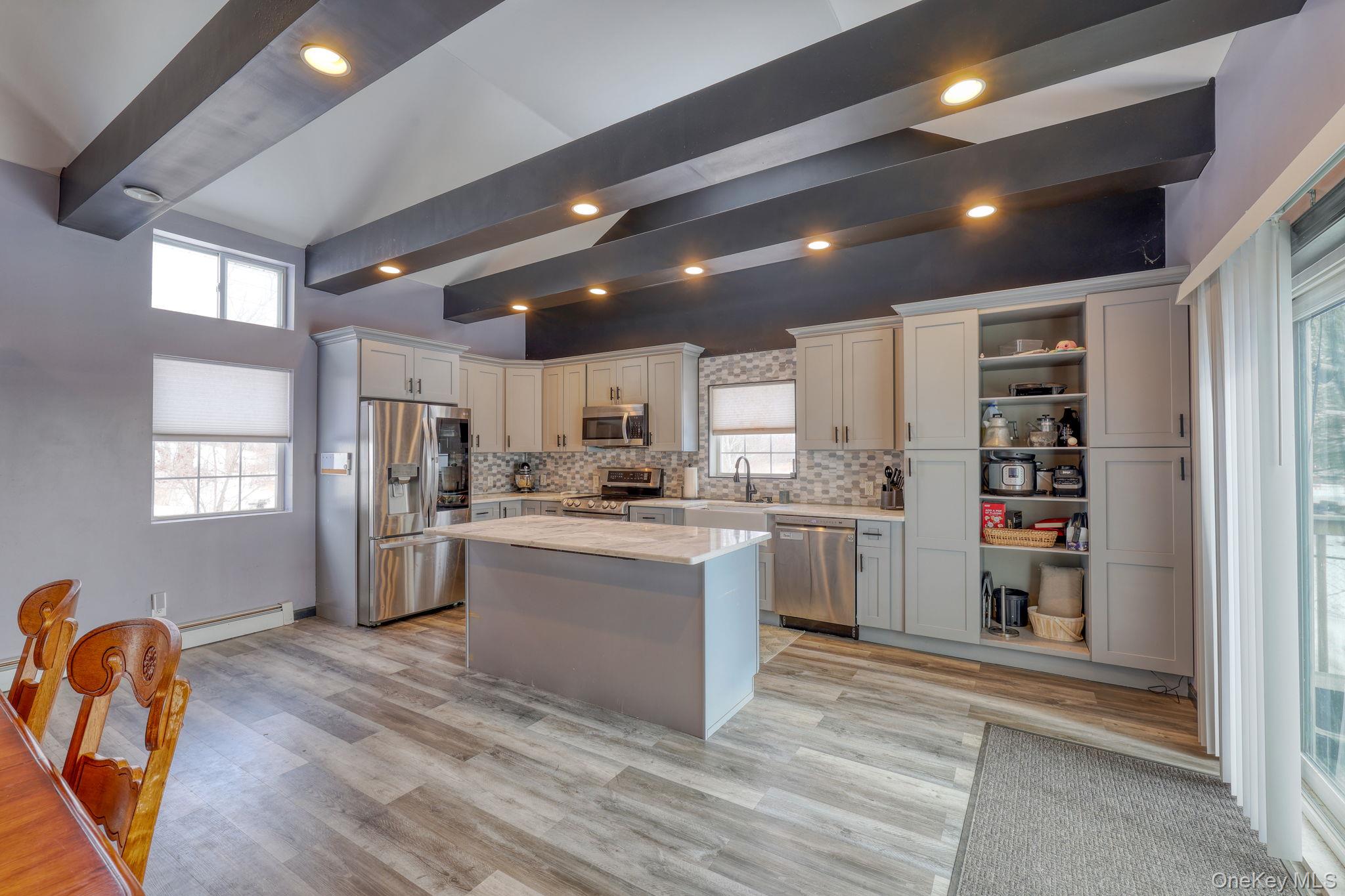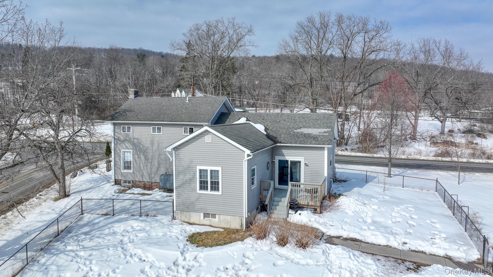 TIMELESS ELEGANCE - MODERN COMFORT - EFFORTLESS LIVING Nestled within the highly regarded Minisink Valley Central School District, this exquisitely updated vintage residence masterfully blends historic charm with refined contemporary living. THOUGHTFULLY RENOVATED, this home offers warmth, sophistication, and effortless functionality. The heart of the home is the stunning kitchen, featuring SOARING CEILINGS with STRIKING EXPOSED BEAMS, rich GRANITE countertops, STAINLESS STEEL APPLIANCES and a GENEROUS CENTER ISLAND that invites large gatherings. Sliding glass doors open to the outdoor deck, making it easy to enjoy morning coffee outside or host unforgettable evenings. Natural light fills the bright, open living spaces, creating a warm and welcoming atmosphere. A decorative electric fireplace adds charm and ambiance, while the thoughtful layout offers three comfortable bedrooms — including a CONVENIENT FIRST FLOOR BEDROOM— and TWO FULL BATHS. Designed for both everyday living and entertaining, this home also includes CENTRAL AIR (split system), a full basement with excellent storage or future possibilities, a NEWER WELL PUMP, and a separate laundry area with NEWER WASHER/DRYER. Outside, you’ll find gracious FRUIT PRODUCING PEAR TREE, lovely colorful poppies, FIRE PIT, a spacious FENCED-IN YARD for relaxing, playing, or entertaining, along with a VERY OVERSIZED DETACHED GARAGE and plenty of additional parking. This is more than just a home — it’s a place to gather, grow, and create lasting memories. A rare opportunity to own a vintage home reimagined for today’s lifestyle — move-in ready and designed to impress!