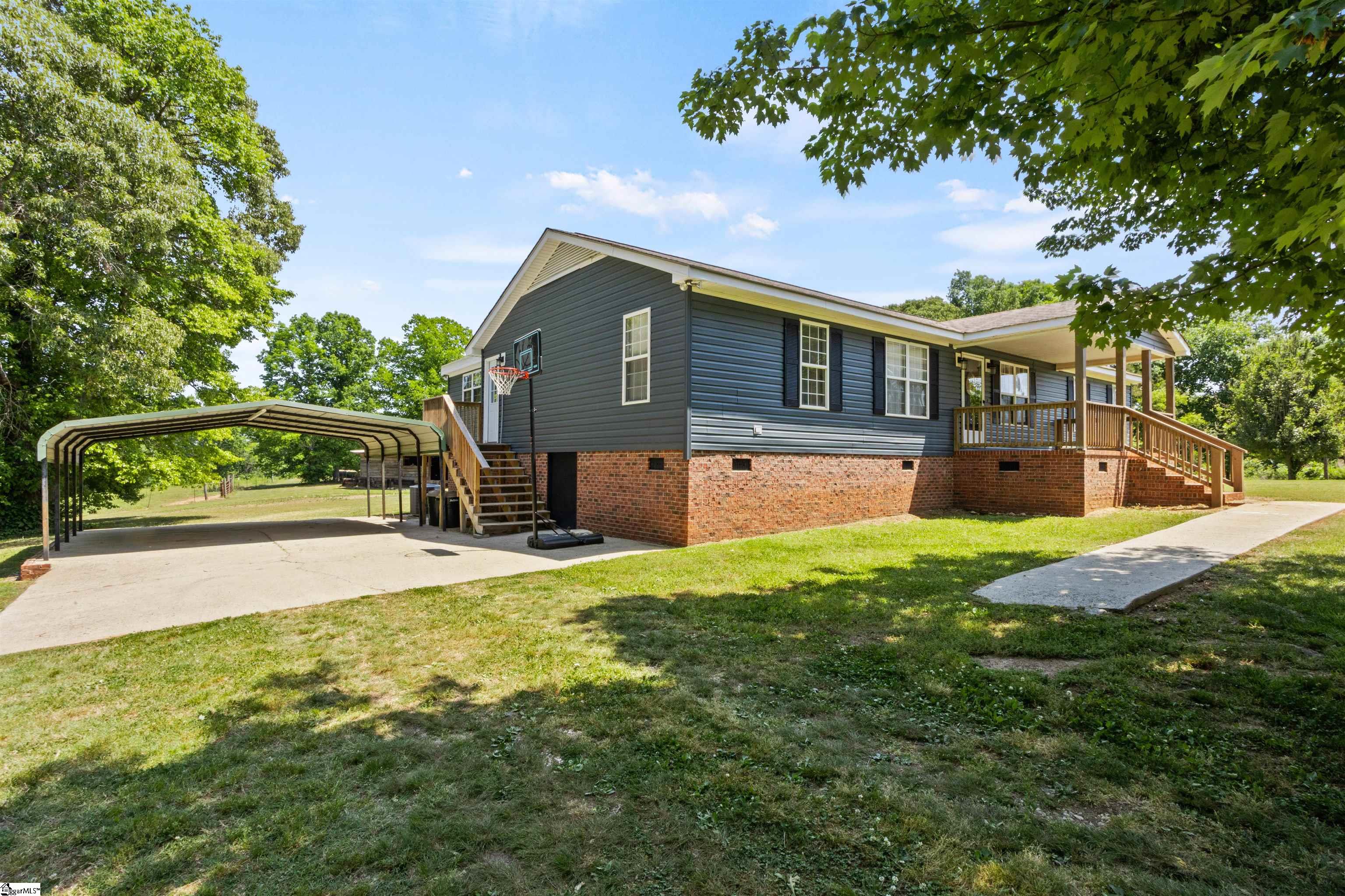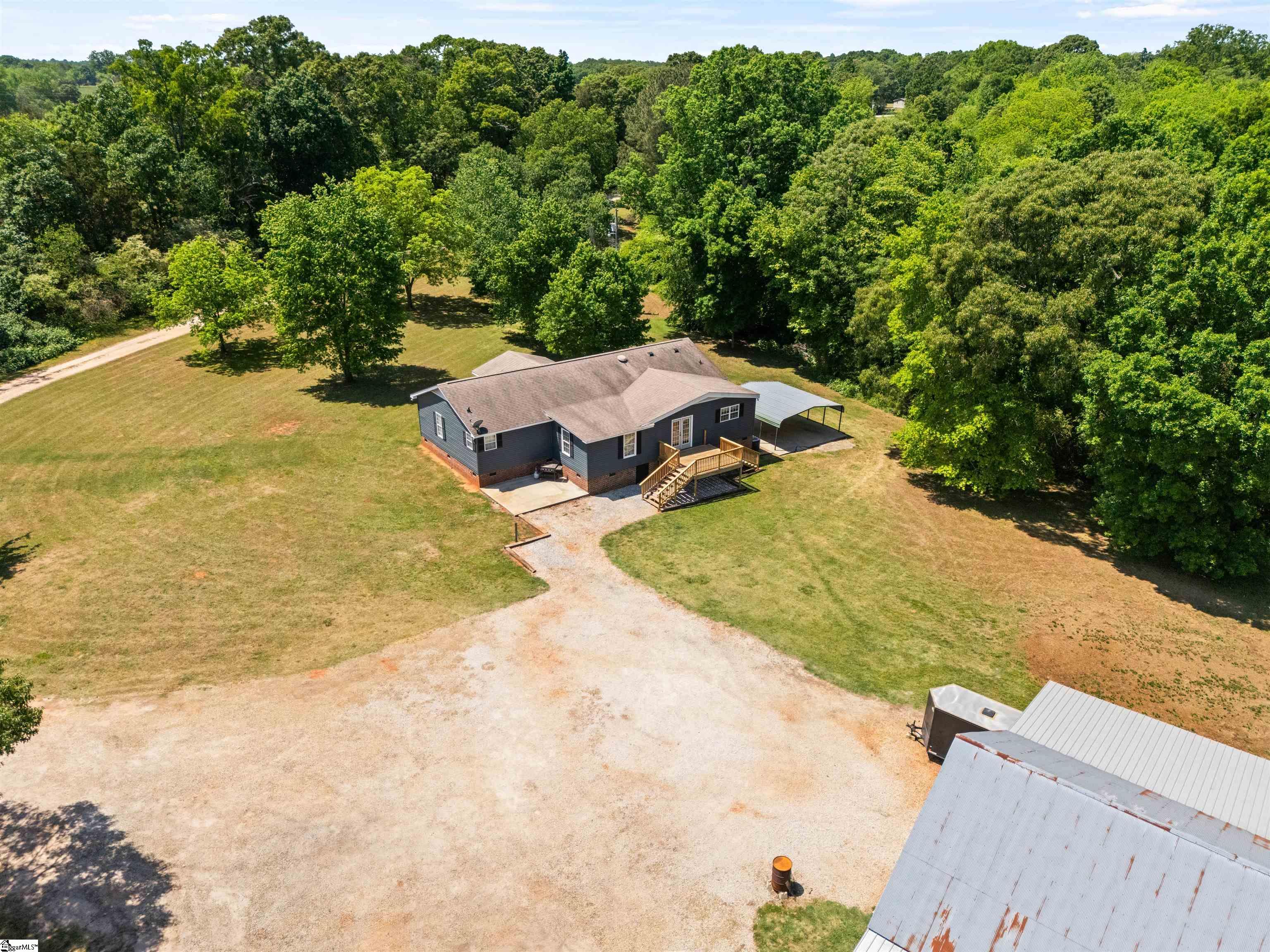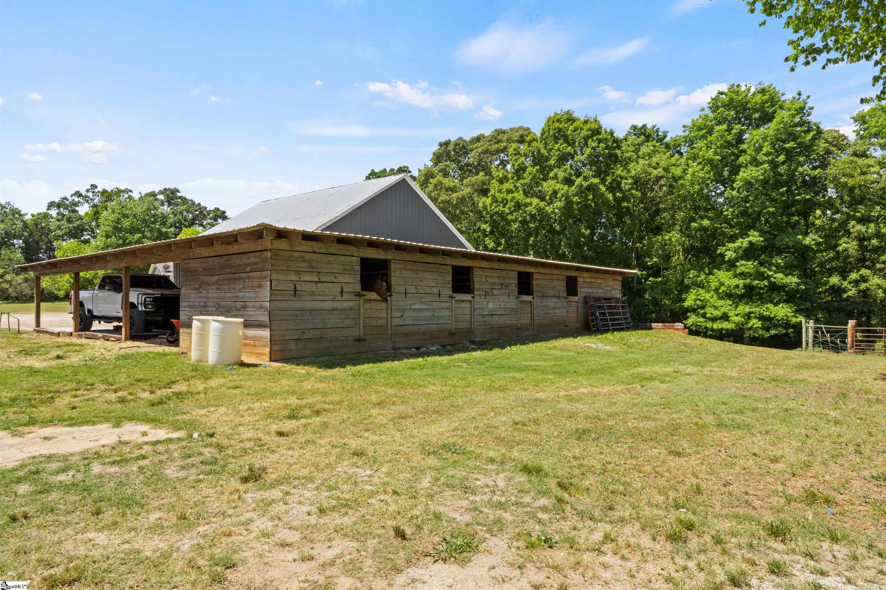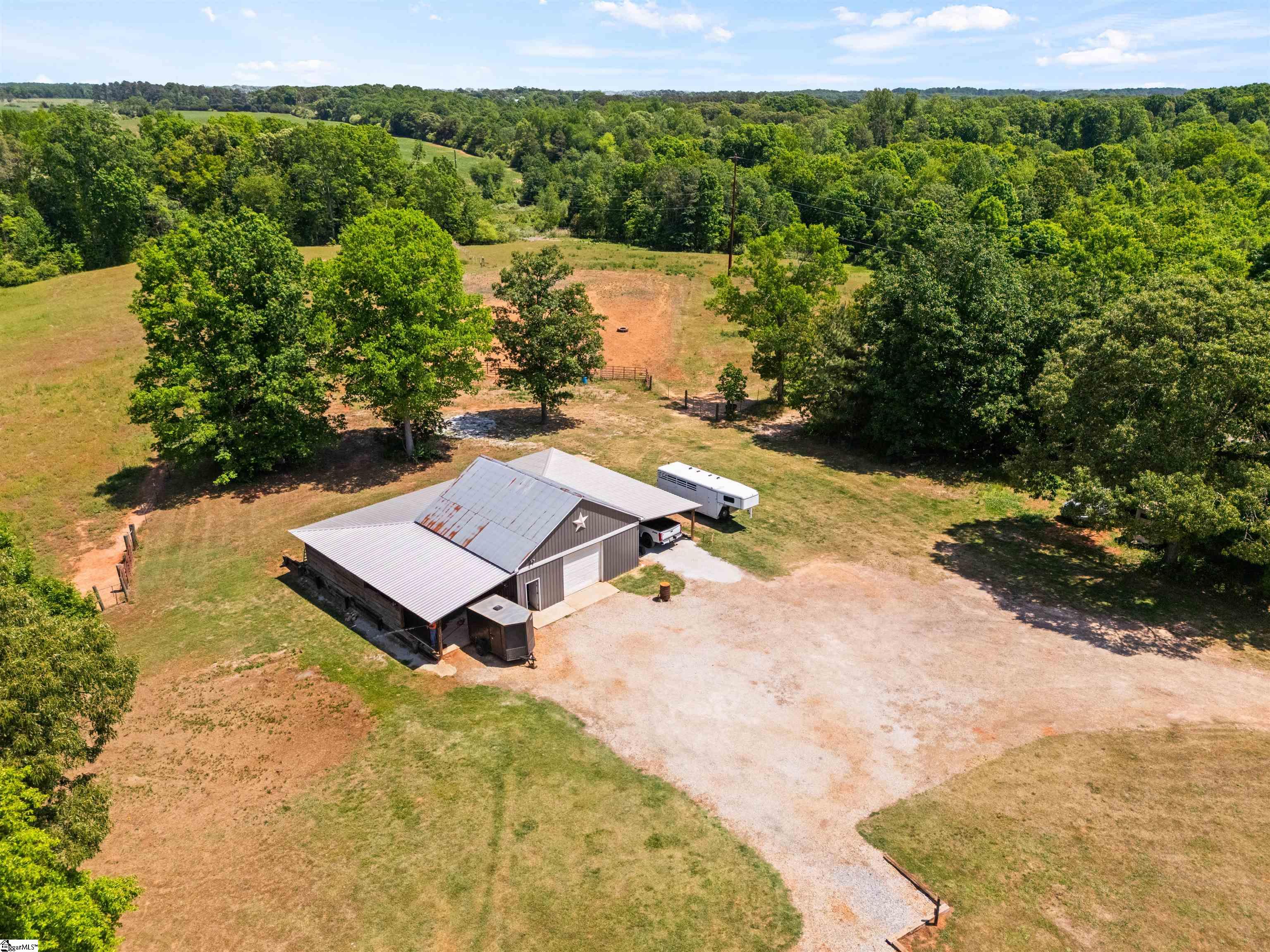 Private, usable acreage just minutes from I-85 and Lake Hartwell. This 24-acre property offers approximately 7 acres of fenced pasture, a creek, and level to gently rolling ground that lays well for horses or small-scale farm use. With no restrictions in place, you have the flexibility to expand, fence additional areas, or simply enjoy the land as it is. The barn and shop setup is built to work. A 30x30 fully concreted shop anchors the structure and is surrounded by 16-foot covered lean-tos, creating extensive protected space for equipment, trailers, and hay storage. The shop features both 110 and 220 power, approximately 10. 5-foot clearance to the bottom of the trusses, and a 9-foot tall by 10-foot wide door opening for easy access. On the back side, you’ll find four stalls with fans and power, along with a dedicated tack room for organized daily use. A fully concreted wash rack with hot and cold water and hitching post is already in place. The right side functions as an equipment shed with ample room for tractors and implements. Water is run to the barn and shop. The ranch-style home, built in 1996, offers approximately 2, 236 square feet with a practical single-level layout featuring four bedrooms and two full baths. The spacious living area includes a gas fireplace and flows into the kitchen and dining areas. The kitchen features granite countertops and island workspace. All hard-surface flooring, including bamboo and LVP, provides durability and easy maintenance. The roof was replaced in 2018. Public water and septic are in place, and a two-car carport provides covered parking. Located less than 10 minutes to Port Bass Boat Ramp on Lake Hartwell and approximately 10 minutes to I-85, this property offers country privacy with convenient access to town and interstate travel. If you’ve been searching for fenced pasture, established improvements, and room to live and work without starting from scratch, this property deserves a closer look.