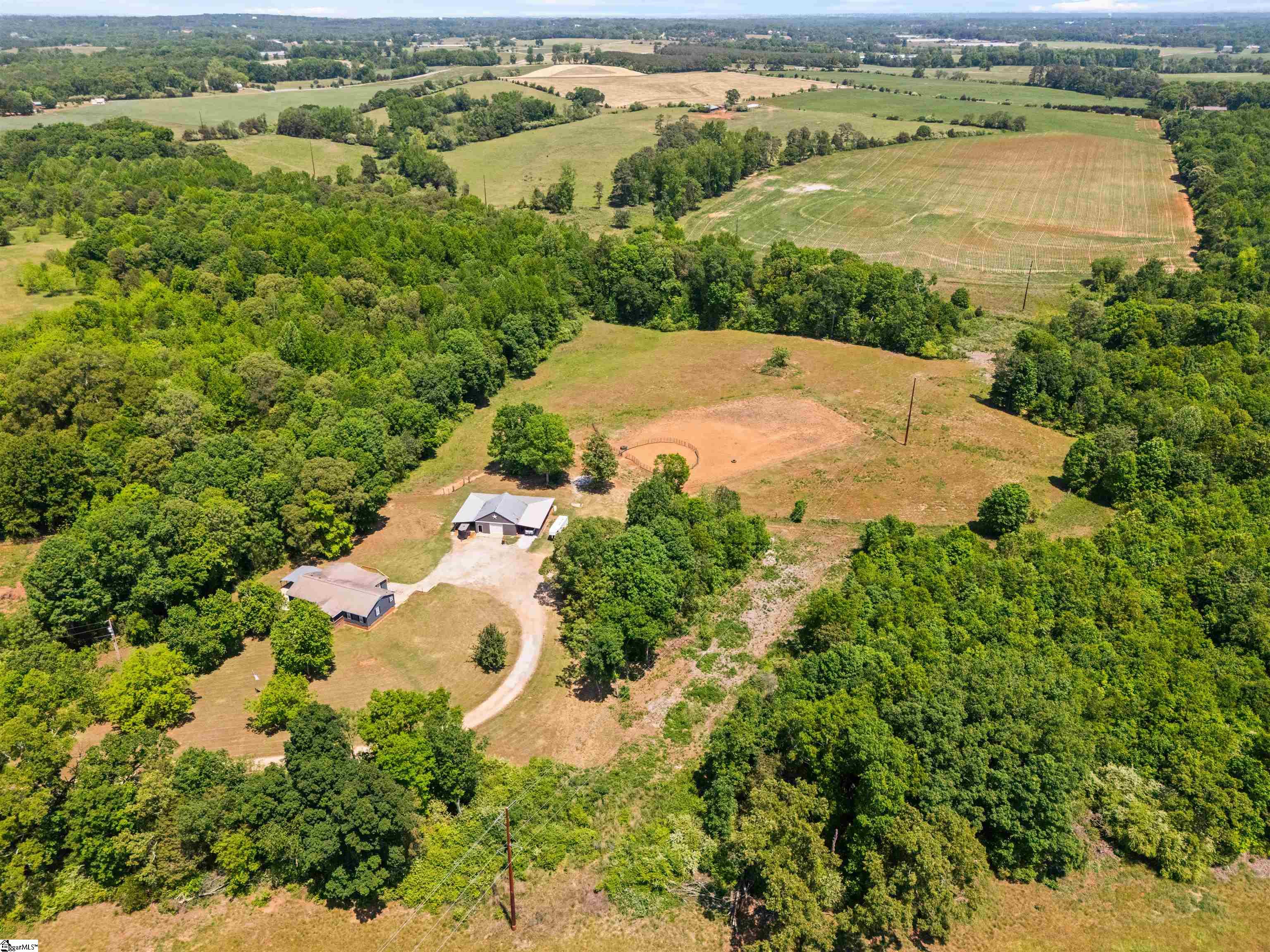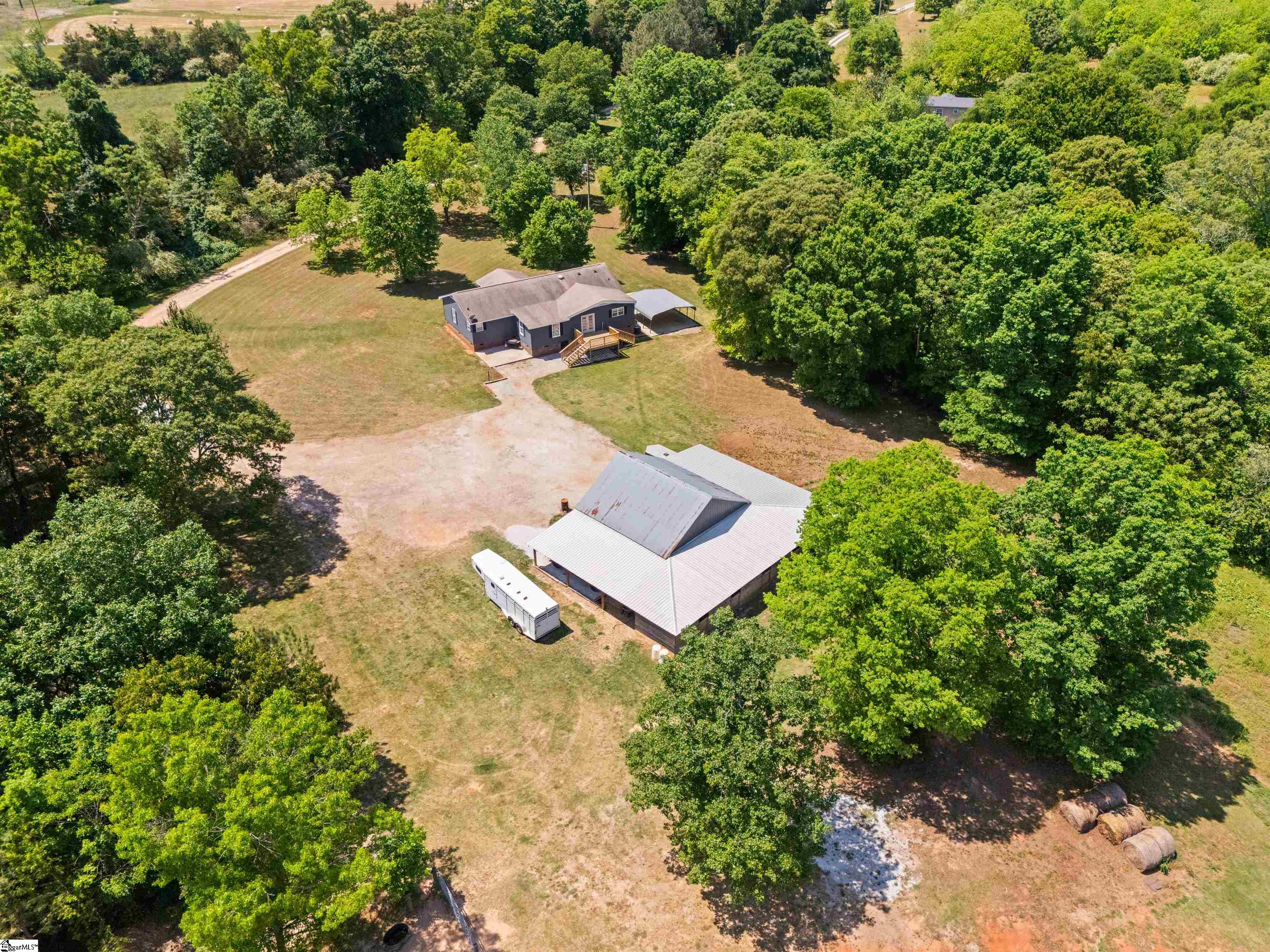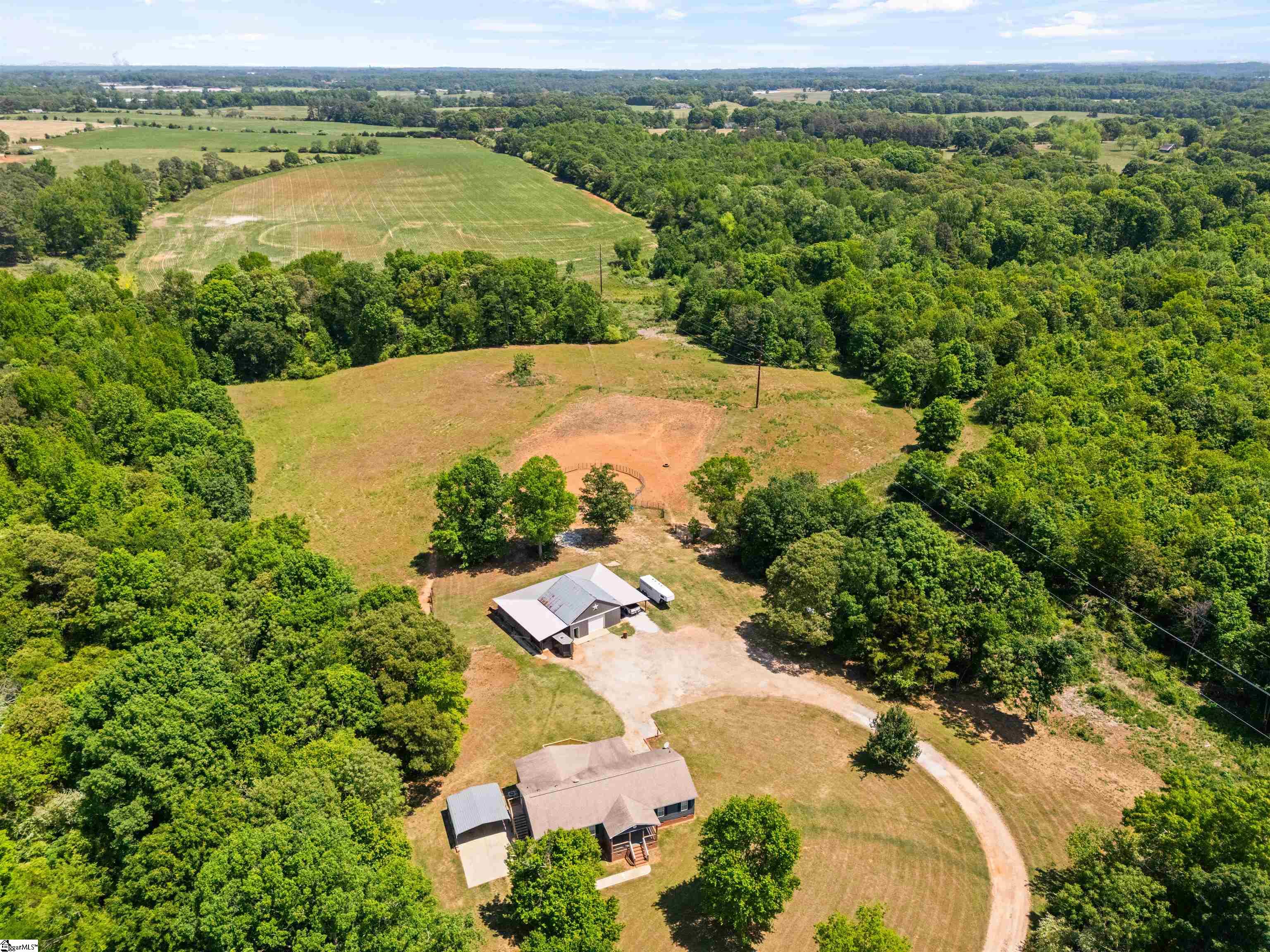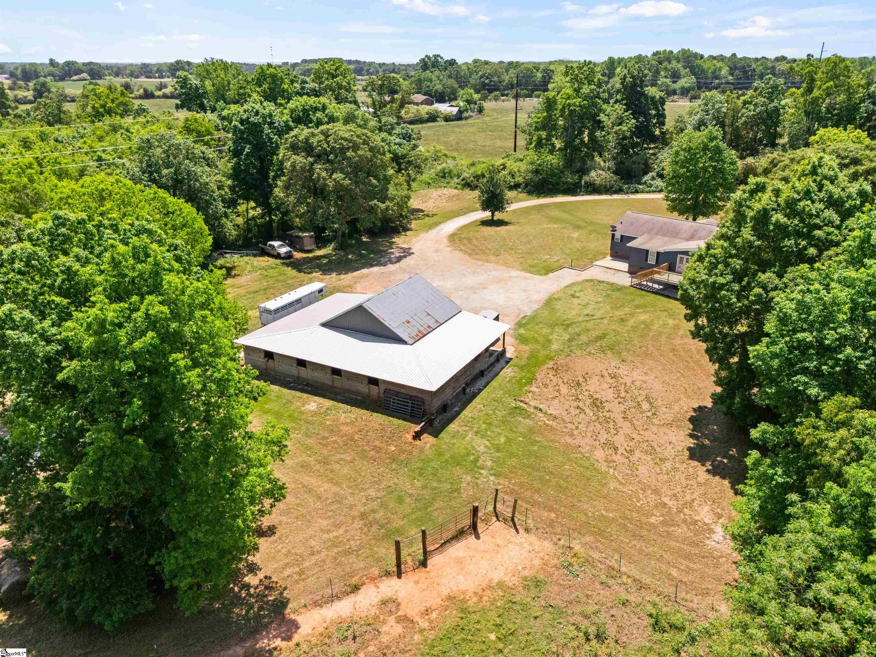 Private, usable acreage just minutes from I-85 and Lake Hartwell. This 24-acre property offers approximately 7 acres of fenced pasture, a creek, and level to gently rolling ground that lays well for horses or small-scale farm use. With no restrictions in place, you have the flexibility to expand, fence additional areas, or simply enjoy the land as it is. The barn and shop setup is built to work. A 30x30 fully concreted shop anchors the structure and is surrounded by 16-foot covered lean-tos, creating extensive protected space for equipment, trailers, and hay storage. The shop features both 110 and 220 power, approximately 10. 5-foot clearance to the bottom of the trusses, and a 9-foot tall by 10-foot wide door opening for easy access. On the back side, you’ll find four stalls with fans and power, along with a dedicated tack room for organized daily use. A fully concreted wash rack with hot and cold water and hitching post is already in place. The right side functions as an equipment shed with ample room for tractors and implements. Water is run to the barn and shop. The ranch-style home, built in 1996, offers approximately 2, 236 square feet with a practical single-level layout featuring four bedrooms and two full baths. The spacious living area includes a gas fireplace and flows into the kitchen and dining areas. The kitchen features granite countertops and island workspace. All hard-surface flooring, including bamboo and LVP, provides durability and easy maintenance. The roof was replaced in 2018. Public water and septic are in place, and a two-car carport provides covered parking. Located less than 10 minutes to Port Bass Boat Ramp on Lake Hartwell and approximately 10 minutes to I-85, this property offers country privacy with convenient access to town and interstate travel. If you’ve been searching for fenced pasture, established improvements, and room to live and work without starting from scratch, this property deserves a closer look.