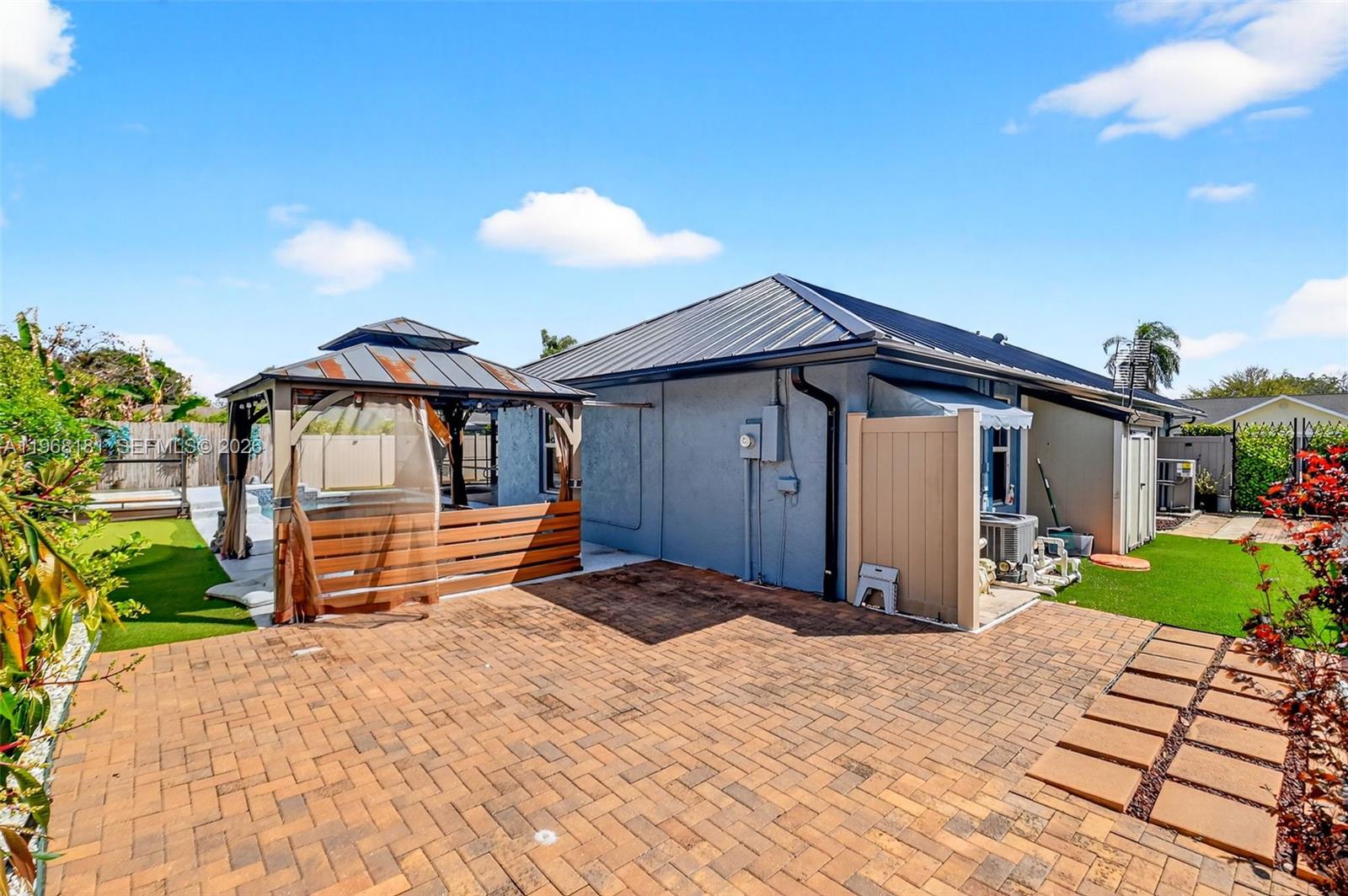 The home features a brand-new metal roof installed in 2025 and over $60, 000 in recent upgrades, including beautiful landscaping and a sensational backyard designed for both relaxation and entertaining. Enjoy your private outdoor oasis with a covered patio, full outdoor kitchen, sauna, jacuzzi, and brand-new decking—perfect for hosting guests or unwinding at home.