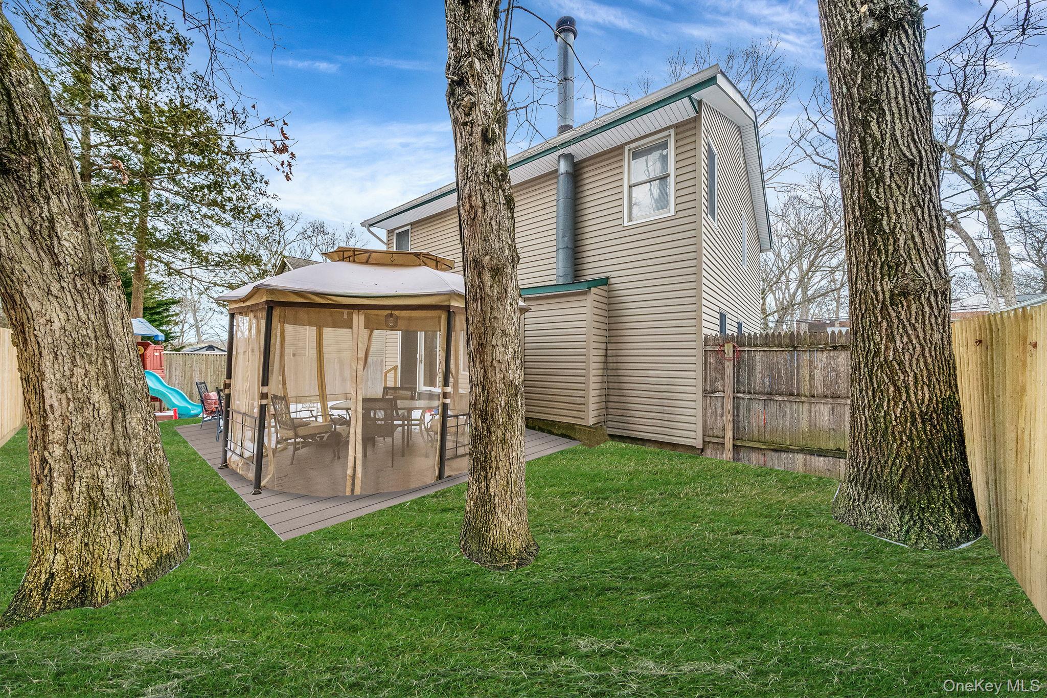 Seize the opportunity to own a breathtaking Colonial home in the tranquil Lake Panamoka, perfect for those seeking a serene lifestyle. This beautifully updated property features 5 spacious bedrooms and 2 full updated bathrooms, offering stunning water views within a private waterfront community that grants exclusive beach rights. The layout includes 2 bedrooms on the main floor, along with 3 additional bedrooms upstairs. A gracious formal entrance foyer welcomes you with hardwood floors and an oversized coat closet, leading into a cozy living room that boasts a wood burning fireplace with a custom mantel and abundant windows that invite natural light. The primary bedroom connects to an oversized bathroom, which includes two generous walk in closets. This home is enhanced by a brand new expansive driveway and complete with a newly constructed deck and fencing. The tastefully renovated kitchen, equipped with brand new appliances and Quartz countertops, opens into the dining room, featuring new luxury vinyl plank flooring and French doors that lead to a deck with a spacious gazebo, perfect for entertaining. A two year old cesspool and a new water heater ensure that the home is fully equipped, with ductwork ready for central air conditioning installation. Additional features include a sizable unfinished basement with exterior access through Bilco doors for ample storage, a new Maytag washer and dryer and elegant details such as raised panel doors, ceiling fans, and recessed lighting in select areas. Enjoy the peace and privacy of a beautifully fenced backyard. Imagine keeping your boat at Beach 1 while enjoying access to all three community beaches. Outdoor enthusiasts will love the proximity to Brookhaven State Park, which offers a variety of walking, hiking, and equestrian trails. The lake is also home to about five different fish species, creating a fisherman's paradise. Don’t miss this chance to embrace the charm of lakeside living!