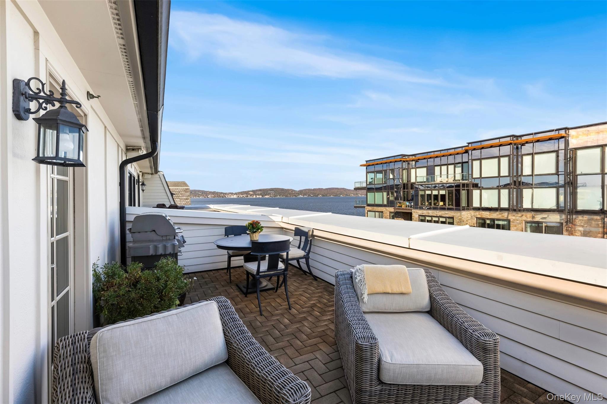 Welcome to 12 Rivers Edge, part of the Townhouse Collection in the highly sought-after Hudson Harbor community. This exceptional waterfront home offers unobstructed views of the Hudson River from your private rooftop terrace and beyond, creating a rare and luxurious lifestyle opportunity. Here, forever-protected views of the river and Palisades become the backdrop to daily life. Spanning four thoughtfully designed levels, the home combines grandeur and warmth, complete with a private in-home elevator for ultimate convenience. Ten-foot ceilings on the parlor floor and nine-foot ceilings throughout create an airy, sophisticated feel, enhanced by rich finishes and meticulous craftsmanship. The inviting living room, centered around a cozy fireplace with custom built cabinetry is perfect for intimate gatherings. The spacious terrace level is ideal for soaking in breathtaking sunsets, savoring morning coffee, enjoying al fresco dinners, or watching boats drift along the river. Just steps from the rooftop balcony, you’ll find a fully customized summer kitchen, plus two extra rooms and a full bathroom that can be turned into a gym, office, artist’s studio, or private guest quarters. An attached two-car garage with discreet rear access maintains the charm of the waterfront facade. Just a short walk to Metro-North’s Tarrytown station, you’re only 40 minutes from Grand Central Terminal. Enjoy nearby acclaimed restaurants like River Market Bar and Kitchen and Hudson Farmer & The Fish, or explore the charm of Tarrytown’s Main Street with its unique shops, cafes, and fine dining. The Tarrytown Yacht Club, perfect for docking your boat or launching a kayak, is just steps away. Your private sanctuary awaits.