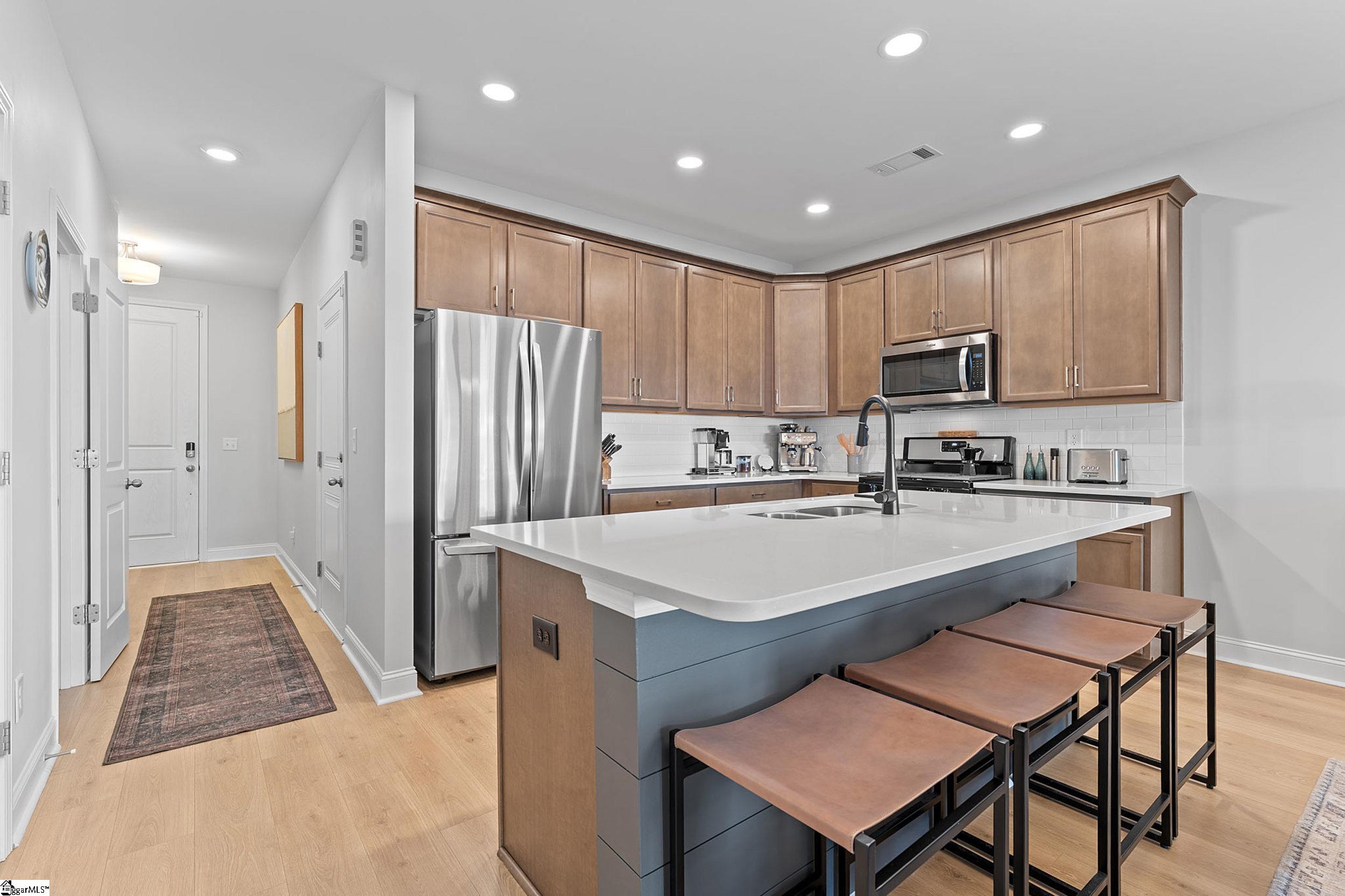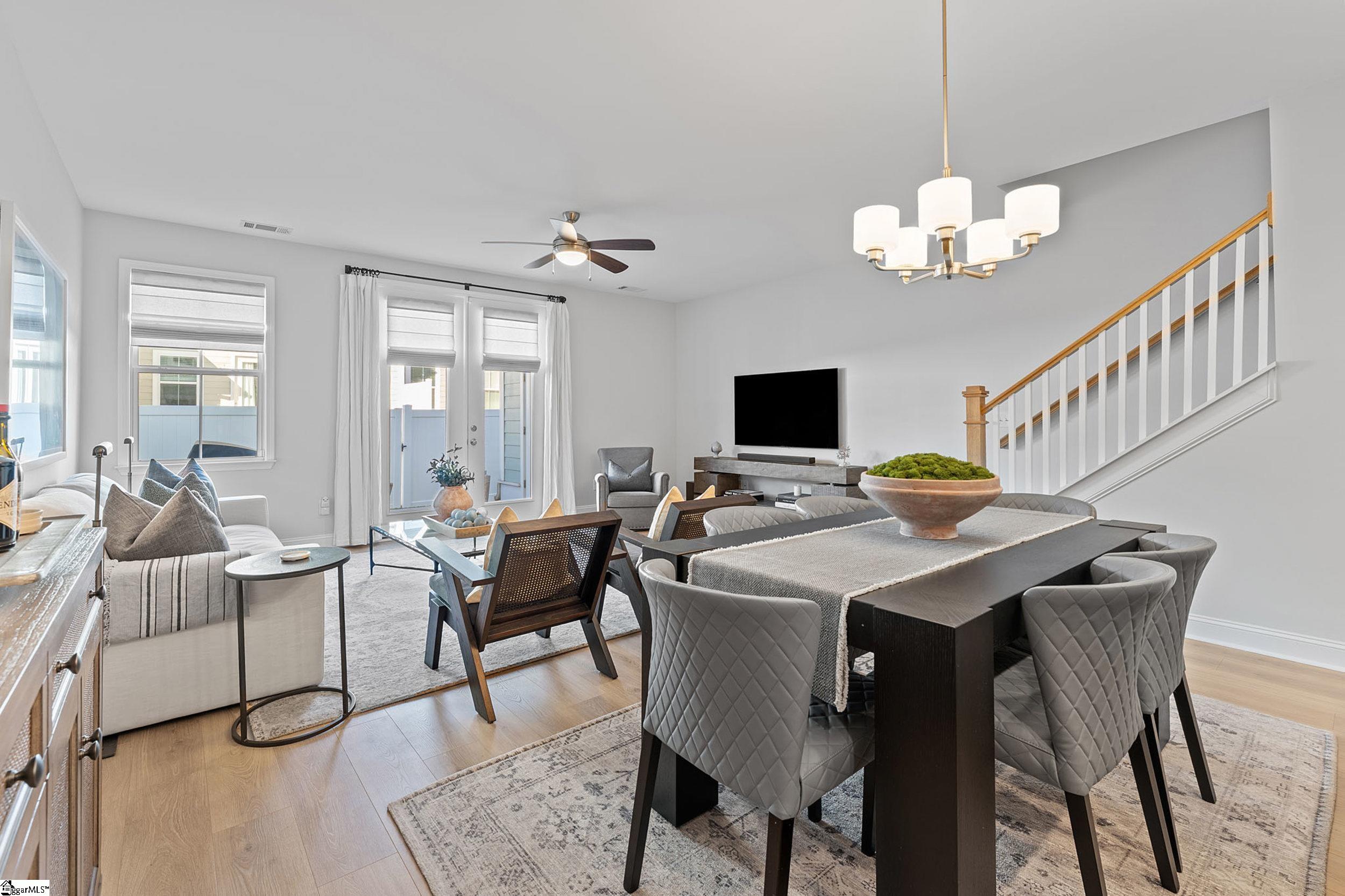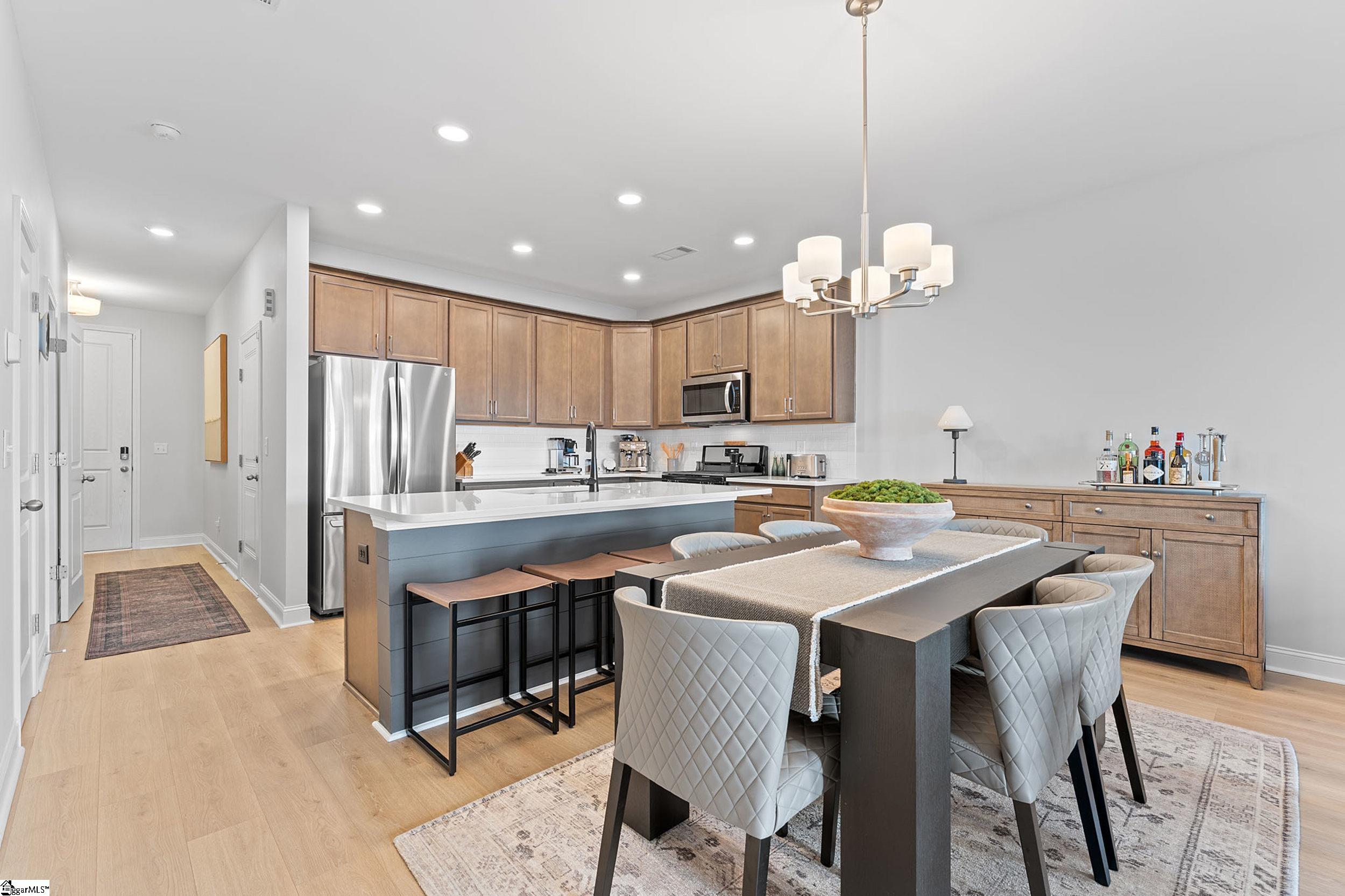 Welcome to 34 Red Horse Way in beautiful Greer, SC — your “better-than-new” model townhome that perfectly blends modern style, thoughtful upgrades, and that easy, low-maintenance lifestyle so many buyers are looking for right now. As the former model home in Saddlebrook Farm, this one already started with that designer sparkle — and the current owners elevated it even more with carefully chosen upgrades and meticulous care. It truly shows. From the moment you walk in, the extended foyer opens into a bright, airy living space with smooth 9’ ceilings and natural light that makes the whole home feel fresh and welcoming. The kitchen is absolutely the heart of it all, featuring 42” cabinets, quartz countertops, stainless appliances, recessed lighting, subway tile backsplash, and a large island that was made for gatherings, charcuterie nights, or slow mornings with coffee. Custom window treatments throughout add that extra touch, including top-down/bottom-up shades in the primary suite so you can enjoy privacy and sunshine exactly how you like it. Upstairs, the primary suite feels like a retreat with a tiled walk-in shower, dual adult-height vanities with quartz counters, ceramic tile flooring, and a spacious walk-in closet. Two additional bedrooms and another beautifully finished full bath offer flexibility for guests, a home office, or whatever season of life you’re in. Outside, you’ll love the fenced-in patio area — perfect for grilling, relaxing, or letting furry friends roam — plus a dedicated storage room and one-car garage for that extra space we all appreciate. Saddlebrook Farm offers charming craftsman-style architecture, a walking trail around the neighborhood pond, and even a dog park, creating a community that feels welcoming and connected. And the location truly delivers — just minutes to Downtown Greer, GSP Airport, I-85, and centrally positioned between Greenville and Spartanburg, with Riverside schools. If you’ve been waiting for a move-in ready townhome that feels elevated but still warm and livable, this is it.