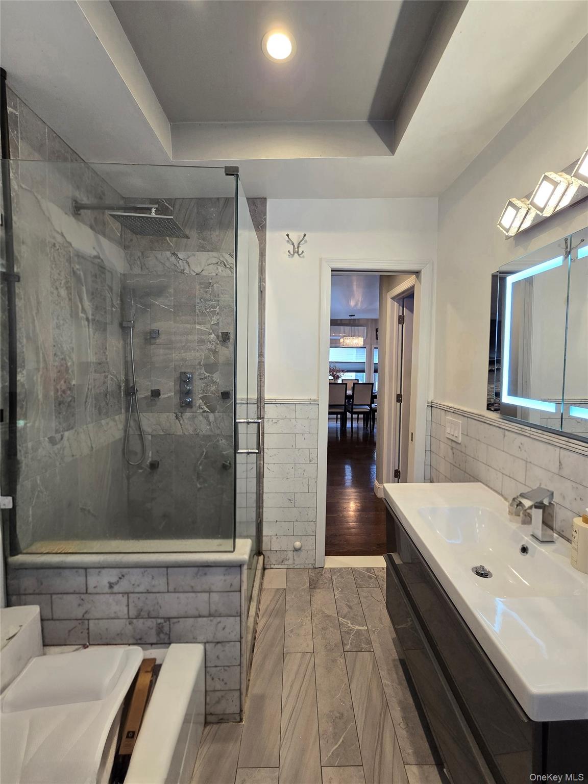 Beautiful fully renovated ranch in Old Howard Beach, on a spacious 40 x 100 lot. This three bedroom, one bathroom home offers true move in condition with an open layout, rich dark hardwood floors, recessed lighting, and a sleek modern fireplace feature wall that anchors the living space. The updated kitchen is finished with quartz countertops, stainless steel appliances, custom cabinetry, farmhouse sink, and a large island that flows directly into the dining area, perfect for everyday living and entertaining. The renovated bathroom features marble tile, a glass enclosed shower, and a full bathtub with a clean, contemporary design. Full unfinished basement with laundry offers excellent storage and future potential. Split units for heating and cooling, plus a boiler system. Outside you have a private driveway, detached garage, grassy yard, and elevated deck ideal for relaxing or hosting. This property has very low taxes at $6, 500 annually, and is nestled just a few blocks from Charles Park.