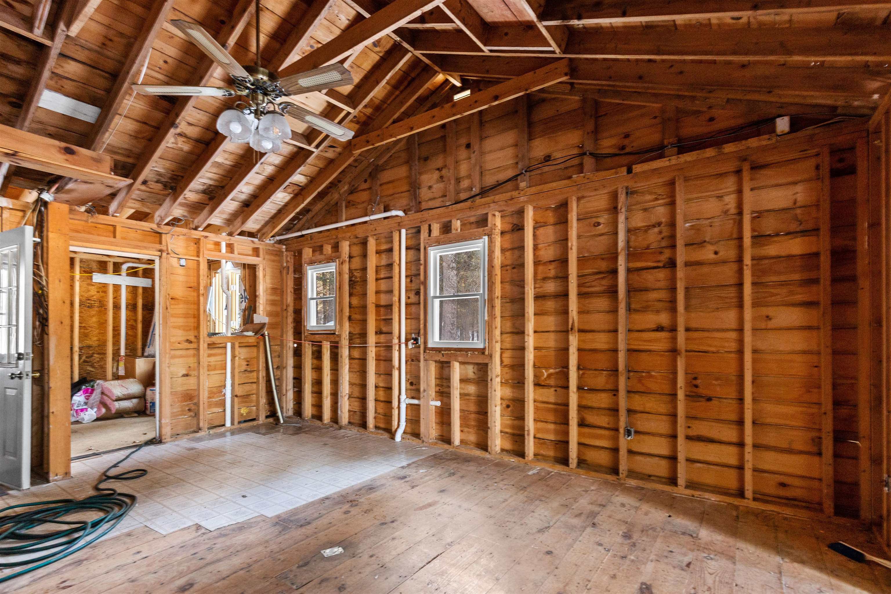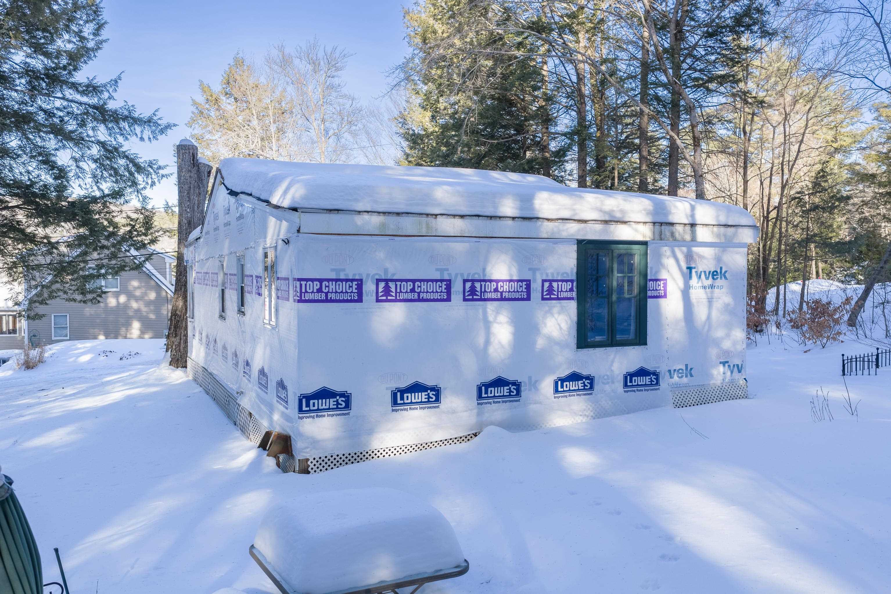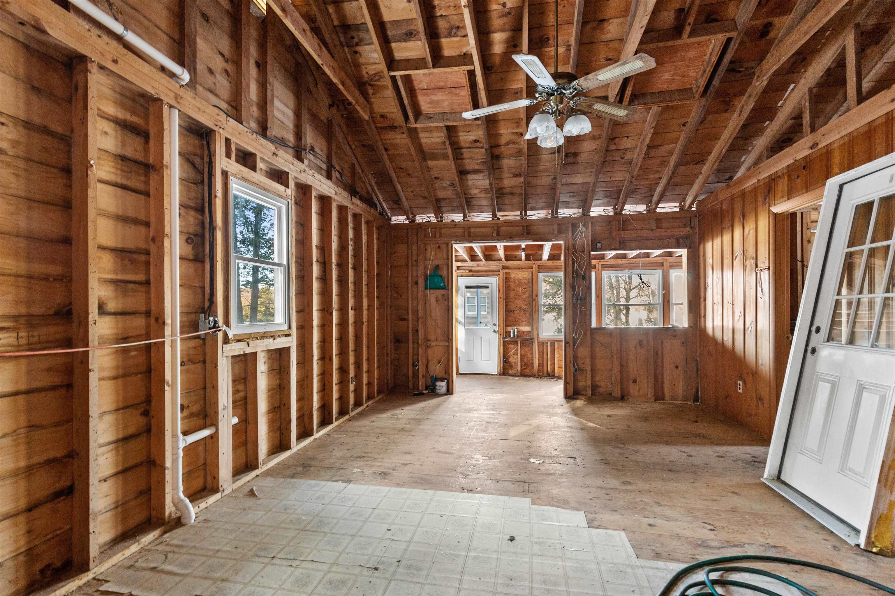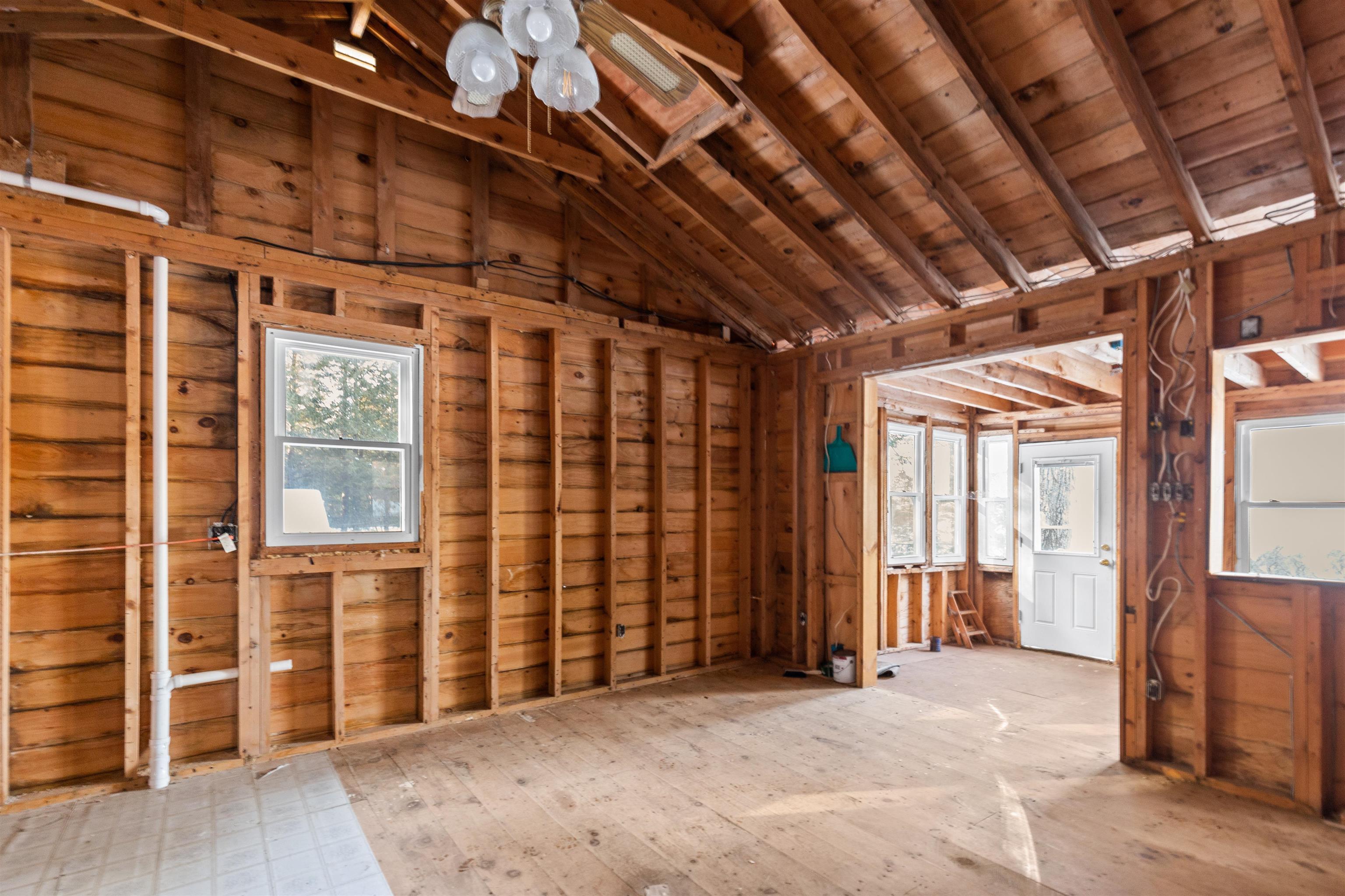 Investors, builders, and opportunity seekers take notice. This is your chance to secure a prime location in the heart of Sawyer Lake with lake access and peek a boo water views. Located directly across from the water you can simply walk across the street to the sandy beach, a rare opportunity in this highly sought after Gilmanton community. The existing structure has been completely gutted to the studs and is ready for your vision. With potential for three bedrooms and one bath, the layout offers flexibility for a redesigned lake cottage, seasonal or year round home, investment property, or flip. The home is being sold as is and includes all materials currently on site, including siding for the building offering a valuable head start for your project. Enjoy all that Sawyer Lake living provides, including access to six private beaches and multiple boat launches. Spend your summers swimming, boating, and relaxing by the water, with year round recreation throughout New Hampshire’s Lakes Region just minutes away. Relax on the deck with peaceful water views, listen to the loons, and imagine the possibilities. Please note: a new septic system may be required, and the property is best suited for a cash buyer. Being sold as is. Measurements are approximate.