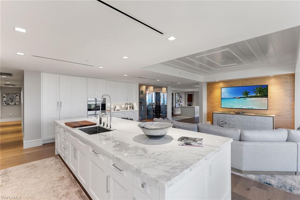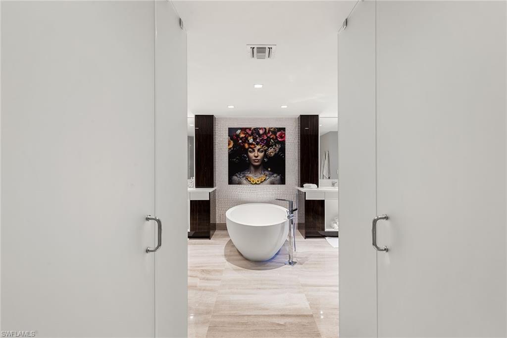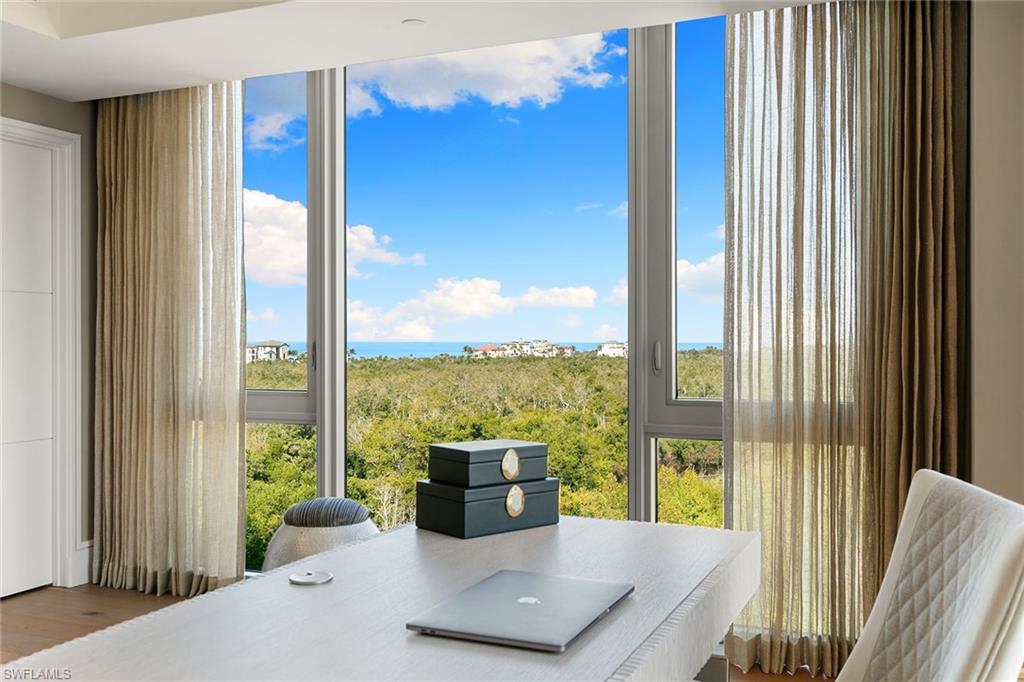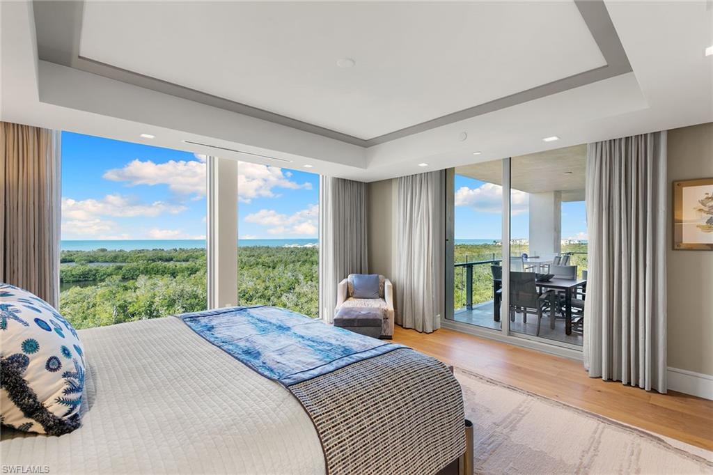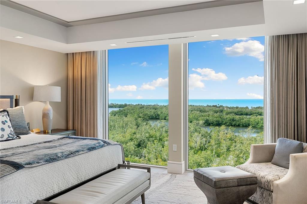 Rarely available end-unit condominium, offering forever unobstructed Gulf views from the entire northwest side of the building, with floor-to-ceiling windows framing breathtaking views to the west and northwest overlooking the Gulf and serene eastern views of the golf course. High above the Gulf, Mystique is the newest gem in Pelican Bay’s skyline, offering majestic vistas of the sparkling blue waters and mesmerizing sunsets. Recently reimagined by a renowned interior designer, this home showcases a refined design palette, blending luxury and tranquility in a spacious open floor plan, ideal for entertaining and relaxation. Enter into this exceptional residence and be welcomed by a series of refined finishes that exemplify casual elegance. The chef-inspired kitchen is outfitted with exquisite Carrara marble countertops, Wolf and Sub-Zero appliances, and sleek white cabinetry, while the beauty of Legno Bastone Italian wood floors flows throughout. The primary suite offers a private retreat with panoramic Gulf views from the bedroom and the spa-like bath. Complete with five-bedroom suites and abundant storage, this home is designed for comfortable living at every level. Mystique isn’t just about stunning aesthetics, it’s about an elevated lifestyle. Enjoy the convenience of 24/7 concierge services, making every need effortless. As a resident of Pelican Bay, you gain access to an array of world-class amenities, including private beachfront dining, beach access with chair and umbrella service, tennis and pickleball courts, fitness center, and miles of scenic recreational and biking paths. Just minutes from Artis-Naples and upscale Waterside Shops, Mystique offers a balance of peaceful living and easy access to culture and shopping. Accept this invitation to experience a life of unparalleled luxury, beauty and convenience.