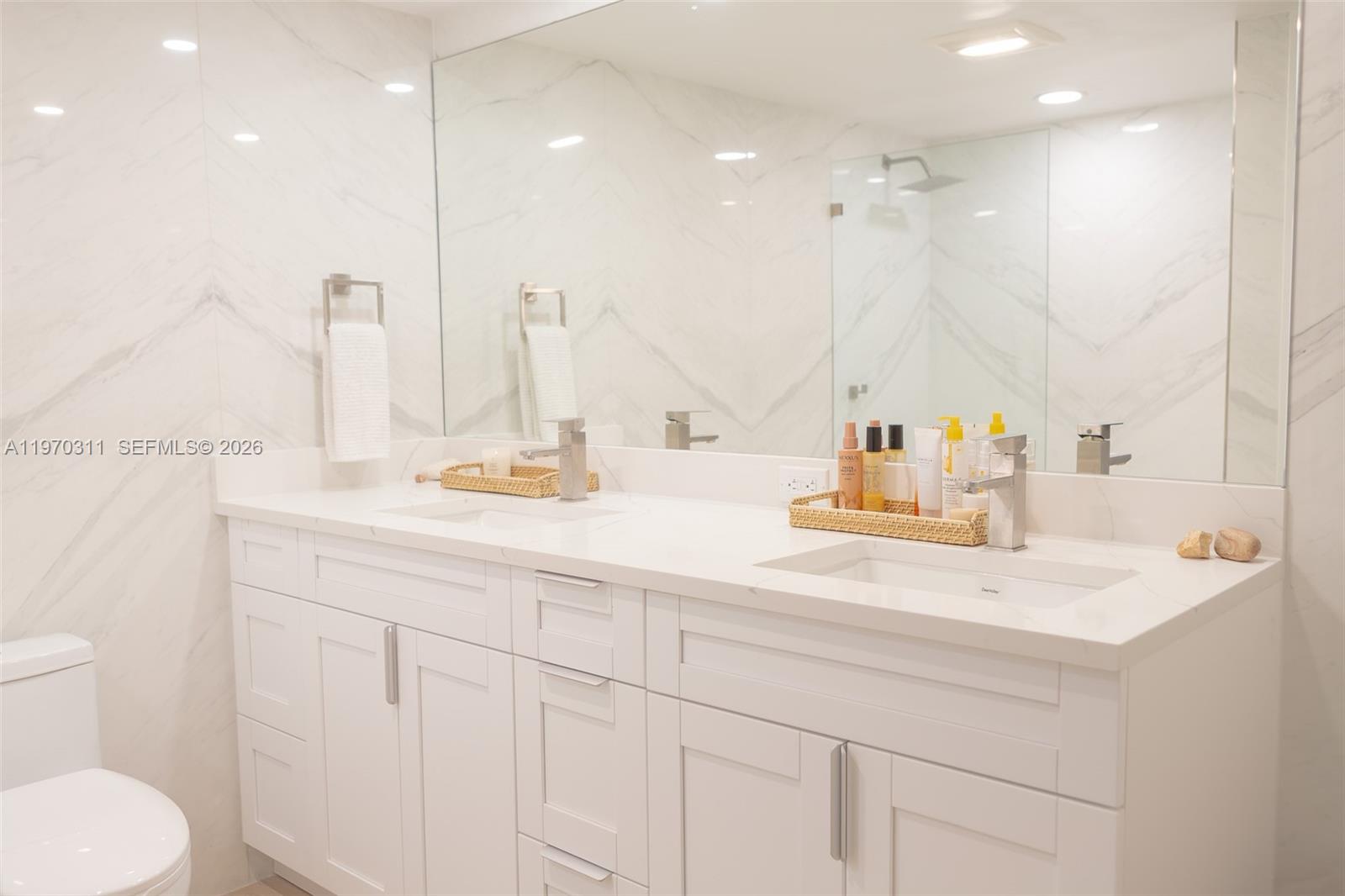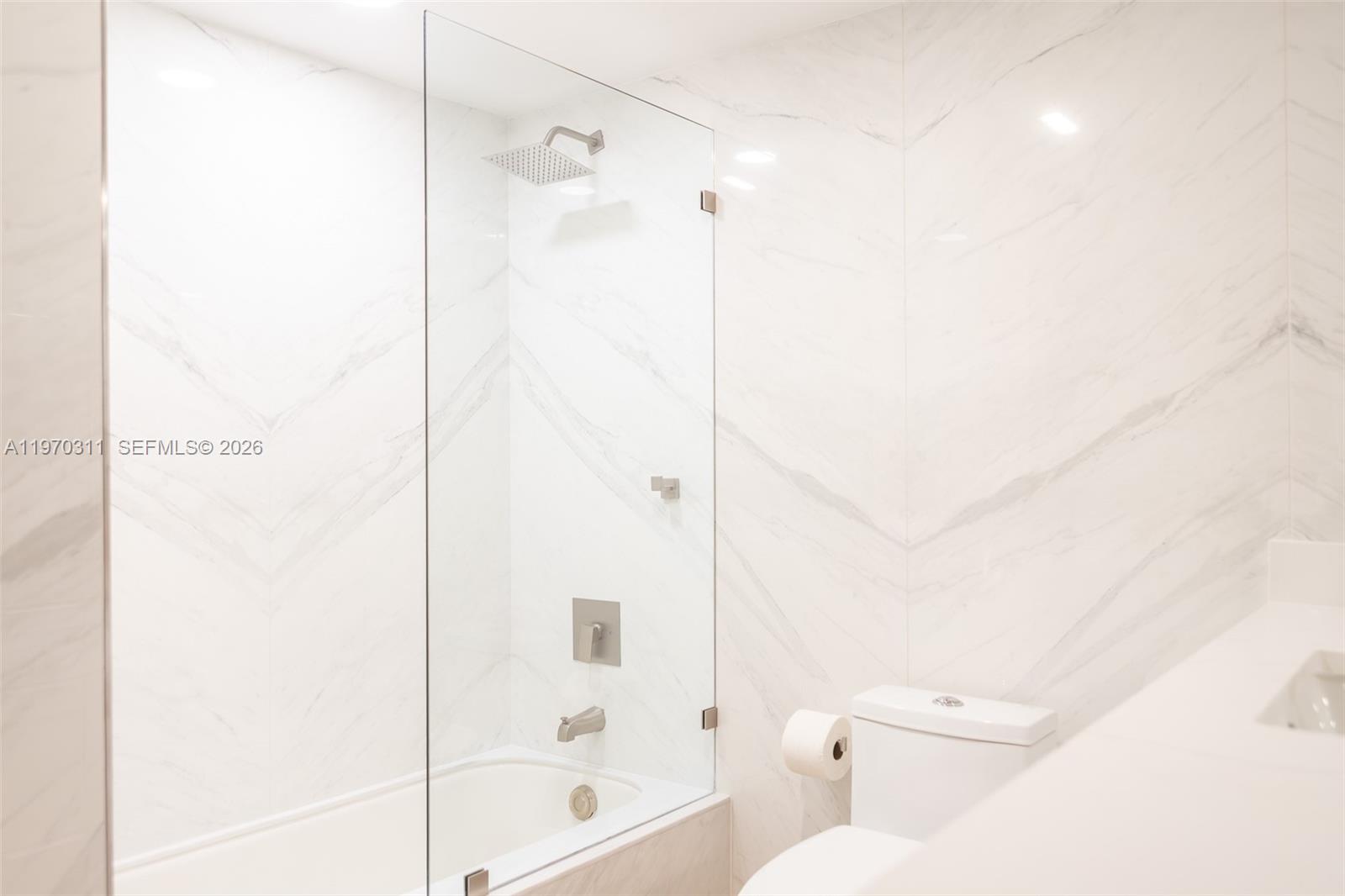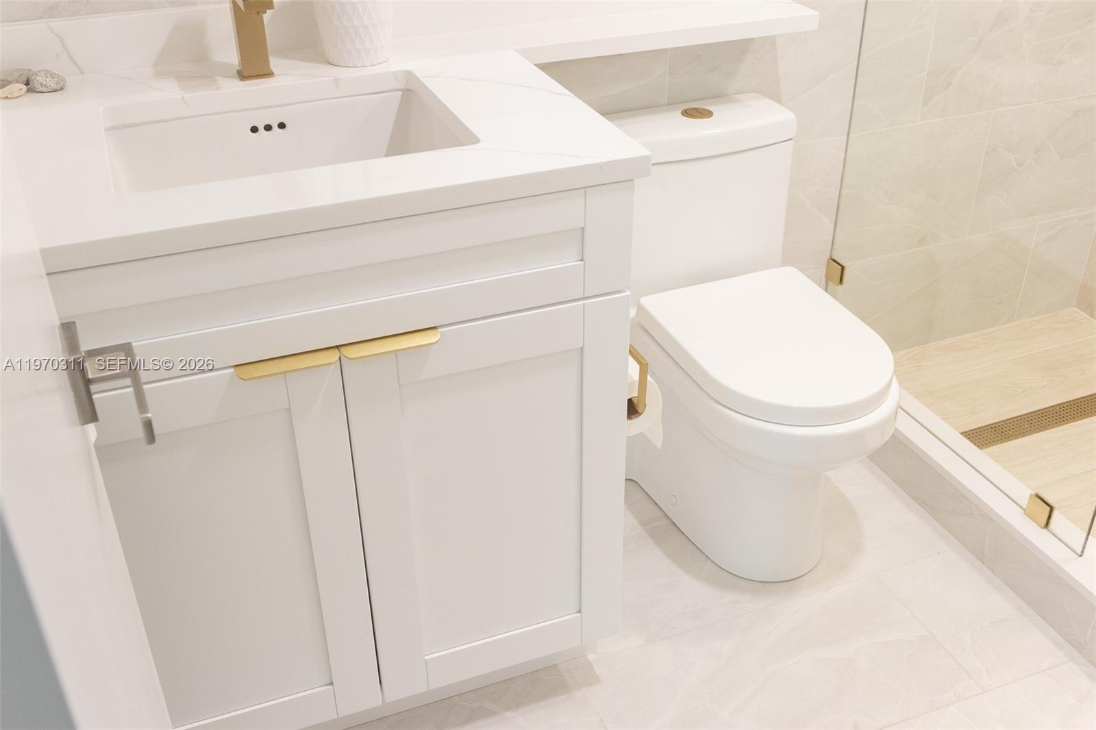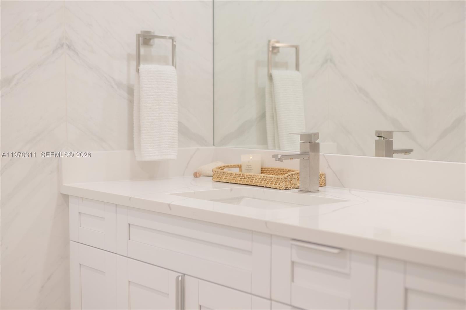 This inviting unit features vinyl flooring throughout and tile in the bathrooms, creating a cohesive and easy-maintenance living space. The kitchen offers quartz countertops and a marble-style backsplash, adding a fresh and modern touch.