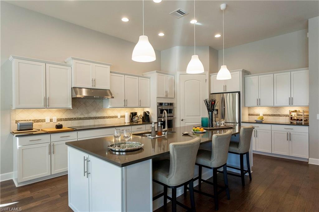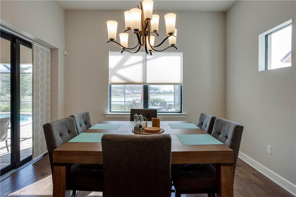 Beautiful home, impeccably decorated in highly desirable Corkscrew Shores on a private cul-de-sac. Spacious, open airy living with lanai and pool facing a serene lake. TURNKEY RENTAL 2. 5 car garage, in-ground screened heated pool with outdoor kitchen. This home offers 3 bedrooms, 3 full baths and use of the state-of-the-art clubhouse with a fitness center, tennis courts, pickle-ball, community pool and spa overlooking the beautiful aqua waters of Corkscrew Lake.