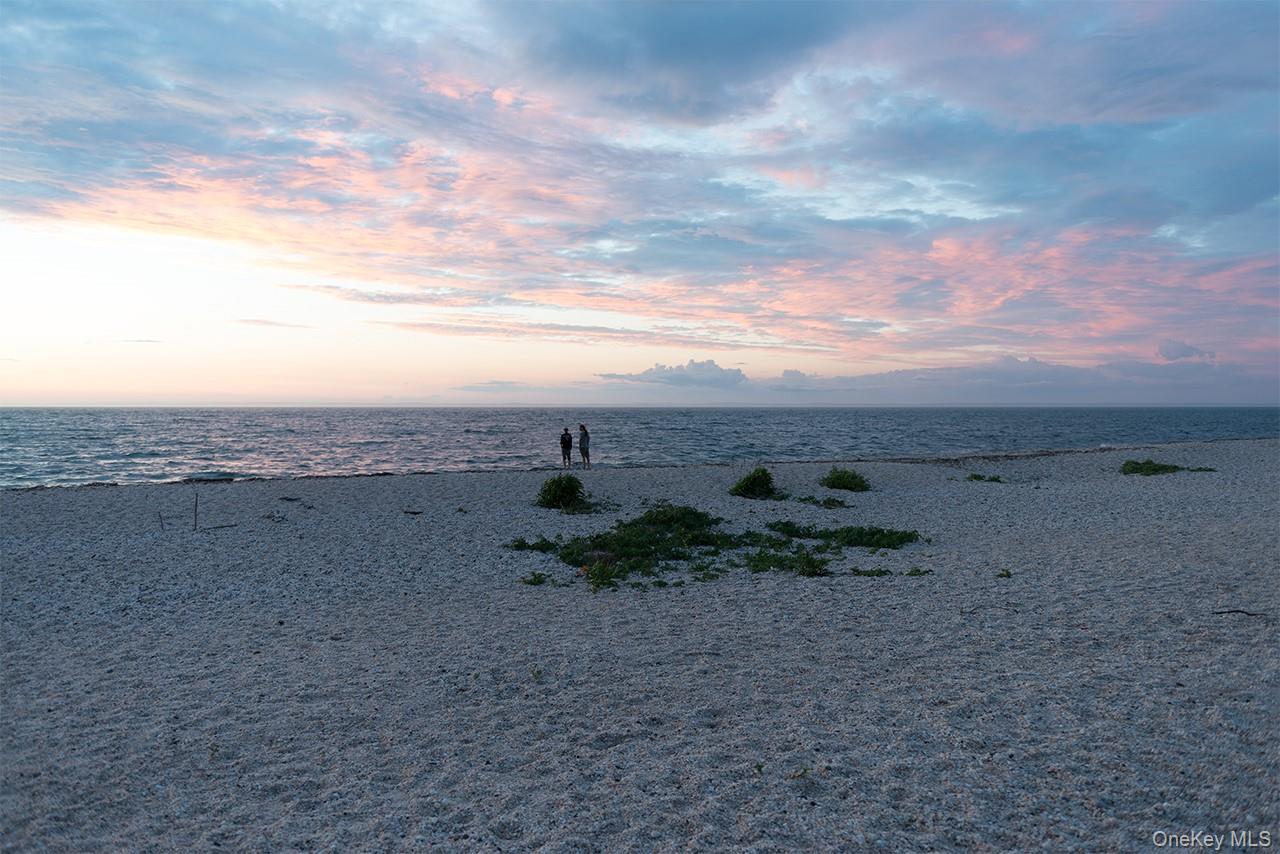 You have to come back and see this house with me because it’s got that real “grandma’s classic 1940s winter weekend” energy in the best way that has been on the short list feeling. Picture this: it’s snowing outside, and we’re posted up in the big living room with the granite fireplace going. Knotty pine paneling, bookshelves built in on both sides of the hearth, and that warm glow that makes you feel settled. We’ve got Monopoly spread out on the coffee table, a huge bowl of popcorn (the legit kind made on the stove), and a record playing… then playing again… then somehow playing again because that’s what happens in houses like this. And of course there’s always that one person in our group who breaks out a slide projector, vacation slides from back in the day with the vintage clothing, the hair styles, taking in the moments. This house just fits that vibe perfectly. Then you walk into the sunroom and it changes gears: slate floors under your feet, water views straight out toward the beach, and it becomes the reading and lounging zone. Newspapers, magazines, tuna melts, tomato and rice soup. It’s basically the best relaxing room. Outside, it’s the kind of winter that makes you want to actually do stuff: we can go sledding down Munn Lane, then heading to the Causeway beach to see what the sea rolled in, perfect for seaglass collecting. That whole shoreline exploration where you come back with cold cheeks and a pocket full of little treasures. The layout is great too, wood floors through most of the house, and there’s that first-floor bedroom space (or den) with water views across the street that ties the whole country home feeling. It’s cozy, practical, and somehow still feels special. And the garage… three bays, but it doesn’t feel like “just a garage. ” It feels like a workshop where projects are always in motion. The kind of place where sleds, bikes, paddleboards, clam rakes, fishing poles, beach chairs, and coolers all have a home. Here’s the kicker: it comes with two pieces of land, including the waterfront property across the street. So those water views? Protected. There’s about 50 feet of sandy beach, and the path to the water is right across the street, perfect for kayaking or paddleboarding in the summer. And sitting on the hill, the elevation is high enough that you’re not sitting stressing about flood issues. In the summer you’re up on the hill watching fireworks in Orient Village, with views from the living room, sunroom, and that main-floor bedroom/den. It’s peaceful, authentic, and it feels connected to the real local story—ice boat racing off Narrow River Road, oyster farming, clamming, fishing… all of it. This is what relaxation looks like when “country” means coastal, classic, and this is what we wanted.