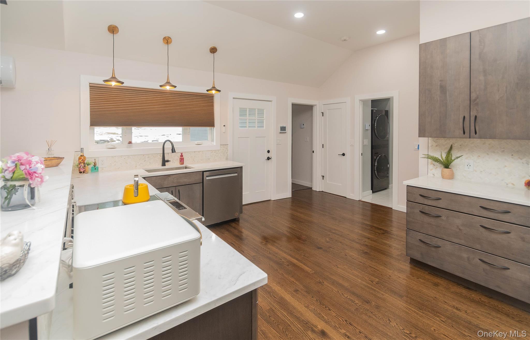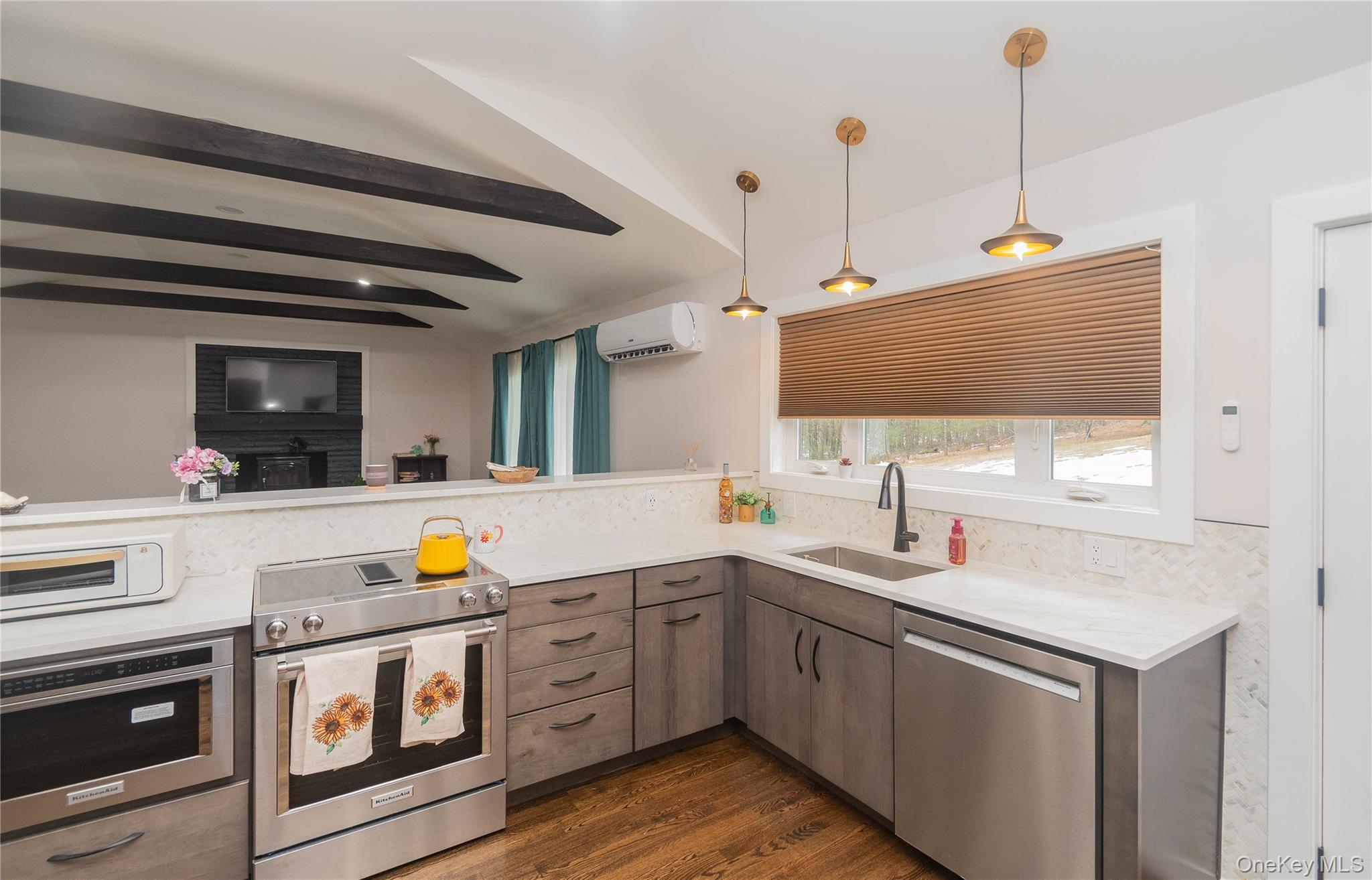The perfect getaway from the hustle and bustle of the world. Nestled quietly in the Catskill Mountain Range, just minutes from the Ashokan Reservoir and a short drive away from Woodstock, Rosendale, Kingston, and New Paltz sits this lovely, renovated 2 bed, 1 bath home. On the property you'll find 2. 2 acres of tranquility as you can look out the back windows at nearly all hours and see the wildlife pass through your spacious yard. The detached garage also features a newly poured (November-December 2025) garage floor. Inside, enjoy a brand new, fully updated kitchen with quartz countertops with brand new appliances waiting to be used. With new ductless HVAC systems, keep yourself cool in the warmer months and if needed the HVAC systems can also serve as a heating system, though the brand new wood burning stove will keep you nice and warm. Throughout the home, enjoy the refinished hardwood floors that span the home. The bathroom features a brand new custom tile shower with an anti-fog LED Mirror above the sink to help keep your fantastic looks in check. Enjoy open rooms with large closets and their very own ductless systems so you can sleep as snug as a bug. For those who despise lugging around appliances, this home will come with all appliances, including the new washer and dyer. The seller will also include a snowblower and lawn mower. Please do not tour the property without an appointment.