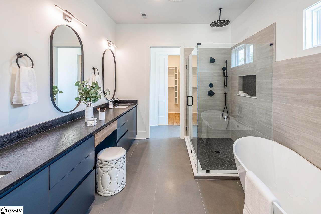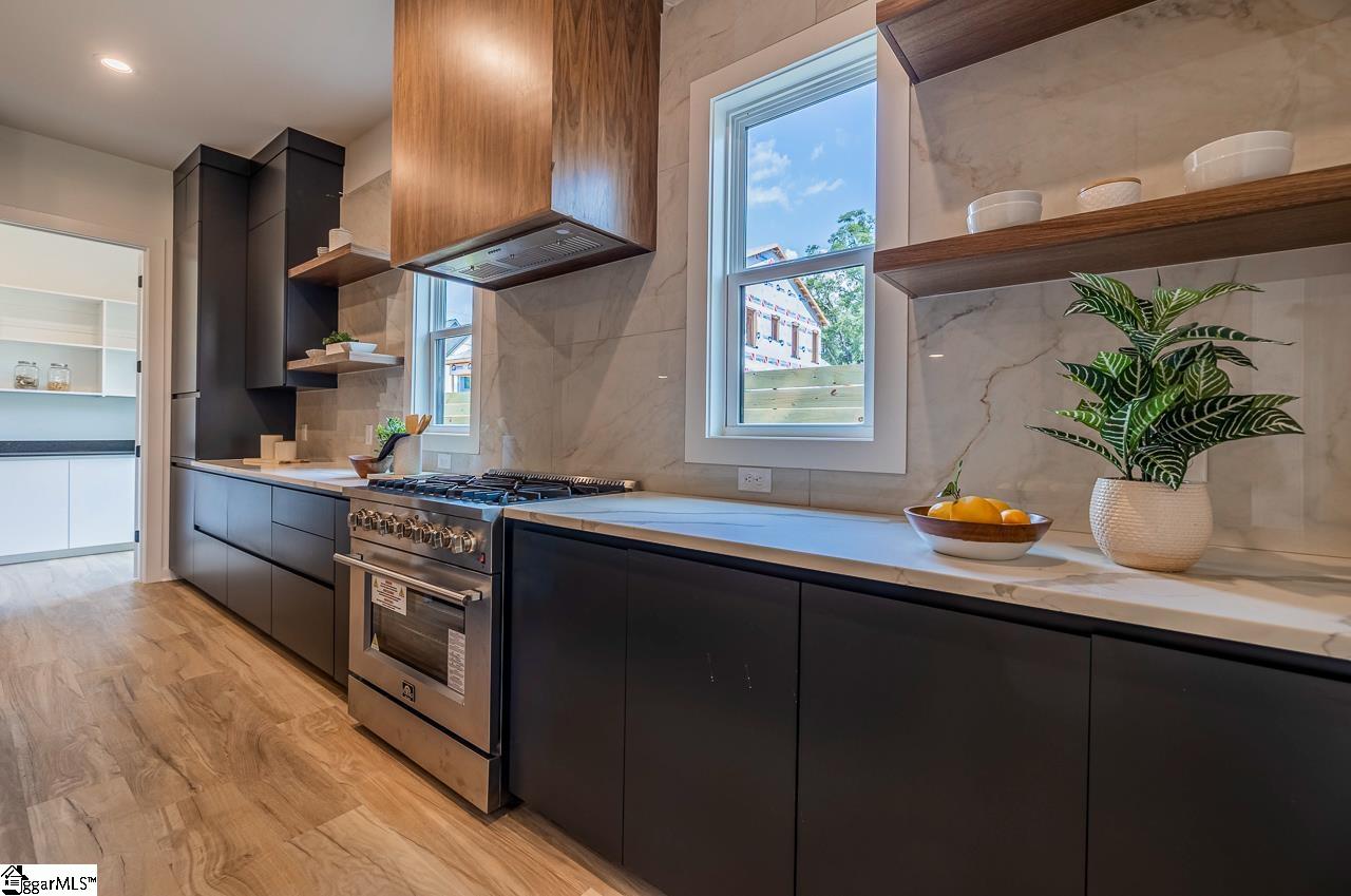 Nestled in a prime location, this 3-bedroom, 2. 5-bathroom contemporary home is an absolute gem, offering the perfect blend of modern luxury and convenience. Situated just minutes from the heart of downtown Greenville, the Swamp Rabbit Trail, and the beloved Unity Park, this home provides easy access to some of the area's most sought-after attractions, dining, and entertainment. As you step inside, you’ll be greeted by a breathtaking chef-inspired kitchen that combines beauty and function. Custom white oak and walnut cabinetry create an elegant and warm atmosphere, while the oversized quartz island serves as a stunning focal point. The kitchen is equipped with a stainless steel 36-inch gas range, perfect for the home cook or culinary enthusiast. A large walk-in pantry ensures you have plenty of space for storage, making this kitchen as practical as it is beautiful. The living room offers a welcoming, open-concept space with large windows that fill the area with natural light. A sleek, stucco fireplace creates a cozy focal point, while the adjacent wet bar is perfect for entertaining guests or enjoying a quiet evening. The thoughtful layout makes this home ideal for both intimate gatherings and large celebrations. The luxurious master suite is located on the main floor for added convenience. The spa-like master bathroom is complete with a large garden tub, a beautifully tiled walk-in shower, and a dual vanity with plenty of counter space and custom cabinetry. The spacious walk-in closet is a dream, offering ample storage for your wardrobe and accessories. Upstairs, two generously sized bedrooms share a well-appointed Jack-and-Jill bathroom, making it an ideal setup for family or guests. The loft area provides additional living space, perfect for a home office, playroom, or media room—offering versatility to suit your needs. Step outside into the large backyard, where a huge covered porch invites you to relax or entertain. The wood-burning fireplace adds a touch of warmth and charm to this outdoor living area, making it the perfect spot to unwind or enjoy the outdoors year-round. Schedule a private tour and come see for yourself the attention to the detail that has been put into this home!