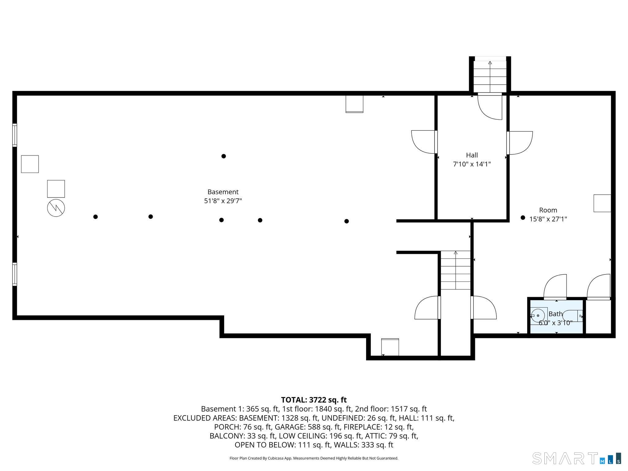 | Full Bath | Tub w/Shower,Tile Floor,On 3rd Floor | Upper |