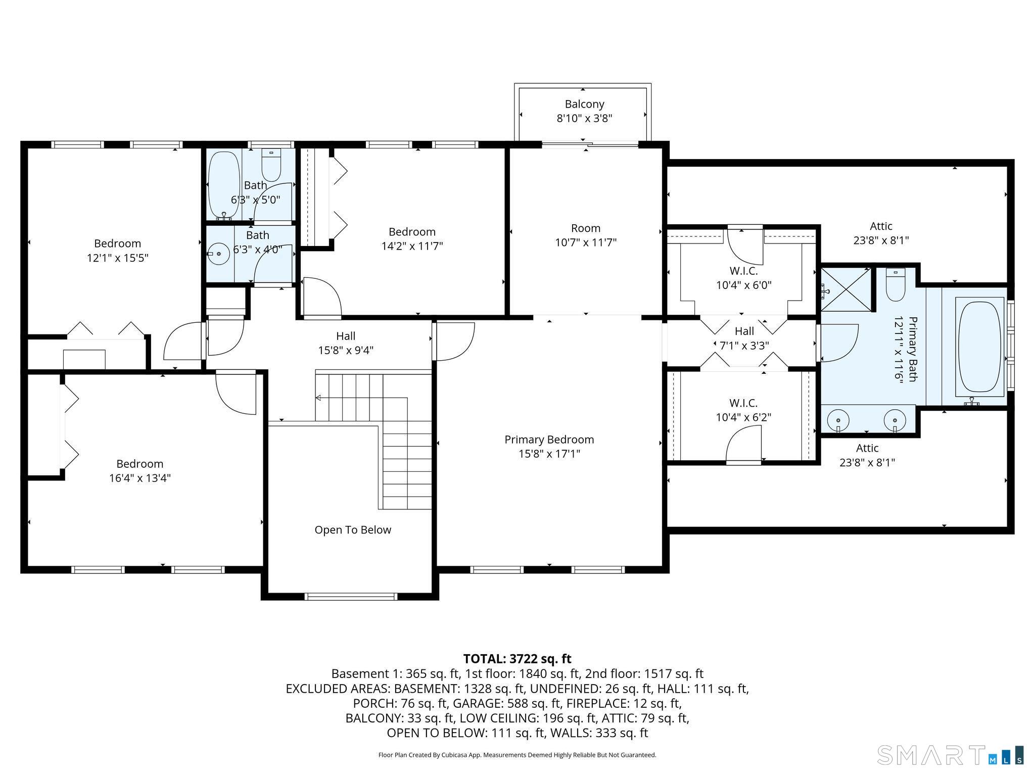 | Primary Bath | Double-Sink,Full Bath,Stall Shower,Whirlpool Tub,Tile Floor,On 3rd Floor | Upper |