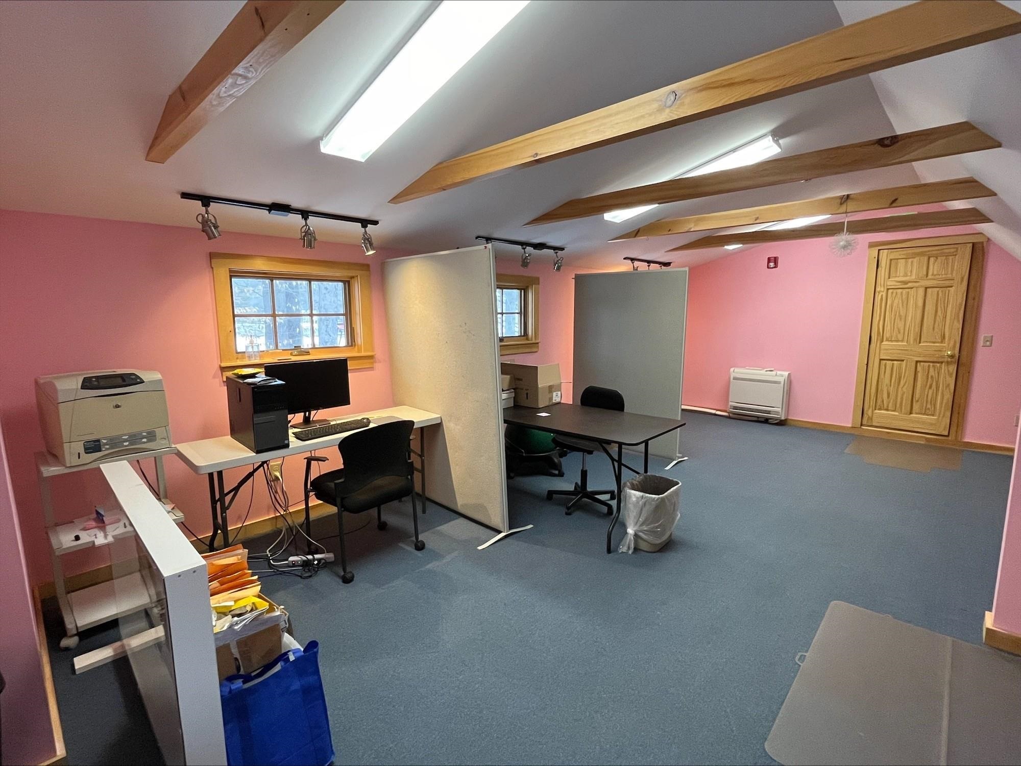 Perfectly positioned just off Route 16 with prominent signage, this standalone commercial office building offers exceptional visibility and convenience. The multi-level layout features flexible office space across two floors; a separate exterior entrance/staircase to the second level can be used adding to its versatility. With multiple private offices and a kitchenette this building is ideal for a wide range of professional uses. For decades, the property has supported a successful tax, payroll, and investment business. The sellers have meticulously maintained the building, keeping it in turnkey condition with thoughtful updates over the years. Modern climate control ensures comfort year-round, and a standby generator provides peace of mind during unexpected power outages. Public water and sewer further expand the possibilities for future use. As an added bonus, ownership includes access to a shared private beach and water entry on the beautiful Saco River—an amenity rarely found with commercial properties.