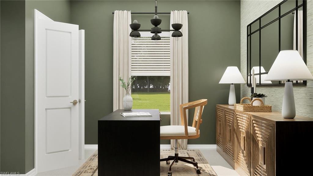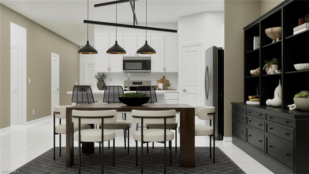 Hampton Lakes is a collection of new single-family homes for sale at the River Hall masterplan in Alva, FL. This gated community is designed to cater to active lifestyles, featuring an array of amenities including a fitness center, resort-style pool and tennis, pickle ball and bocce ball courts. This new single-story home features two peaceful bedrooms with a convenient hall bathroom situated to the side of the foyer, while a third bedroom is right around the corner. Further down the foyer is a modern kitchen that melds into the dining room and a spacious family room. Through glass sliders is a large covered patio for outdoor entertainment. In a rear corner is the tranquil owner’s suite with an attached bathroom and walk-in closet. Prices, dimensions and features may vary and are subject to change. Photos are for illustrative purposes only. Estimated delivery date is Mar/Apr 2026.
