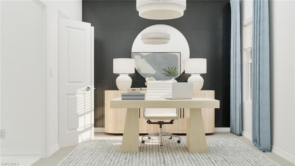 Hampton Lakes is a collection of new single-family homes for sale at the River Hall masterplan in Alva, FL. This gated community is designed to cater to active lifestyles, featuring an array of amenities including a fitness center, resort-style pool and tennis, pickle ball and bocce ball courts. This new single-story home design combines comfort and style. Upon entry is a flex space ideal for hosting guests or as a private office. An open-plan layout connects the kitchen, dining room and family room, which features direct access to the covered porch. Situated on the opposite side of the home are all four bedrooms, including the private owner’s suite with an attached bathroom and walk-in closet. Prices, dimensions and features may vary and are subject to change. Photos are for illustrative purposes only. Estimated delivery date is Apr/May 2026.