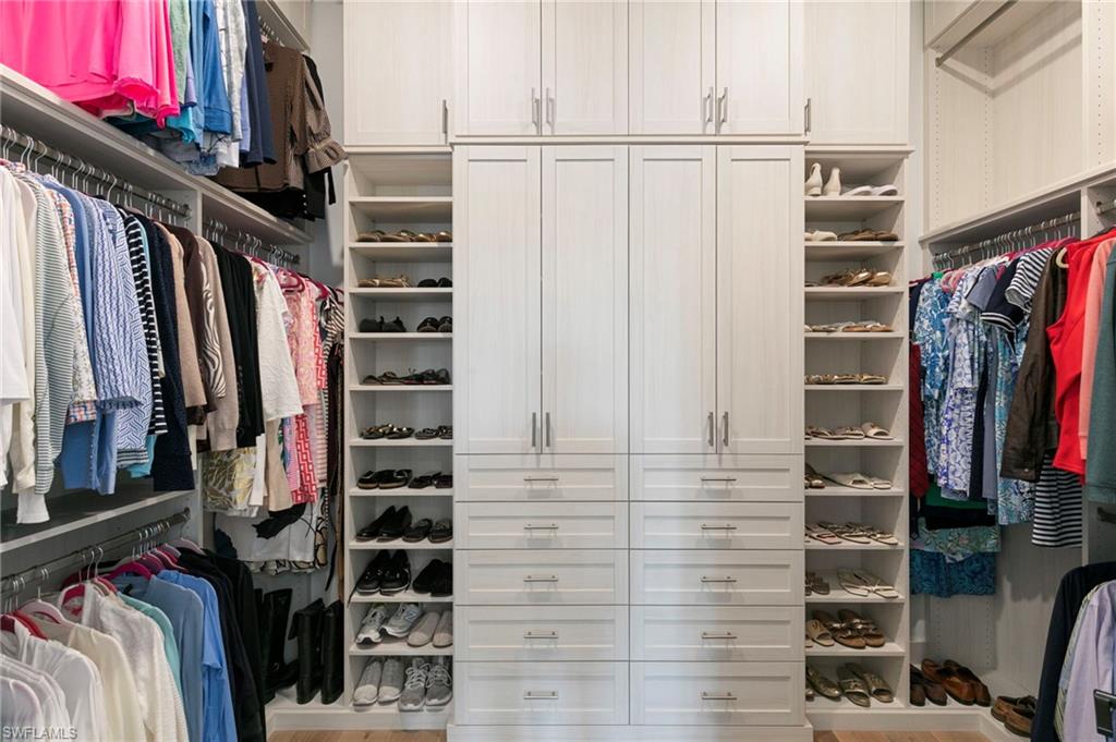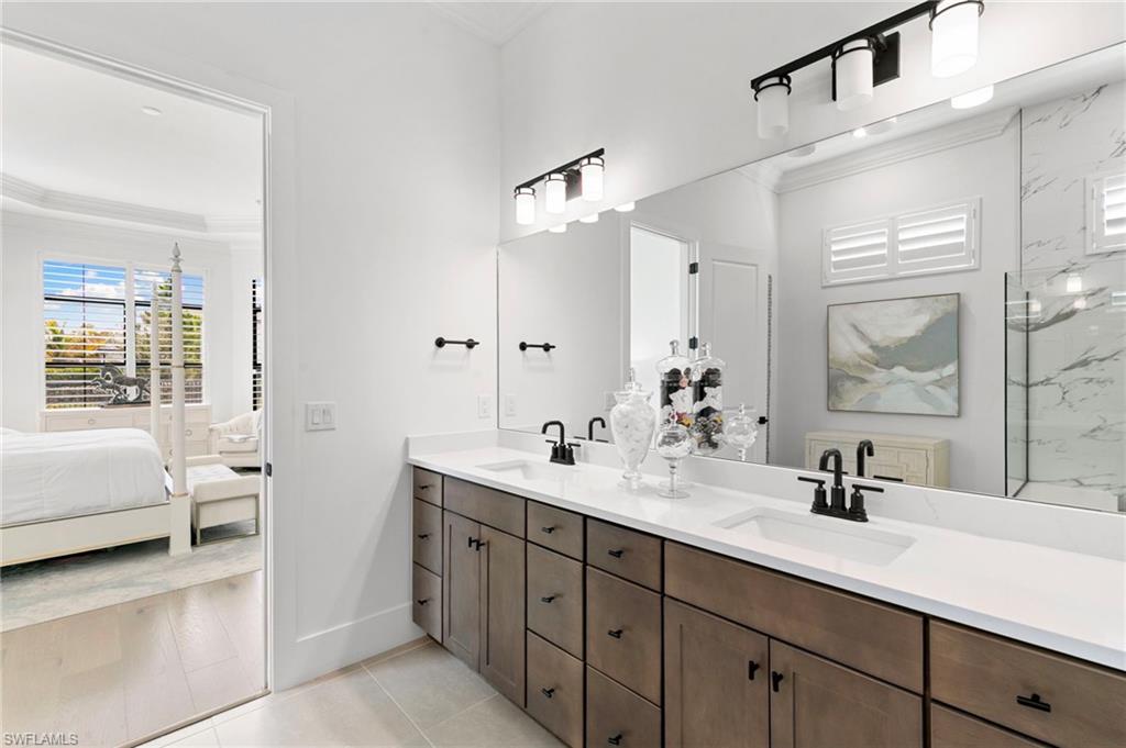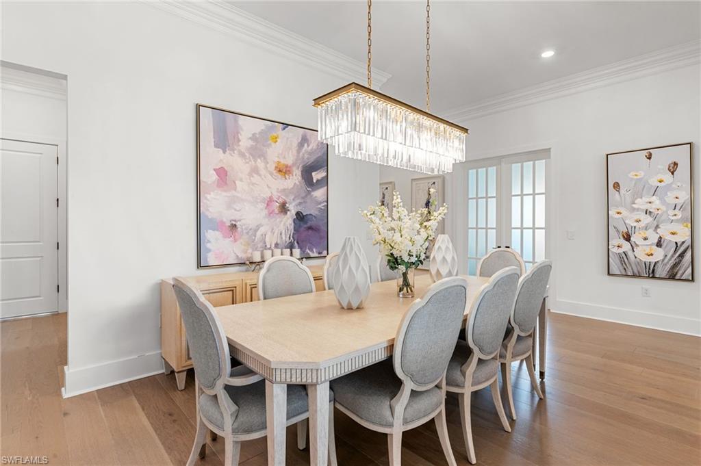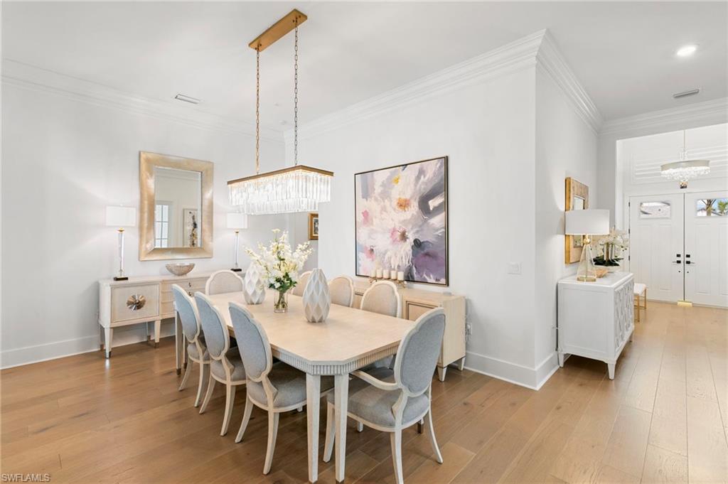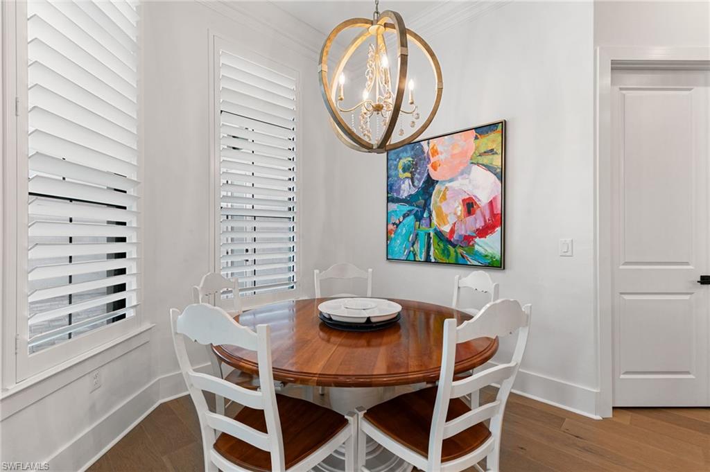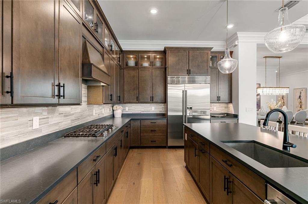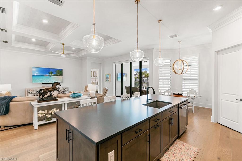 Warmth, elegance, and quiet luxury define this exceptional corner-lot residence tucked away on a cul-de-sac in the boutique enclave of Corkscrew Estates—one of just 59 homes in this intimate community. Set on a generous . 77-acre lot, the property offers a rare sense of space and serenity while delivering refined design and resort-style living. Spanning 3, 338 square feet, this meticulously crafted home features 4 bedrooms and 4. 5 bathrooms, with every detail thoughtfully curated to create a welcoming yet elevated atmosphere. Natural light pours through the interior, accentuating the open-concept great room with soaring 12-foot coffered ceilings and rich manufactured hardwood floors that carry warmth throughout the home. Oversized 8-foot solid doors, 10-foot pocket sliders, 7½-inch baseboards, and hurricane-impact windows and doors further elevate the craftsmanship. The kitchen is both beautiful and functional—anchored by an oversized island and outfitted with stainless steel appliances, a gas cooktop, leathered quartz countertops, and 42-inch upper cabinetry in a warm, weathered burlap tone. Soft-close doors and drawers, a single-basin sink, and an expansive walk-in pantry complete the space, making it ideal for entertaining or everyday living. Additional interior highlights include a formal dining room, a private home office or den, a spacious laundry room with sink and storage, and a 3-car garage with epoxy flooring. A detached 1 bed, 1 bath 307-square-foot casita offers exceptional flexibility, perfect for guests, a fitness studio, or a second office.