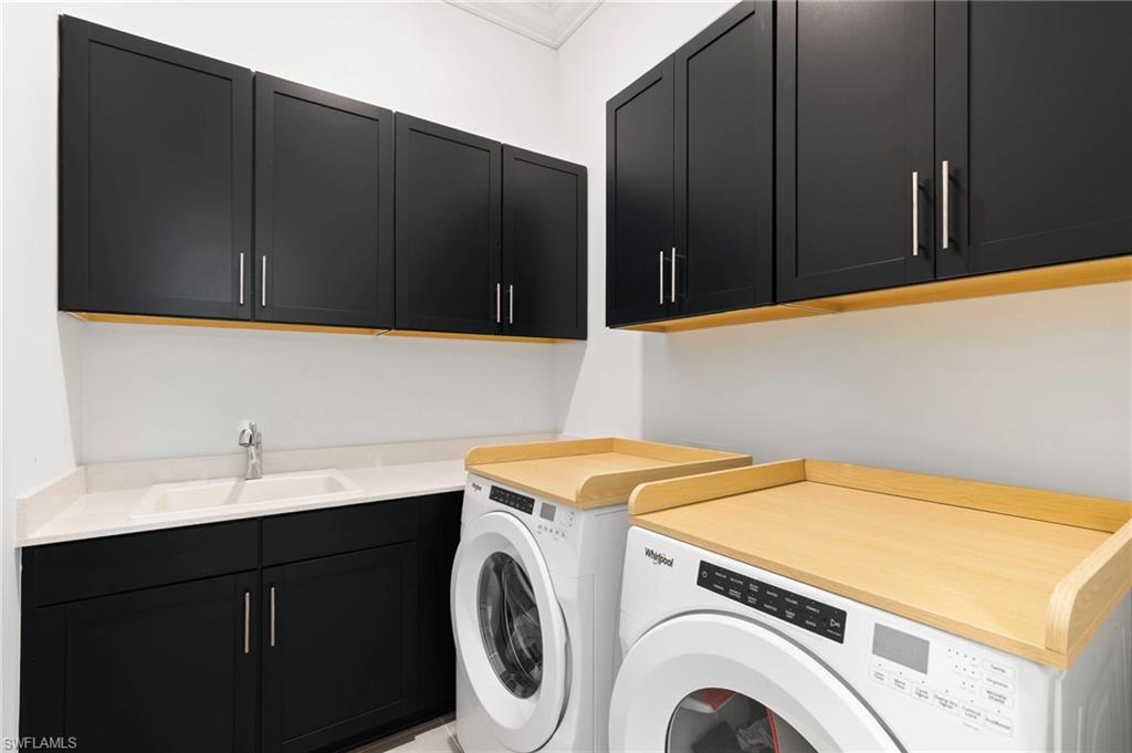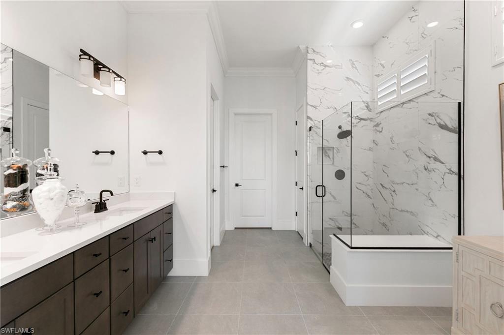 Outdoors, the home truly shines. The expansive, fenced lanai delivers approximately 2, 200 square feet of additional living space, centered around a luxurious pool with a sun shelf—an inviting retreat designed for relaxation and entertaining alike. Ideally located near premier dining, shopping, golf courses, entertainment, beautiful Gulf beaches, and RSW International Airport, this residence seamlessly blends privacy, comfort, and upscale living in an unparalleled setting.