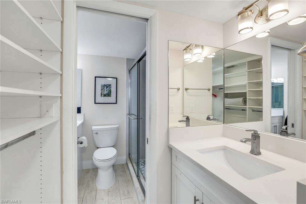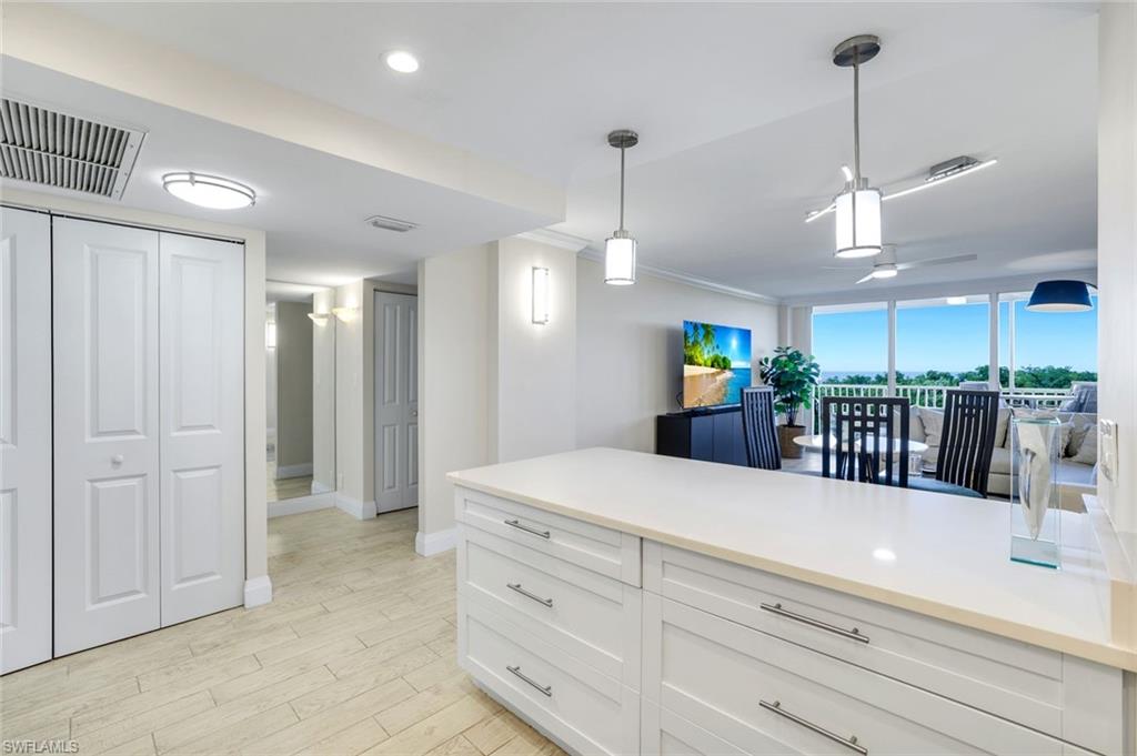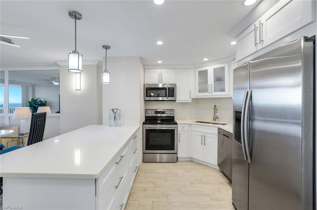Just steps from Vanderbilt Beach & Delnor Wiggins Pass State Park, two of America's most beautiful beaches, lies a beautifully reimagined one bedroom condominium overlooking the sun-kissed Gulf of America. Enjoy breathtaking sunset views from the comfort of this light & bright Gulfside beauty. Highlights include wood-look tile flooring throughout, white quartz countertops, white shaker cabinetry, stainless steel appliances, white wood paneled ceilings in the living room & bedroom, renovated bathroom & shower, custom closet shelving & shadow boxing,