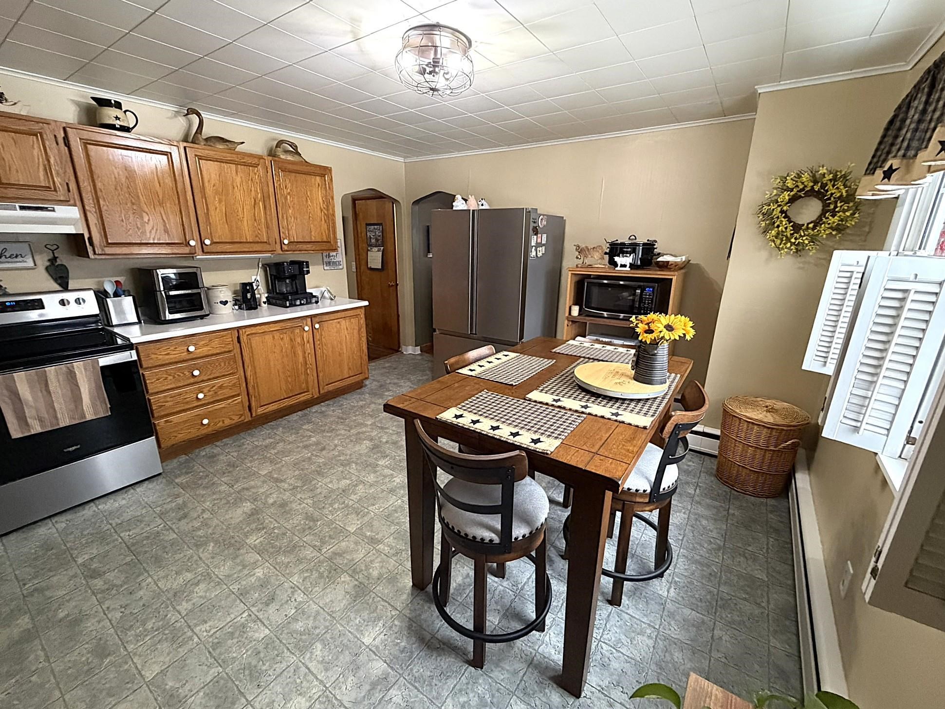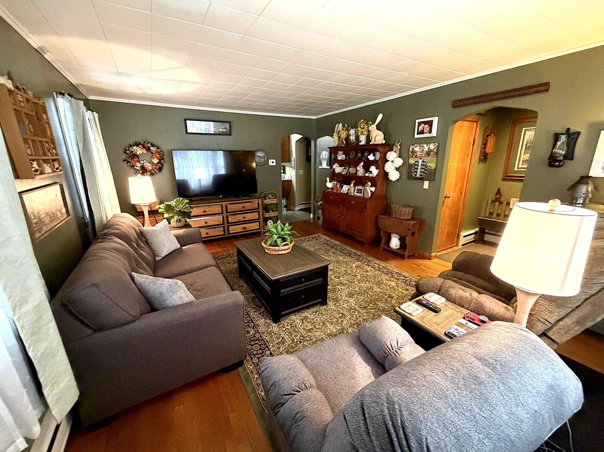 This beautifully maintained three-bedroom ranch offers comfort, space, and exceptional functionality throughout. The home features a large, well-appointed kitchen with abundant cabinetry, complemented by stainless steel brushed-nickel appliances, including the refrigerator and range, which convey with the property. Gleaming hardwood floors are impeccably cared for, and the home offers ample closet and storage space throughout. An interior staircase leads to the finished lower level, which includes a workshop bench, storage area, family room, office, den, and a walk-out door to the backyard—ideal for both everyday living and hobbies. On the main level, enjoy a sun porch for relaxing year-round, as well as an inviting open farmer’s porch. The home sits on a large, flat, level backyard, perfect for outdoor enjoyment. An oversized one-car garage, deep in length with additional storage, is attached to the home and includes a convenient walk-in doorway to the basement. This residence is spotless, warmly decorated, and thoughtfully appointed, offering true turn-key living. With direct access to nearby ATV and snowmobile trails, this property is ideal for outdoor enthusiasts. A move-in-ready dream home—schedule your private showing today, as this property will not last long.