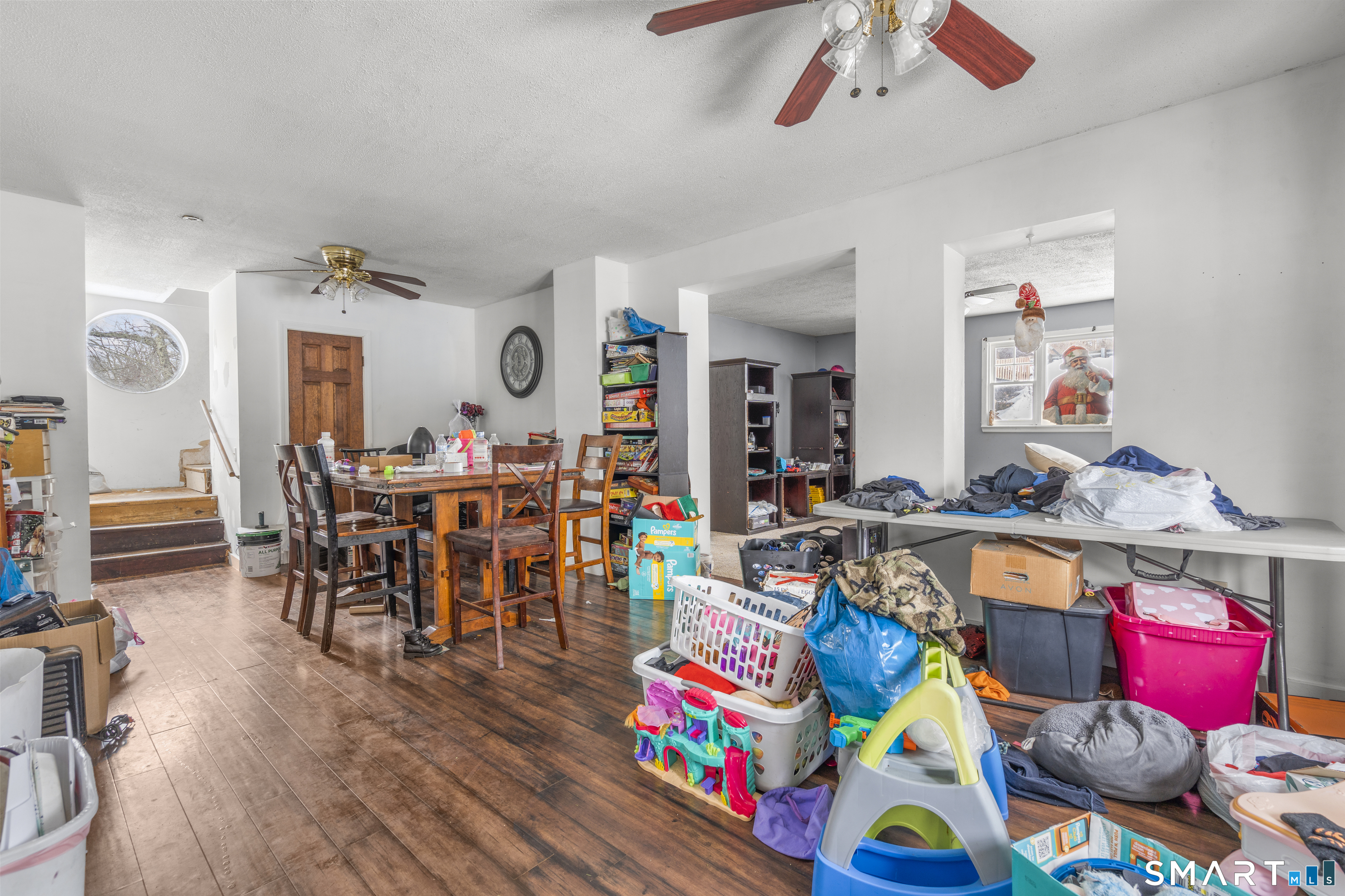 Spacious home offering five bedrooms on the upper level along with a versatile main-level room ideal for a home office or playroom, conveniently located to the side of the home. The property features a full bathroom on the main level and a half bathroom on the second floor. Showcasing a unique layout, the home offers convenient entrances from both the upper and lower levels of the paved driveway. An enclosed porch welcomes you into the kitchen, which offers great potential for cosmetic updates, an island addition, and improved functionality, along with a large pantry providing ample storage. From the kitchen, you enter a sun-filled dining room with generous space for gatherings, which flows into the living room featuring sliding doors with access to the outdoors. Abundant closets and storage areas throughout the home add to its functionality. Enjoy a spacious backyard and flexible parking options with paved driveway access at both levels. Washer and dryer connections are in the basement. While the home is in need of renovation, it presents a great opportunity to customize and add value. Property being sold as-is.