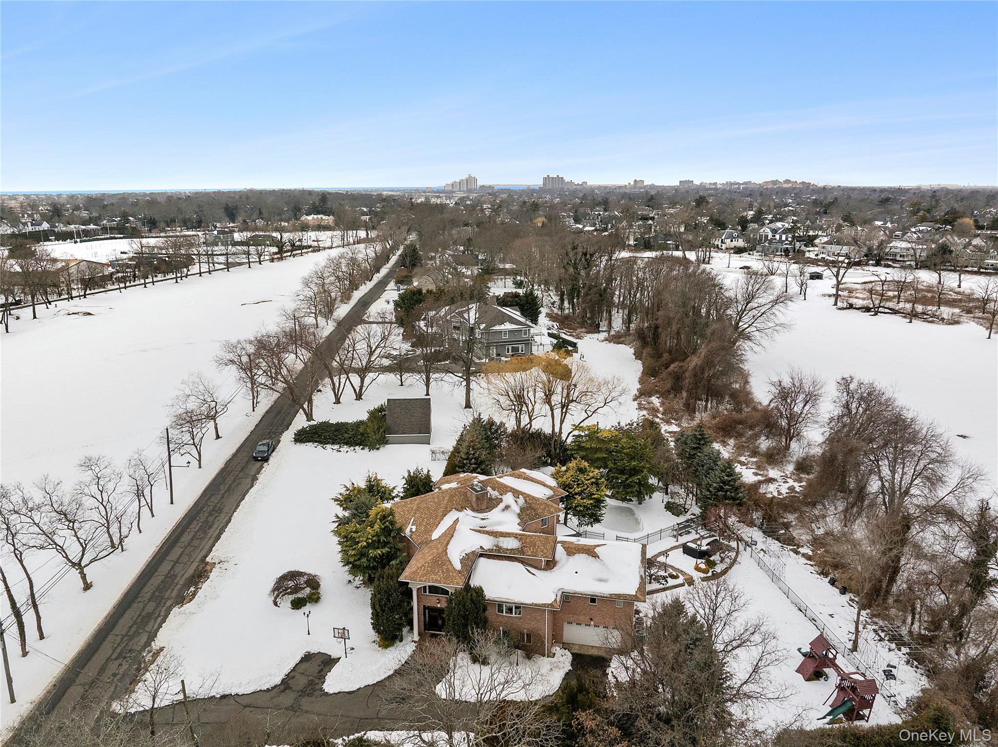 A distinguished six-bedroom, 5. 5-bathroom custom Colonial embodying Old World elegance and timeless sophistication, set on an expansive 0. 59-acre property (just over half an acre) in the exclusive Back of Lawrence with sweeping golf course views. A gracious entry foyer with soaring ceilings unveils beautifully proportioned interiors, leading to a refined living room with fireplace and French doors—an inviting setting for both formal entertaining and intimate gatherings. The formal dining room transitions seamlessly into an expansive gourmet kitchen appointed with premier Viking and Sub-Zero appliances, bespoke Poggenpohl cabinetry, dual Franke sinks, and two Asko dishwashers—where artisanal craftsmanship meets modern luxury. The sumptuous primary suite serves as a tranquil private sanctuary. The primary en suite bath offers a serene retreat, featuring marble floors and walls, a deep soaking tub, a separate glass-enclosed shower, dual vanities, a private toilet room, and an adjoining Grand Dressing Suite. Additional living spaces include a versatile den or guest suite, a private sauna, a wine cellar with bar, and a dedicated media room—thoughtfully designed for both grand-scale entertaining and everyday comfort. The estate-like grounds span just over half an acre, offering exceptional outdoor space complete with a beautifully landscaped yard, expansive patio, in-ground pool, hot tub, and fully equipped outdoor kitchen. A two-car garage completes this exceptional offering—a rare blend of European-inspired grandeur, refined comfort, and resort-style living.