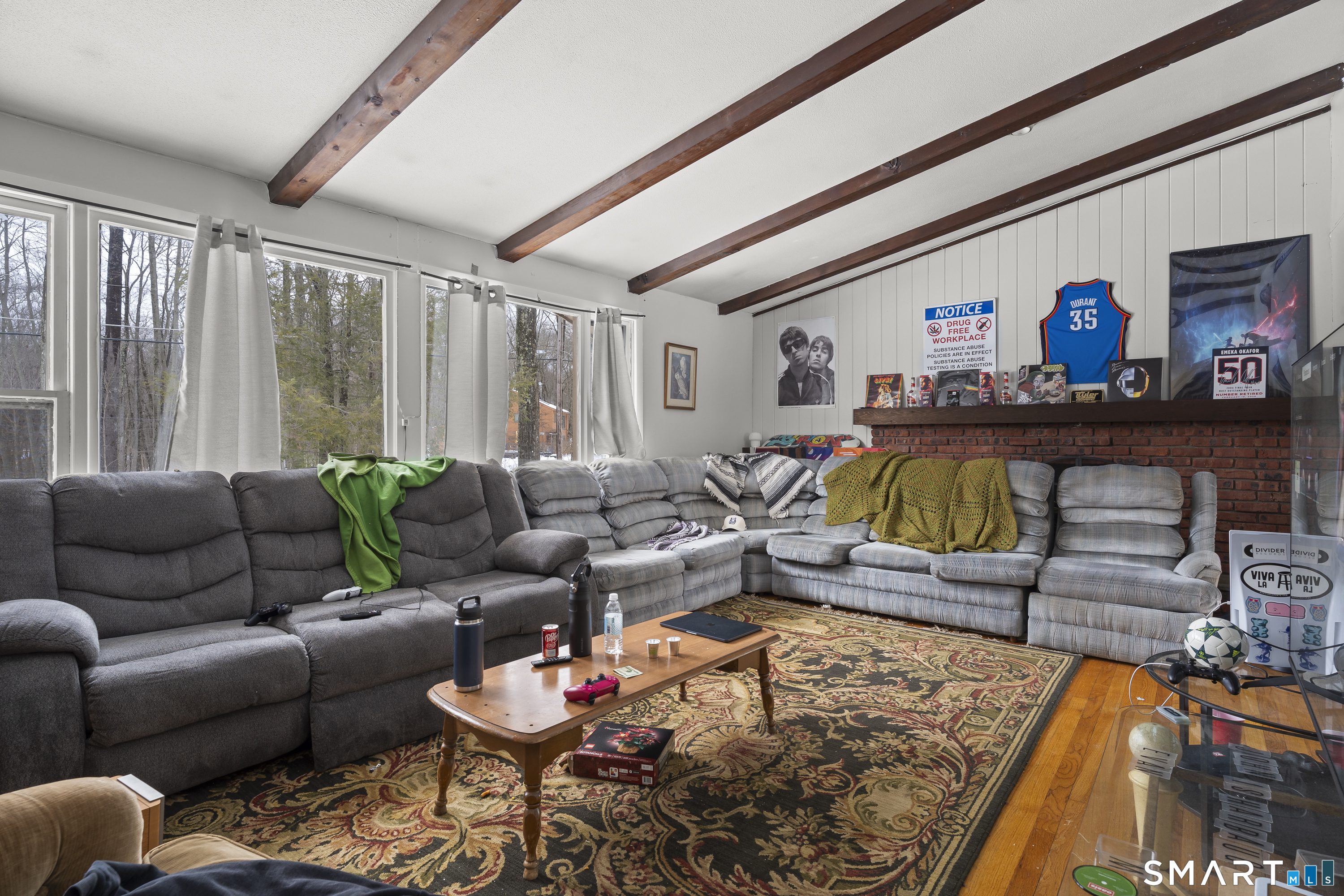 NEW to Storrs/Mansfield is this incredible investor opportunity to walk in to IMMEDIATE income. Minutes away from the UCONN campus, restaurants, and shopping too! Many features including hardwood flooring throughout the main level, a remodeled kitchen w/ Quartz countertops and access through the sliders out to a huge deck for entertaining. 3 bedrooms; one primary suite w/ it's own full bath. The huge living room w/ vaulted ceilings and fireplace provide excellent space and leads into a formal dining room. Two more bedrooms on the main level, and downstairs another family room w/ fireplace, full bath & laundry, additional rooms, and access to 2 car garage. Recent improvements include new paint, a NEW driveway, tree trimming and tree removal, new washer & dryer, recent cleaning & service to boiler w/ new maintenance kit installed. Don't miss this opportunity with a tremendous location and turn-key income!