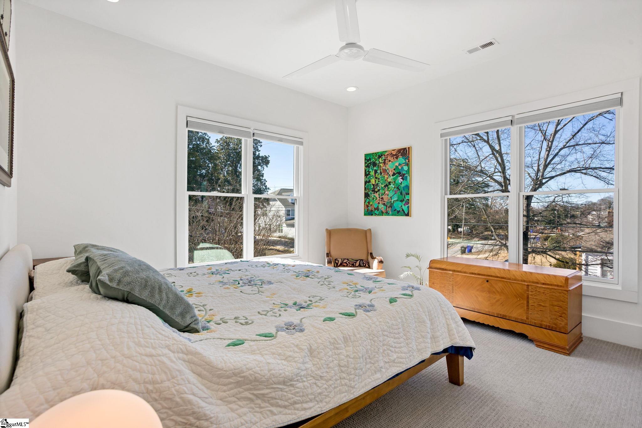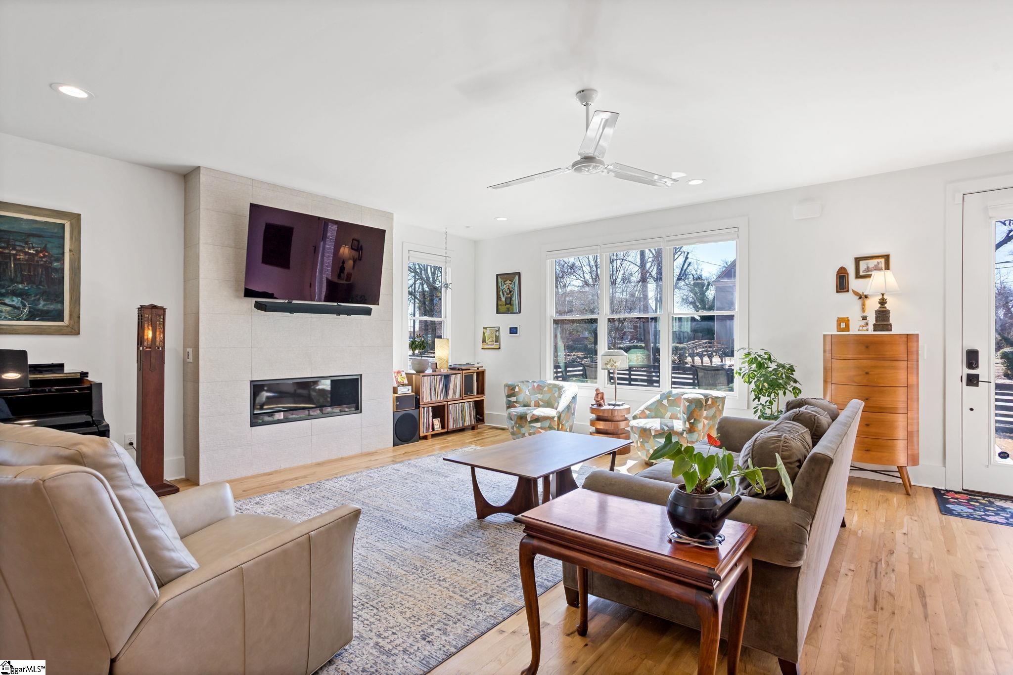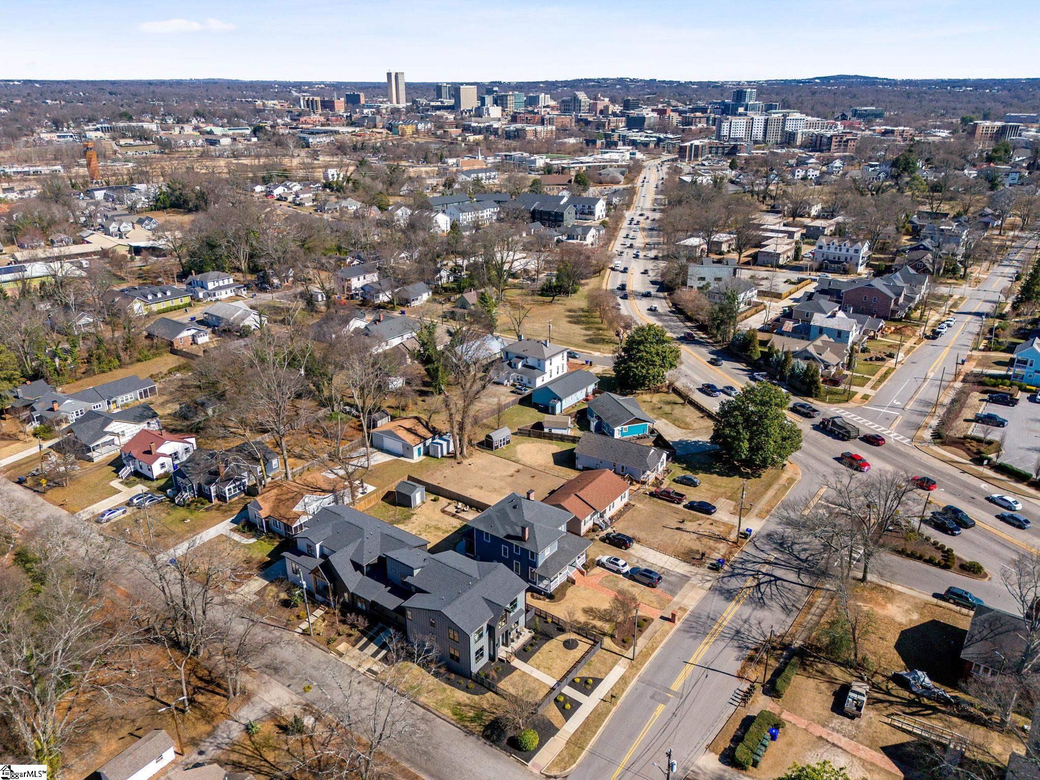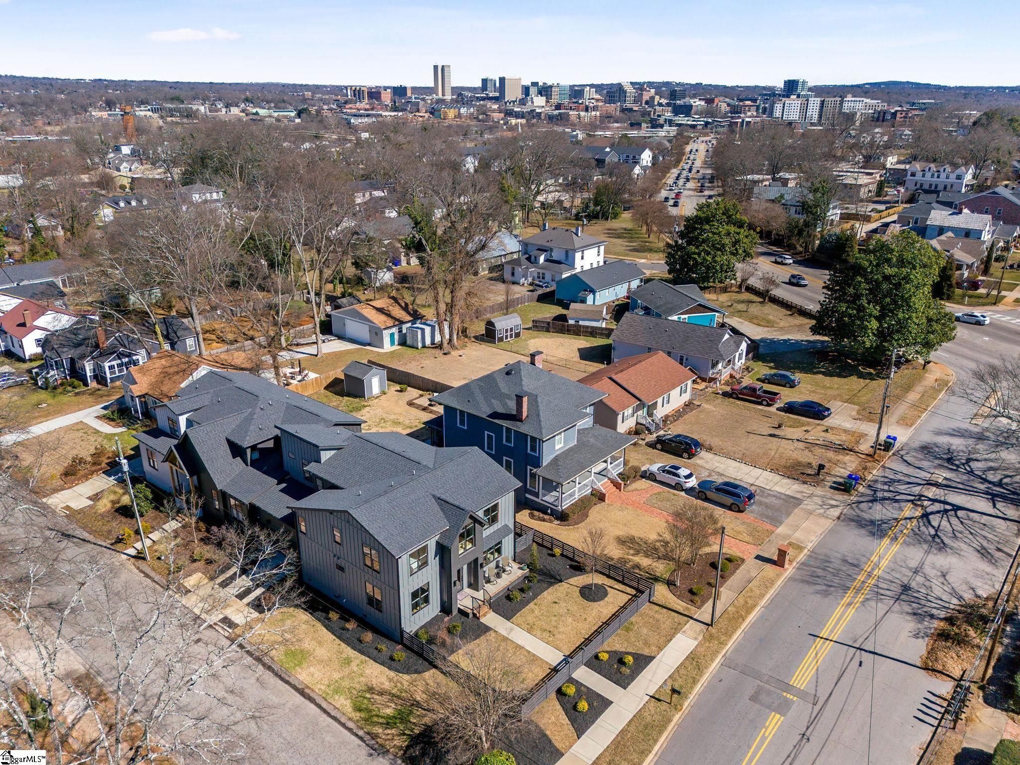 412 Perry Avenue offers over 3, 100 square feet of custom build in Downtown Greenville's West End, within walking distance of Unity Park and Main Street. Built by Oasis Custom Homes, the construction and finish level are a head above the rest. Site-finished hardwood flooring, custom cabinetry with soft-close detail, quartz countertops, Bosch appliances, and clean, modern lines are found throughout. The layout, design, and overall scale truly set this one apart. The main level features an open floor plan centered around a large waterfall island and living space with a sleek linear gas fireplace. The primary suite is a truly amazing space. The room itself is generous in size, has great light, and two walk in closets! The stunning ensuite bathroom includes a vaulted ceiling, oversized tiled shower, freestanding tub, and dual vanities - giving it a scale and feel that you will appreciate daily. There are three true bedroom suites, plus a main-level one that can serve as a fourth bedroom, office, guest room, or den depending on how you prefer to live. It also offers a rare feature for downtown living: a fenced yard, providing defined outdoor space that works especially well for pets. Just let your dog out from the covered back porch, or right out the front door! Additional features include a two-car garage, walk-in pantry, mudroom, and stacked closets designed for future elevator installation if ever desired. Another feature you will notice right away is how wide the hall is upstairs, and at the end of the hall is a great office or flex space overlooking the front yard. It is well positioned, well built, and thoughtfully laid out over only two levels! Reach out for a showing today!