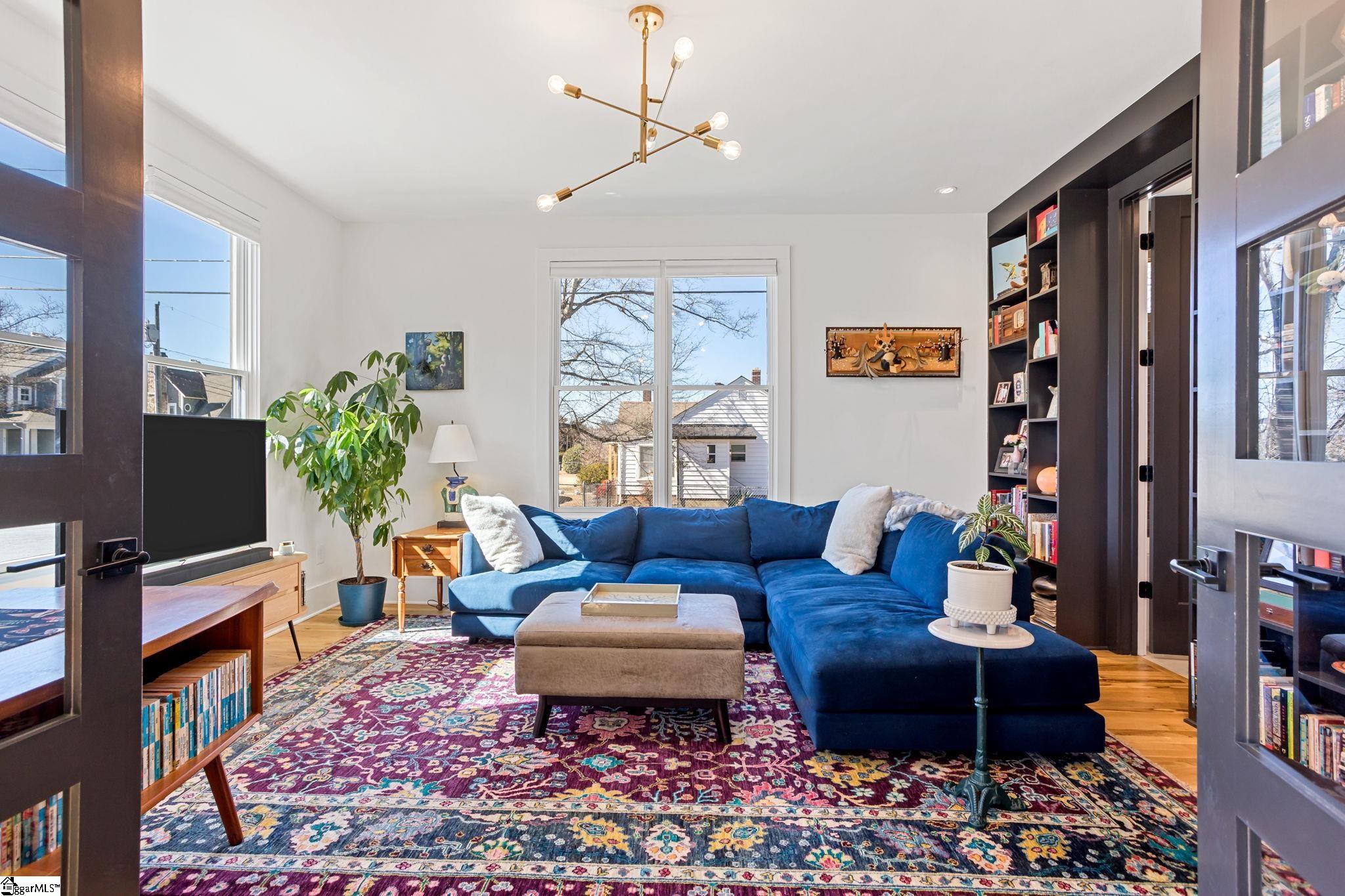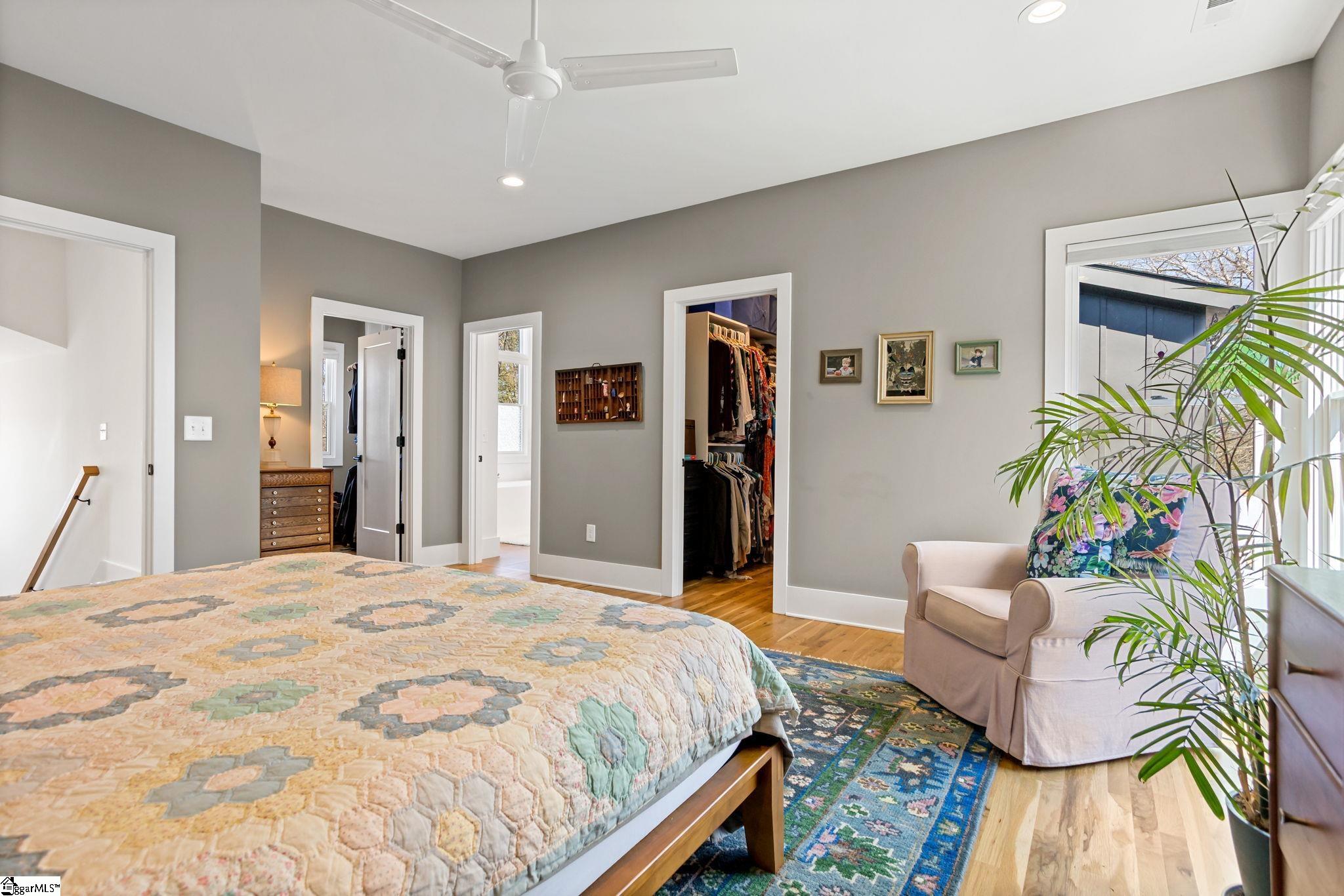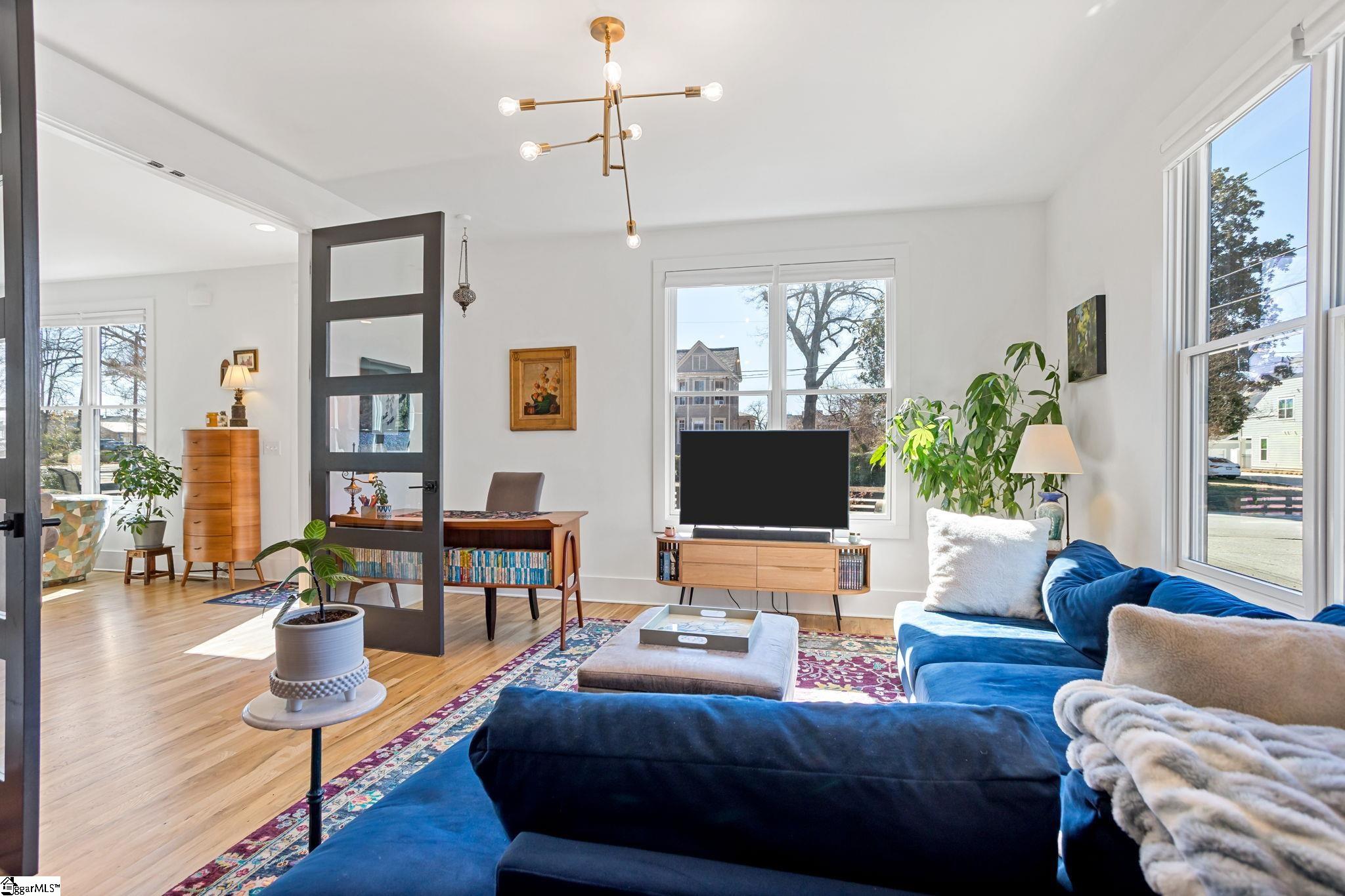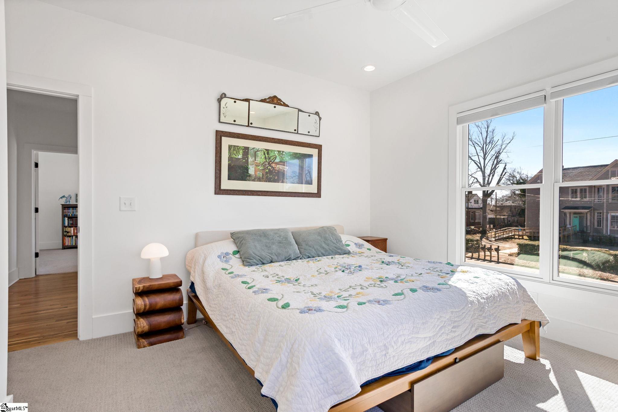 412 Perry Avenue offers over 3, 100 square feet of custom build in Downtown Greenville's West End, within walking distance of Unity Park and Main Street. Built by Oasis Custom Homes, the construction and finish level are a head above the rest. Site-finished hardwood flooring, custom cabinetry with soft-close detail, quartz countertops, Bosch appliances, and clean, modern lines are found throughout. The layout, design, and overall scale truly set this one apart. The main level features an open floor plan centered around a large waterfall island and living space with a sleek linear gas fireplace. The primary suite is a truly amazing space. The room itself is generous in size, has great light, and two walk in closets! The stunning ensuite bathroom includes a vaulted ceiling, oversized tiled shower, freestanding tub, and dual vanities - giving it a scale and feel that you will appreciate daily. There are three true bedroom suites, plus a main-level one that can serve as a fourth bedroom, office, guest room, or den depending on how you prefer to live. It also offers a rare feature for downtown living: a fenced yard, providing defined outdoor space that works especially well for pets. Just let your dog out from the covered back porch, or right out the front door! Additional features include a two-car garage, walk-in pantry, mudroom, and stacked closets designed for future elevator installation if ever desired. Another feature you will notice right away is how wide the hall is upstairs, and at the end of the hall is a great office or flex space overlooking the front yard. It is well positioned, well built, and thoughtfully laid out over only two levels! Reach out for a showing today!