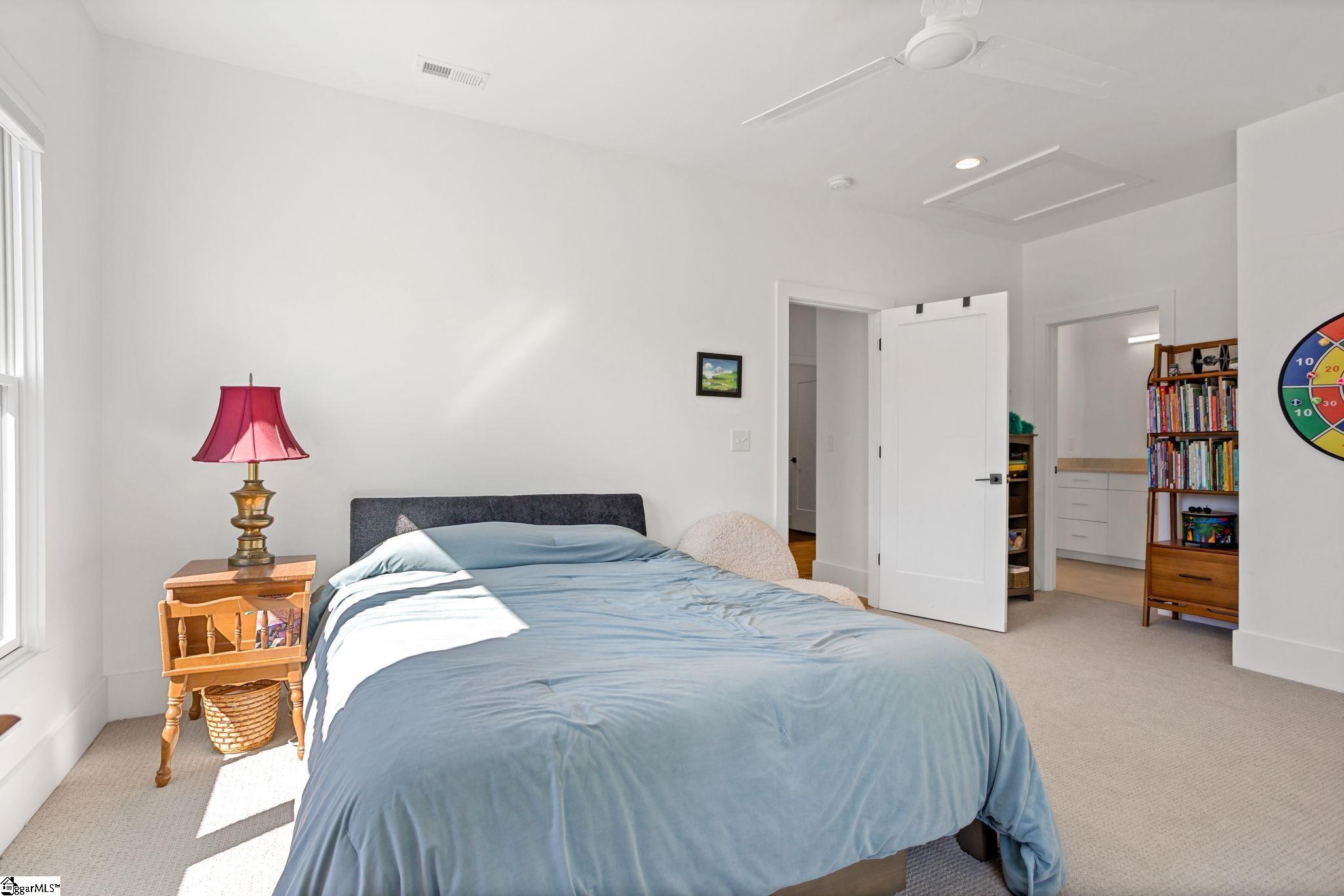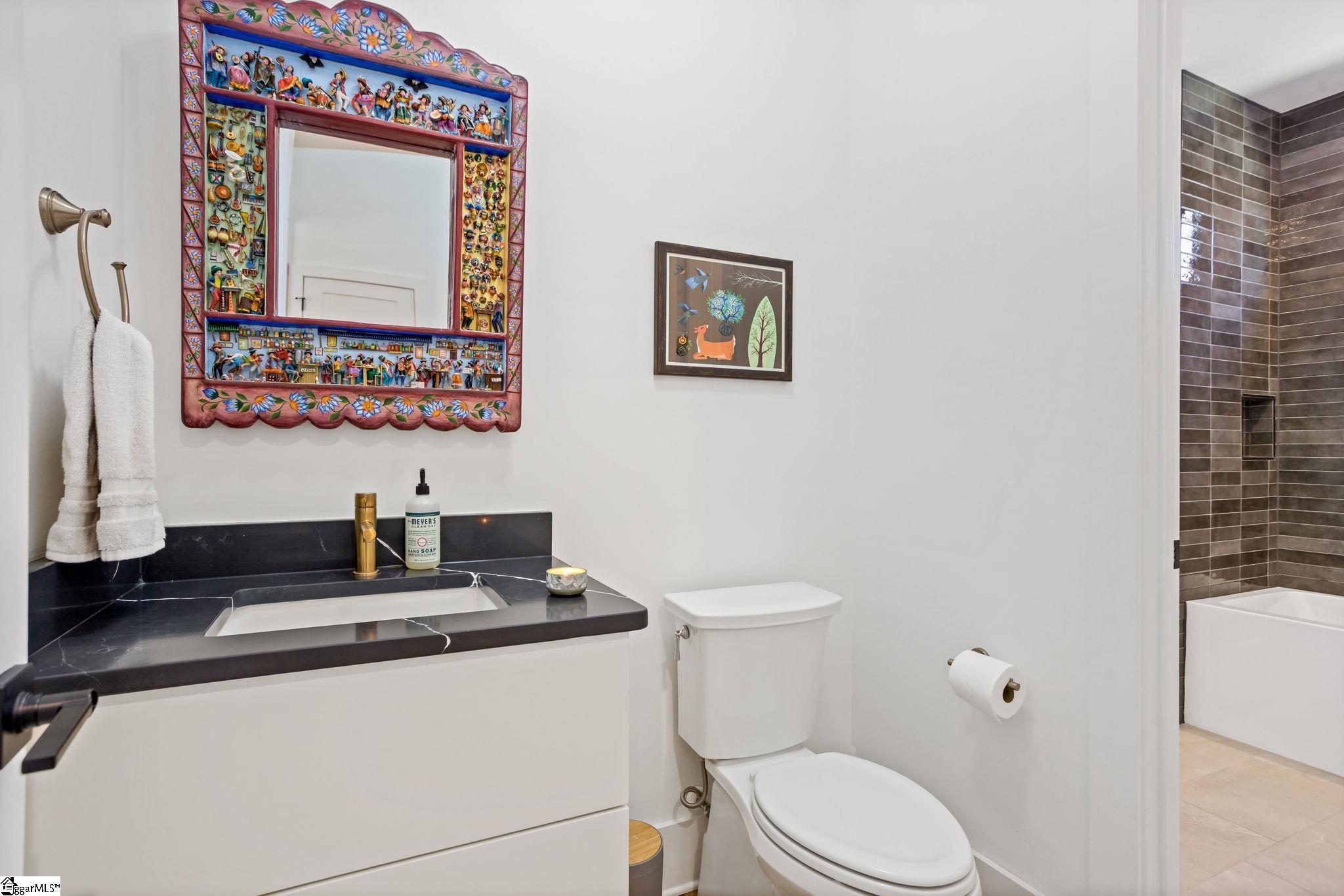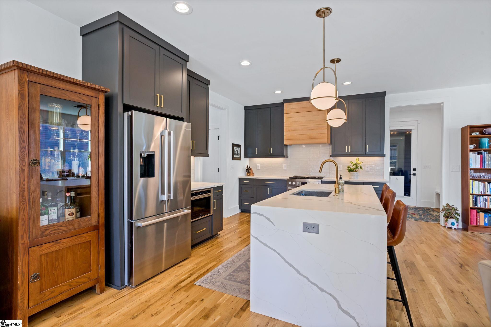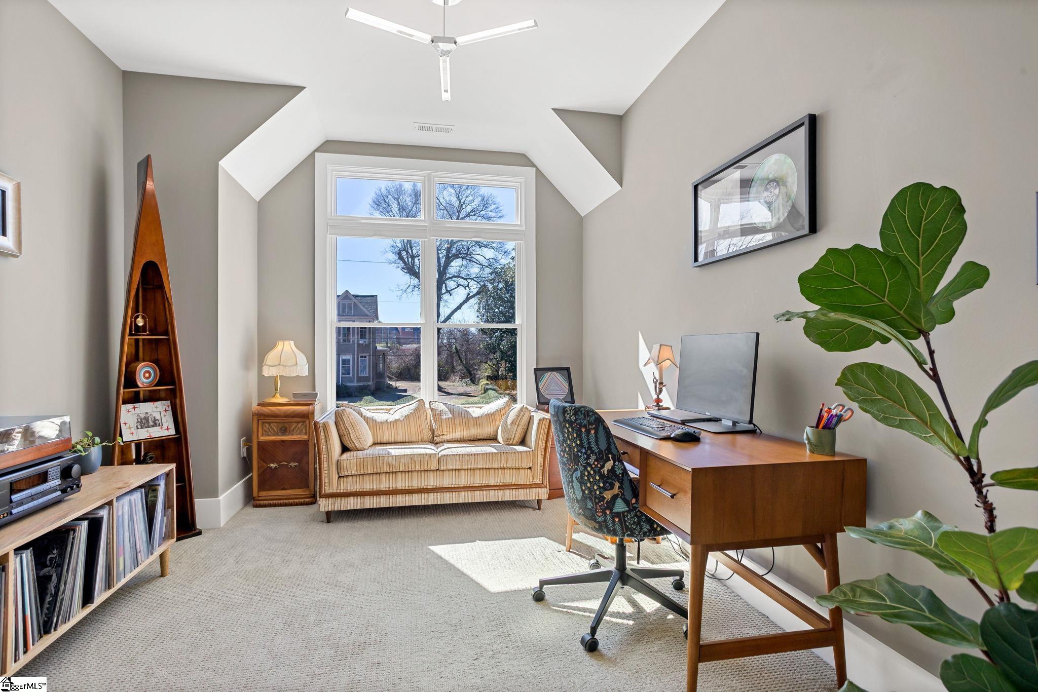 412 Perry Avenue offers over 3, 100 square feet of custom build in Downtown Greenville's West End, within walking distance of Unity Park and Main Street. Built by Oasis Custom Homes, the construction and finish level are a head above the rest. Site-finished hardwood flooring, custom cabinetry with soft-close detail, quartz countertops, Bosch appliances, and clean, modern lines are found throughout. The layout, design, and overall scale truly set this one apart. The main level features an open floor plan centered around a large waterfall island and living space with a sleek linear gas fireplace. The primary suite is a truly amazing space. The room itself is generous in size, has great light, and two walk in closets! The stunning ensuite bathroom includes a vaulted ceiling, oversized tiled shower, freestanding tub, and dual vanities - giving it a scale and feel that you will appreciate daily. There are three true bedroom suites, plus a main-level one that can serve as a fourth bedroom, office, guest room, or den depending on how you prefer to live. It also offers a rare feature for downtown living: a fenced yard, providing defined outdoor space that works especially well for pets. Just let your dog out from the covered back porch, or right out the front door! Additional features include a two-car garage, walk-in pantry, mudroom, and stacked closets designed for future elevator installation if ever desired. Another feature you will notice right away is how wide the hall is upstairs, and at the end of the hall is a great office or flex space overlooking the front yard. It is well positioned, well built, and thoughtfully laid out over only two levels! Reach out for a showing today!