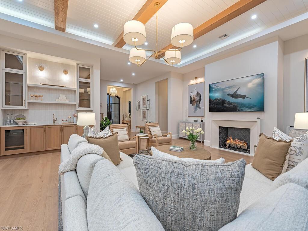 An exceptional achievement in elevated coastal architecture, this newly completed Park Shore residence captures the essence of refined Naples living. Crafted by T. B. Price Builders with architectural vision by T. Boyatt and interiors by R & Co. Designs, this Sand Dollar 2025 winning home reflects architectural distinction with a thoughtful commitment to sustainability. Encompassing approximately 5, 135 square feet, the layout features five luxurious en suite bedrooms and a private den, curated to enhance natural light and showcase lush surroundings. European wide-plank flooring, quartzite surfaces, and custom coffered ceilings introduce warmth, timeless craftsmanship, and eco-conscious sourcing. The coveted southern exposure fills the outdoor living areas with all-day light, highlighting the fully appointed summer kitchen and resort-style setting ideal for al fresco sunset gatherings. Inside, a chef-caliber kitchen showcases Sub-Zero, Wolf, and Dacor appliances, seamlessly blending performance with sleek elegance, while impact-rated Andersen windows optimize energy efficiency. Dual first-floor offices, a private elevator, and a versatile upper-level retreat add functionality and flexibility. Energy-efficient systems and environmentally mindful finishes underscore a residence designed for both luxury and longevity, just moments from Venetian Village, Waterside Shops, and Fifth Avenue South.