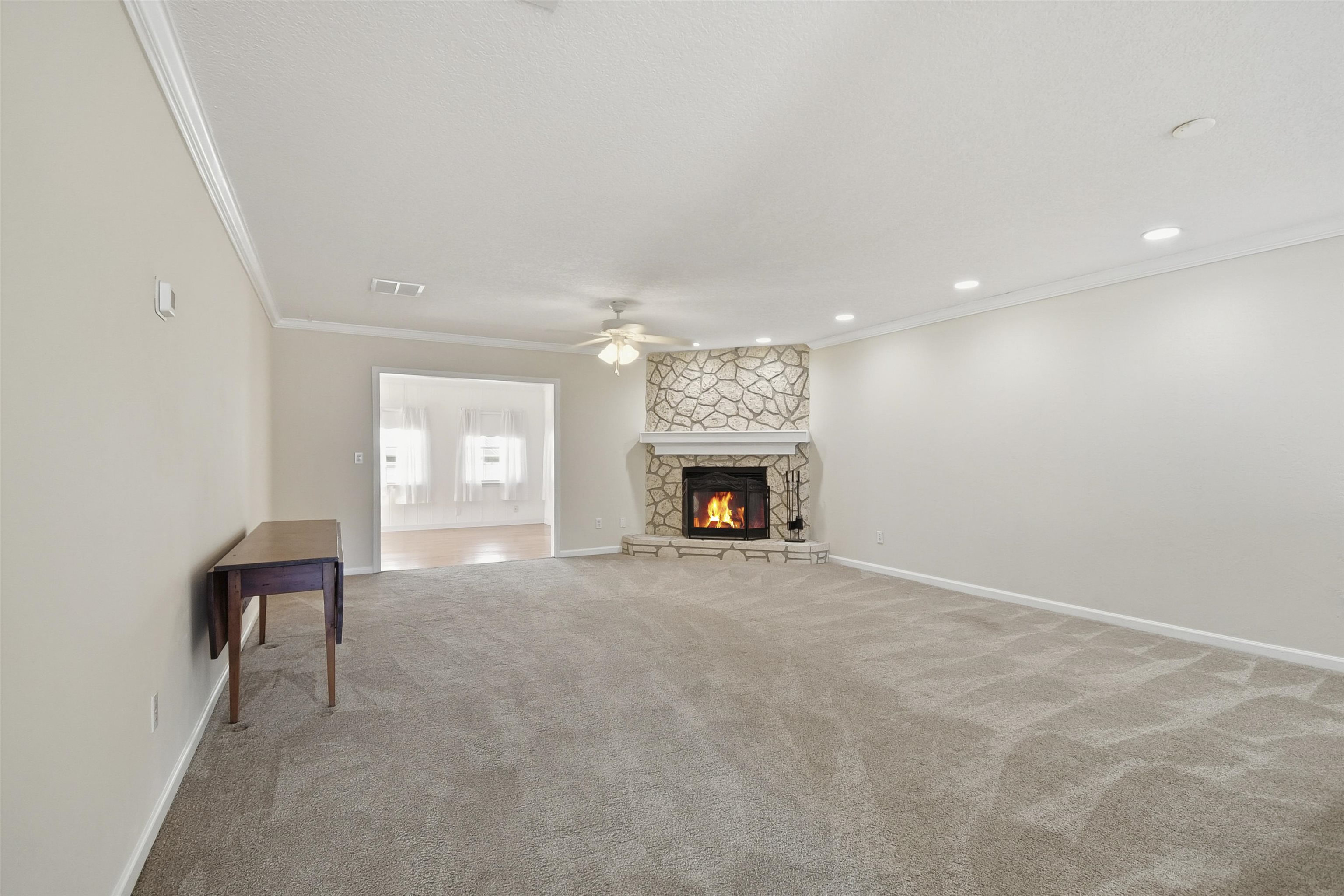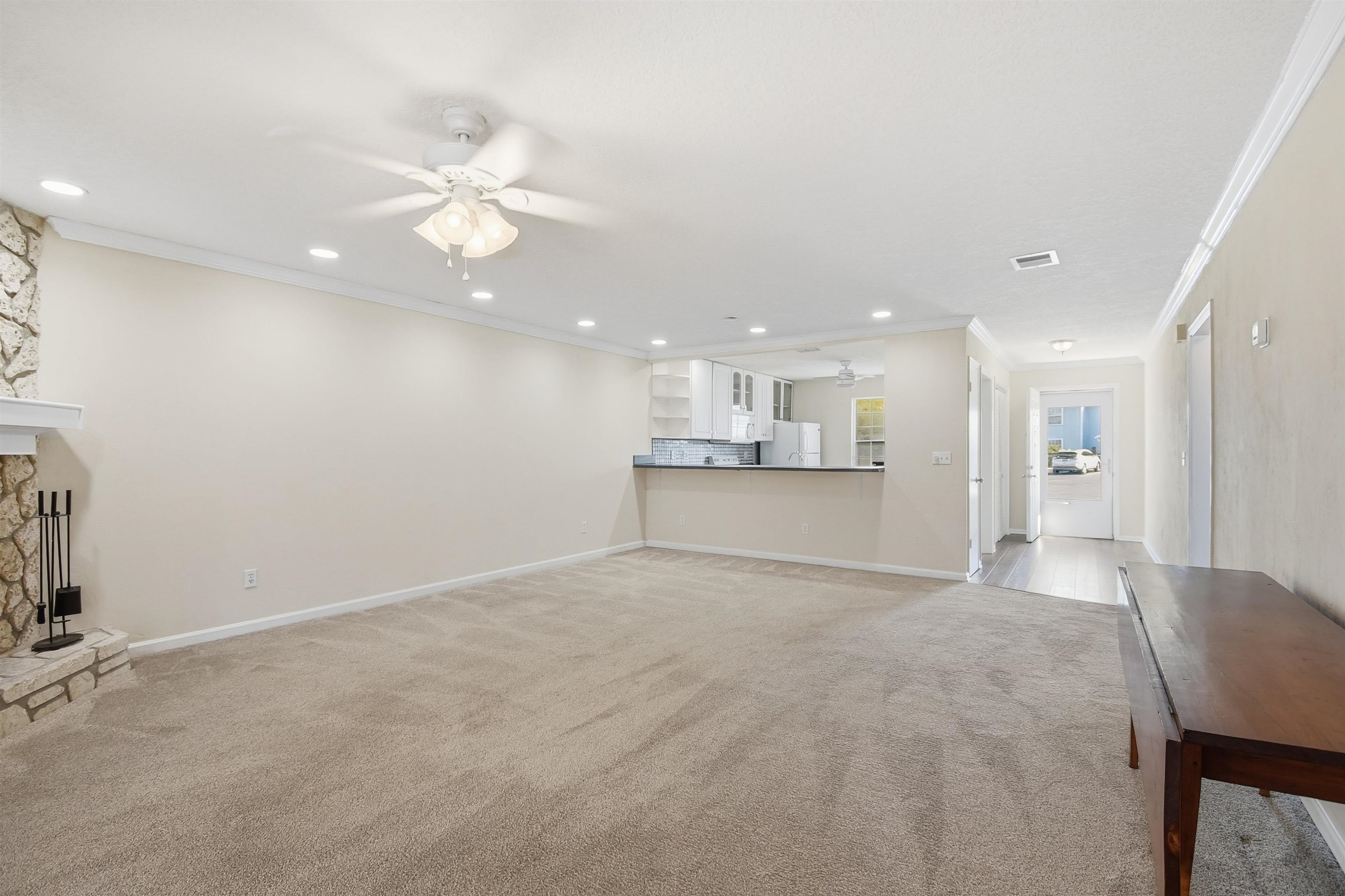 Ground-level 2 bed, 2 bath condo in Tarpon Run, currently undergoing exterior upgrades to enhance curb appeal and long-term value. Inside, enjoy a bright layout with fresh paint in the living area and a standout wood-burning corner fireplace that adds rare character. The sunroom offers bonus space ideal for a home office or extra living area. The primary suite features an ensuite bath with walk-in shower, plus a second bedroom and full bath for convenience. A small back patio provides easy outdoor access. Enjoy the community pool, beach access across the street via the crosswalk, and a nearby boat ramp on Green Rd, perfect for launching at sunrise and heading out for a full day on the water. Whether you're seeking a weekend escape, full-time coastal living, or a strong short-term rental opportunity, this one puts you steps from the sand.