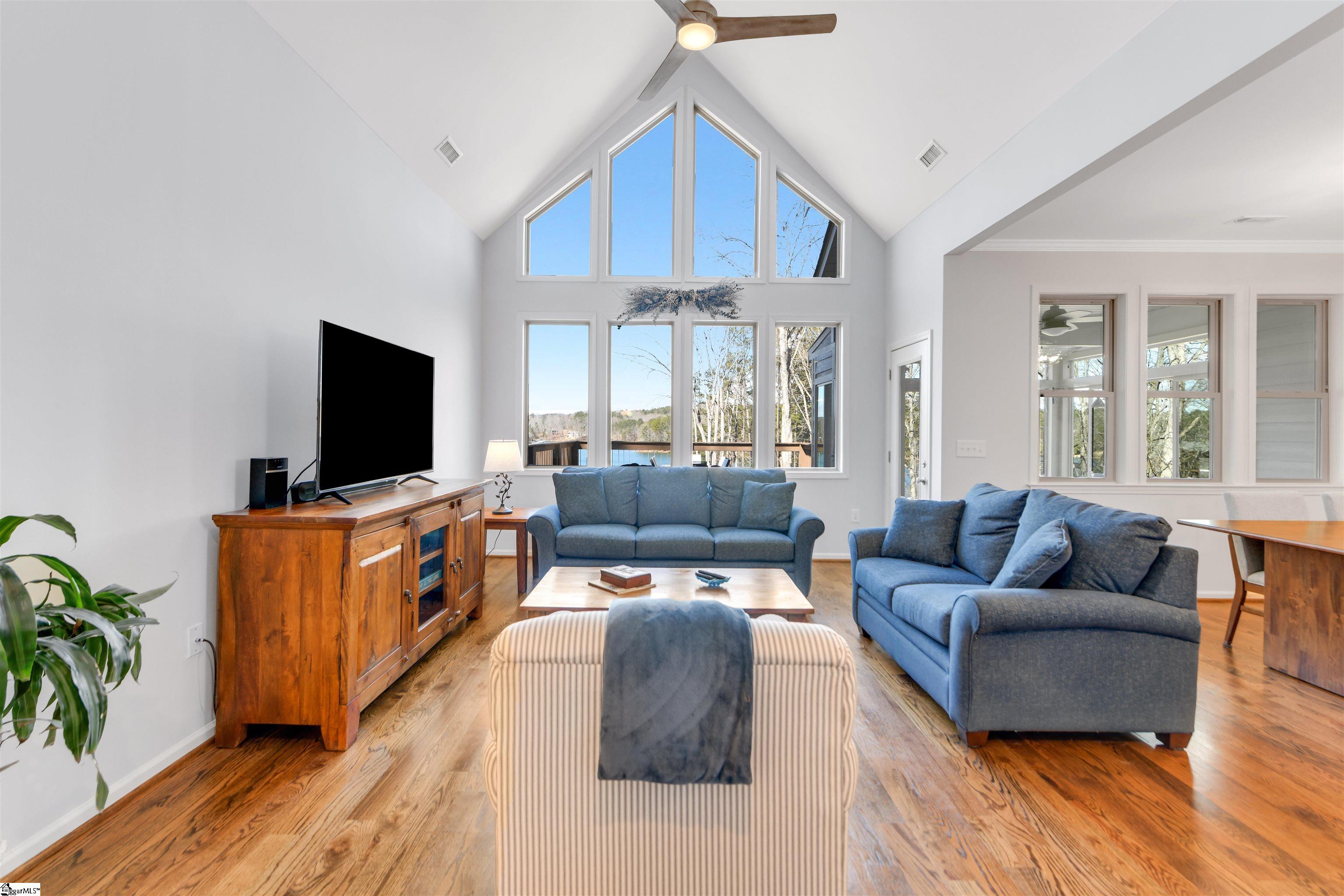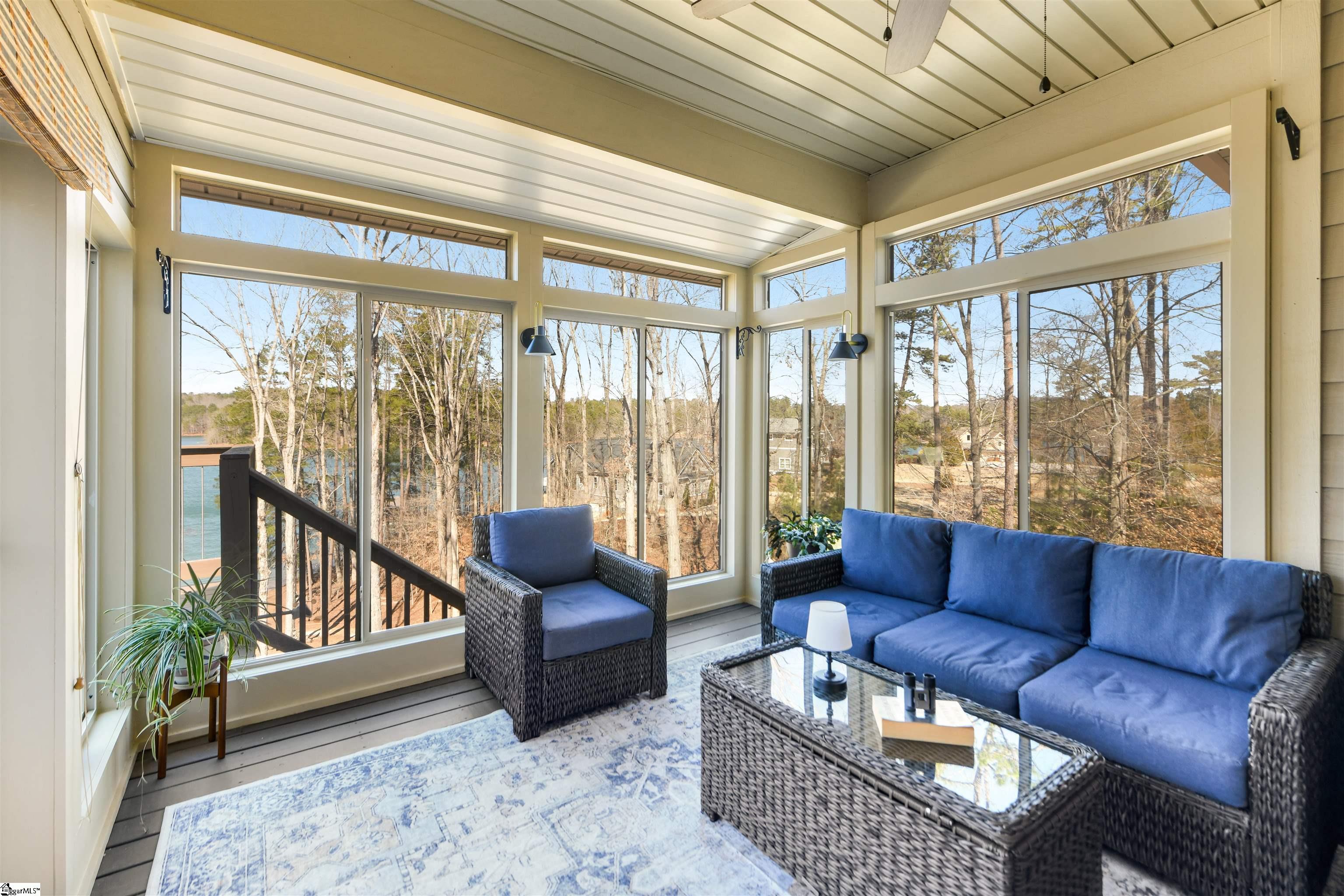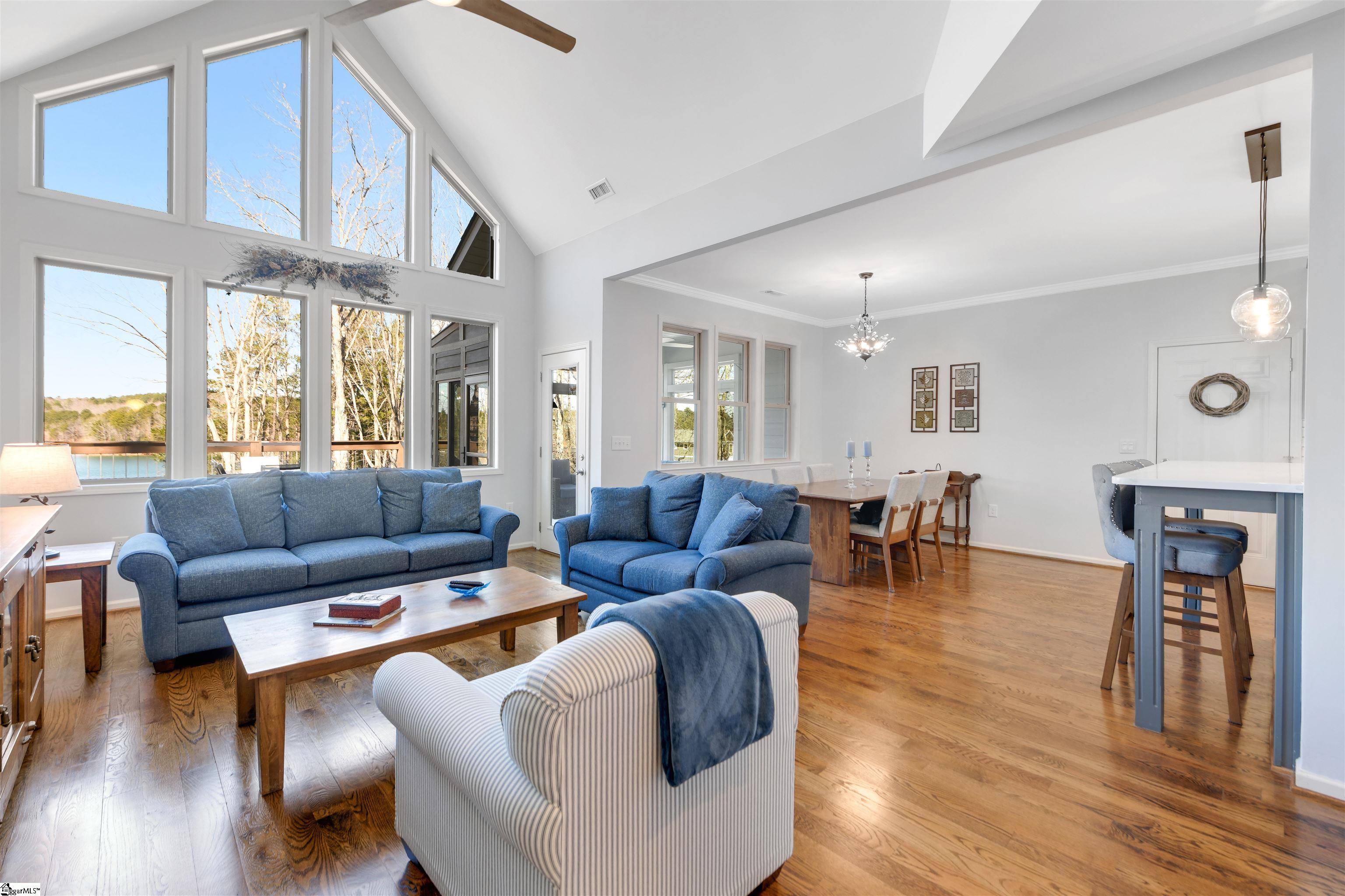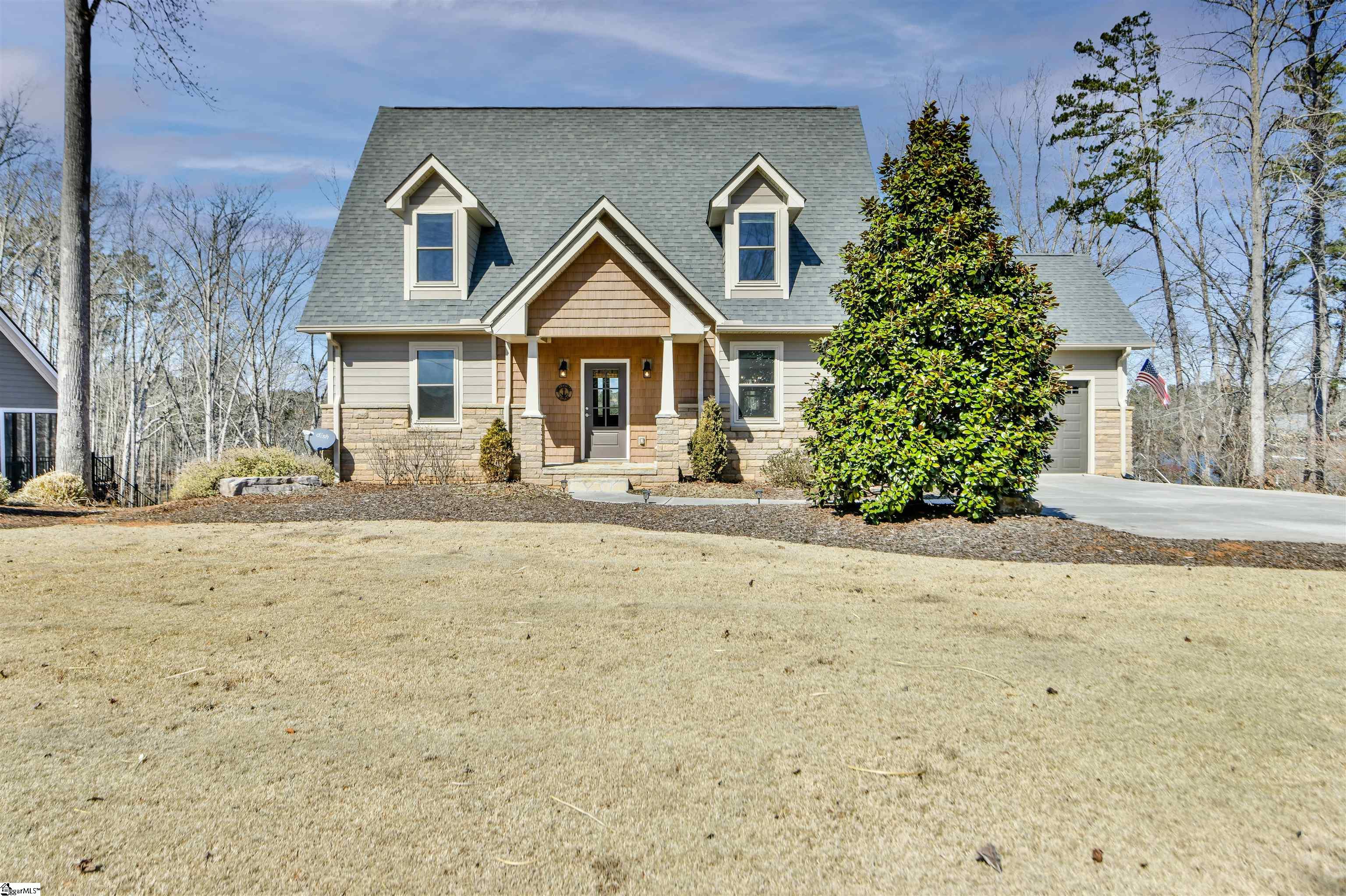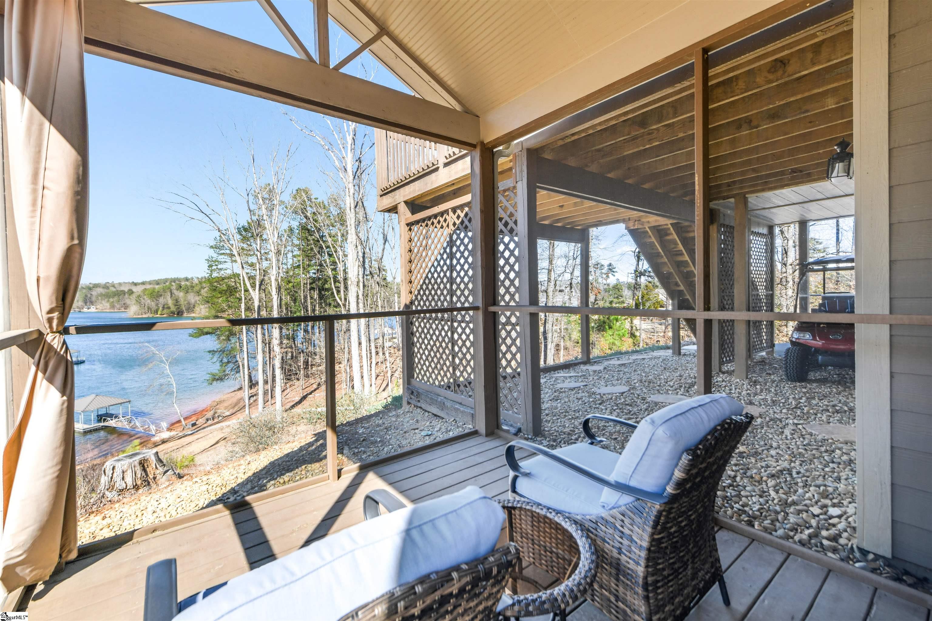 The Keowee Life Awaits You! Built in 2020, this exceptional lakefront retreat delivers effortless lakeside living with a thoughtful design ideal for both everyday comfort and entertaining. A brand-new gangway was installed pushing the covered dock into deeper water and then dropping off into even deeper water quickly from there. Situated on . 65 acres with 90 +/- feet of shoreline, this 3-level, 4-bedroom, 3. 5-bath home offers the perfect blend of style, function, and waterfront enjoyment. The open-concept main level features soaring cathedral ceilings and warm oak hardwood floors, creating a bright and inviting atmosphere. The kitchen is beautifully appointed with quartz countertops, stainless steel appliances, subway tile backsplash, custom cabinetry, and a spacious walk-in pantry. A generous dining area easily accommodates large gatherings, while the built-in bar enhances the great room—making entertaining seamless. The main-level owner’s suite serves as a private retreat, complete with a dual granite vanity, soaking tub, tiled shower, and walk-in closet. A guest half bath and laundry room complete the main floor. Upstairs, two additional bedrooms share a hall bath featuring tile flooring and a granite vanity. The finished walk-out terrace level expands the living space with a large recreation/media room anchored by a gas fireplace, full home theater system with 85” mounted TV, a fourth bedroom, and a full bath—ideal for guests. OUTDOOR LIVING truly shines with an all-season sunroom just off the kitchen and great room, upper grilling deck, lower-level screened porch, and a perfect spot for a future hot tub (pre-wired 220V), and a covered patio—offering year-round enjoyment of the lake lifestyle. A concrete golf cart path provides easy access from the driveway to the shoreline, making lake days effortless. The two-car garage features an epoxy floor, workbench, and utility sink. Additional highlights include energy-efficient Low-E tilt windows, new carpet upstairs and on each of the stairways, and installed gutter guards for added peace of mind. Experience refined comfort and easy lake living on beautiful Lake Keowee just in time for Spring! Live it, Love it, Lake it! The information provided is believed to be correct. Barefoot Cove is governed by covenants, restrictions, and By-Laws. The community has an Homeowners Association. Buyers to verify information which may change.