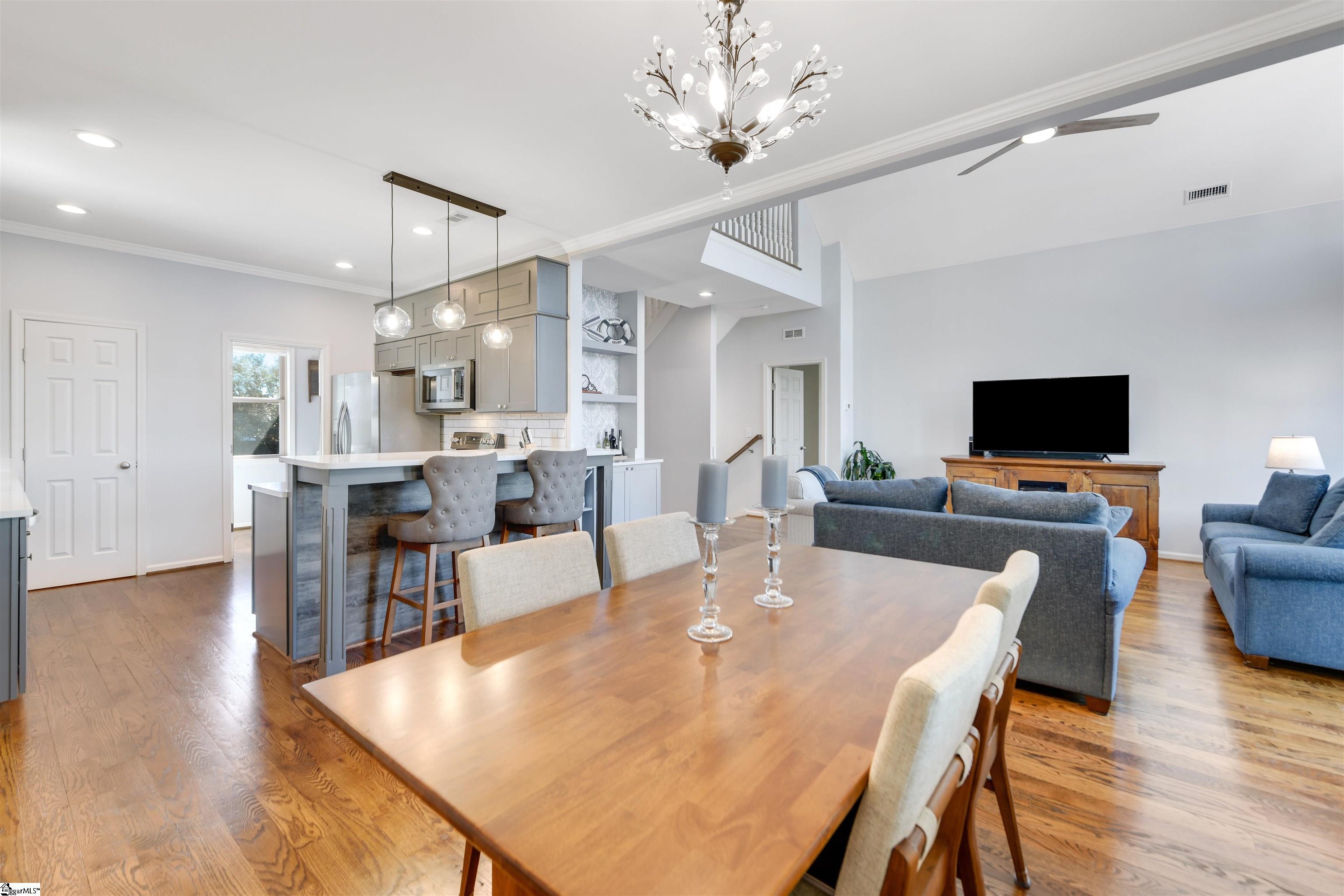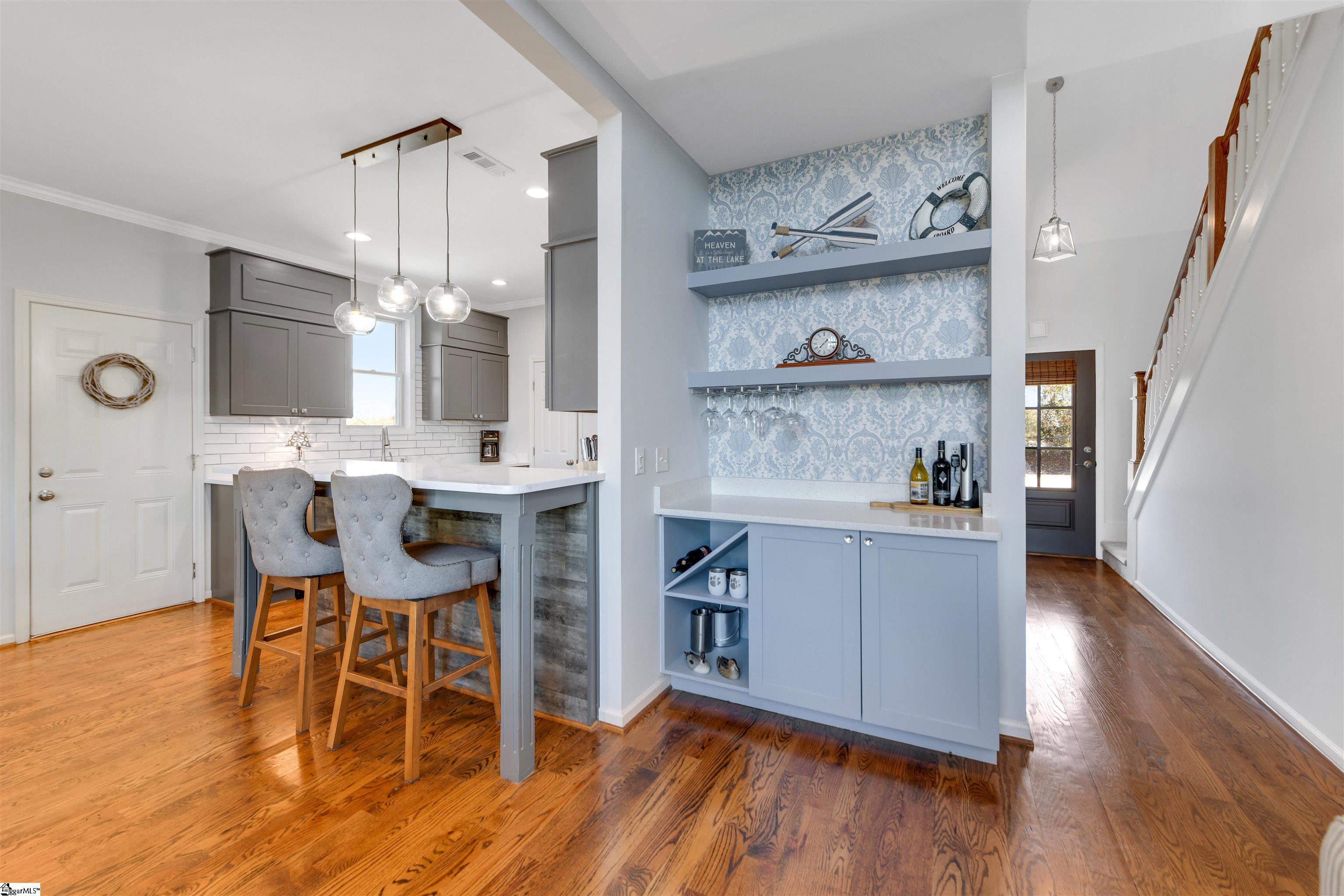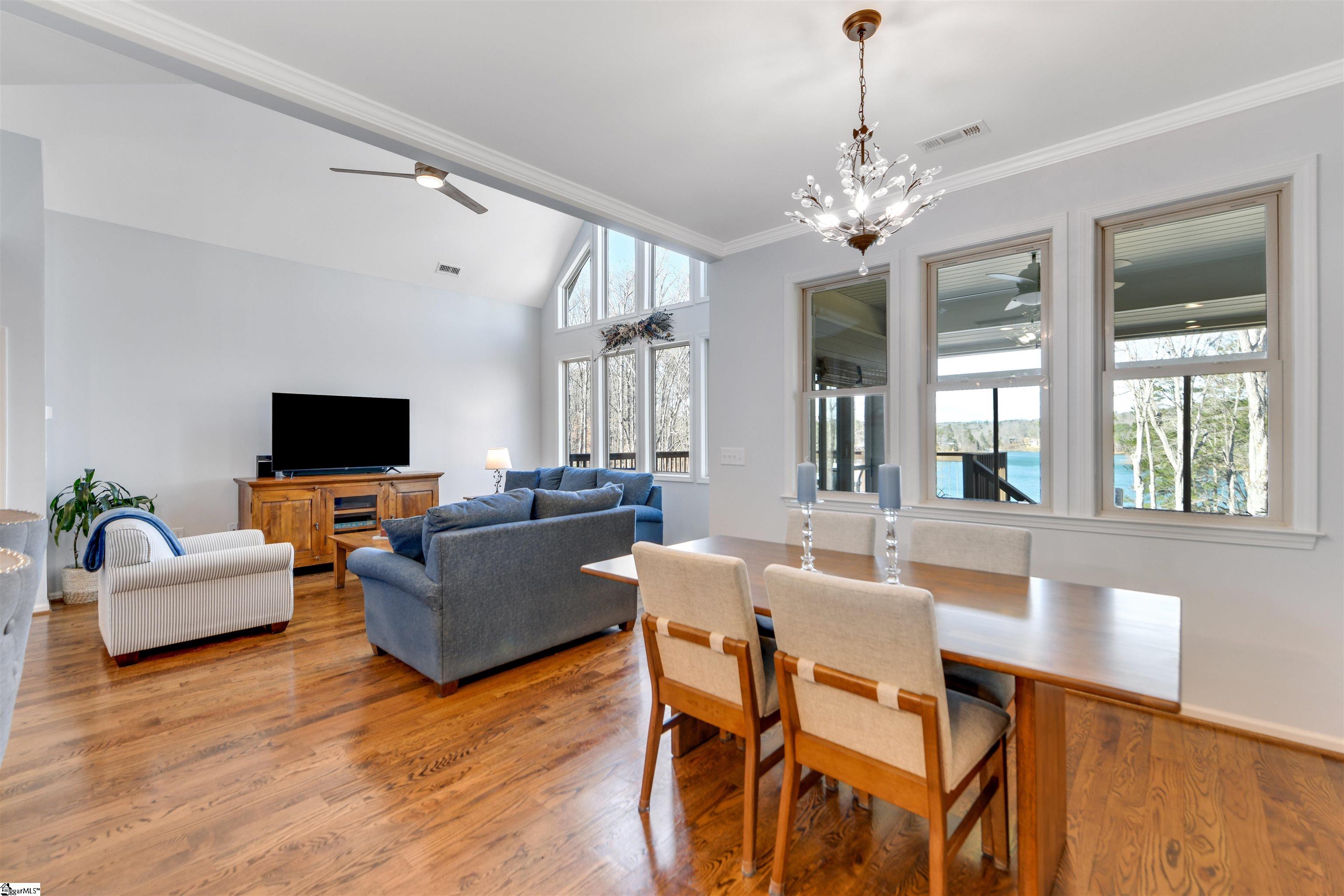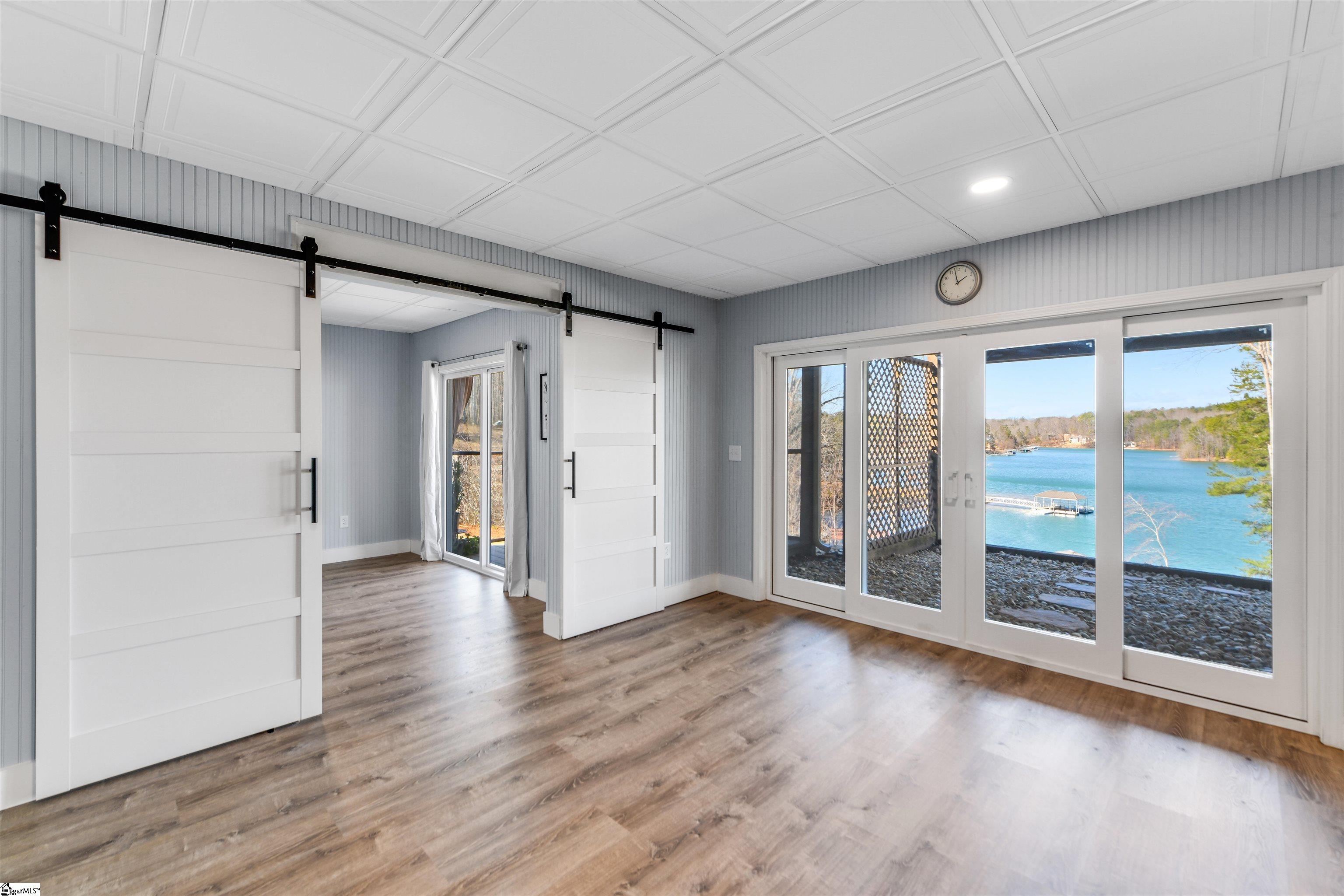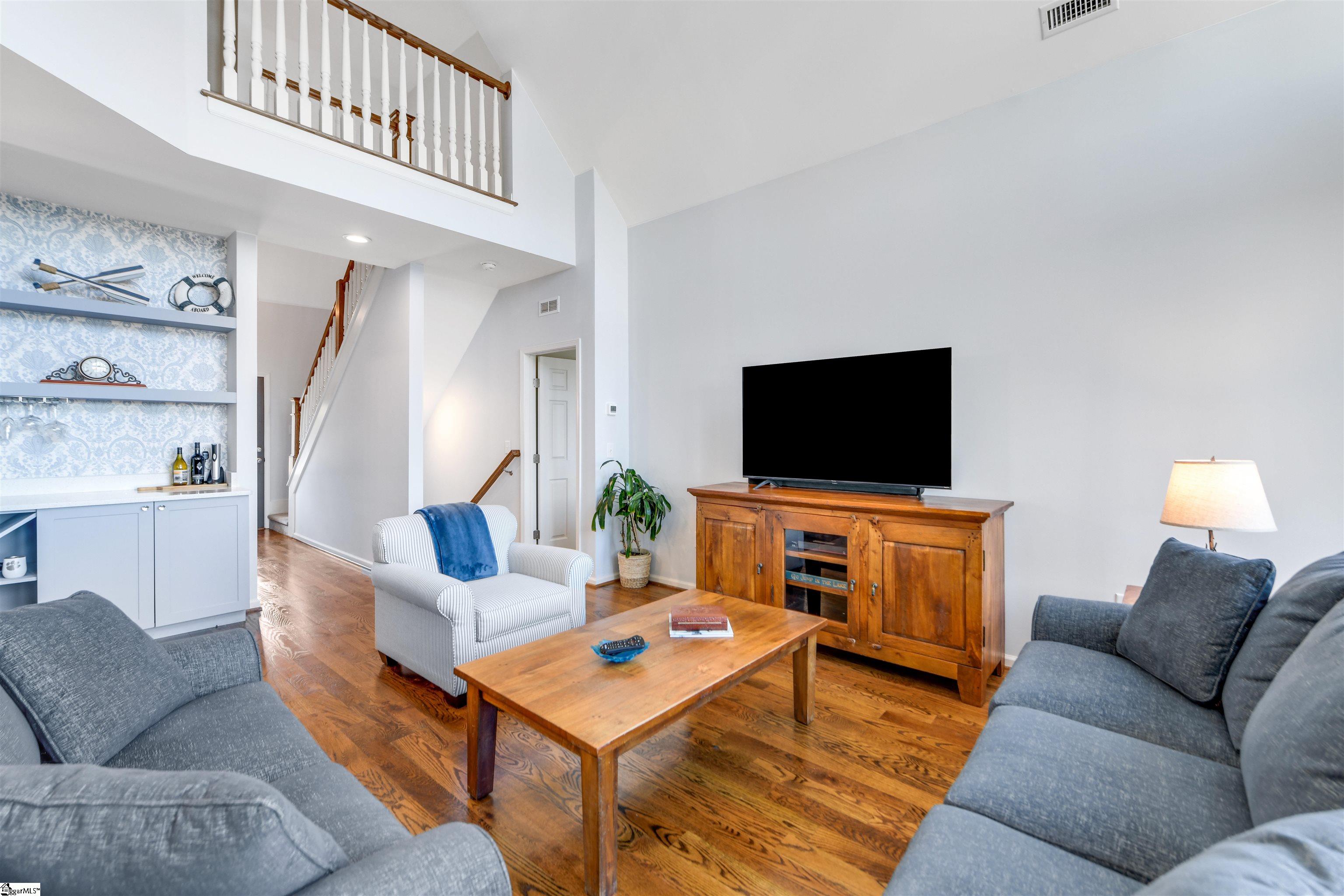 The Keowee Life Awaits You! Built in 2020, this exceptional lakefront retreat delivers effortless lakeside living with a thoughtful design ideal for both everyday comfort and entertaining. A brand-new gangway was installed pushing the covered dock into deeper water and then dropping off into even deeper water quickly from there. Situated on . 65 acres with 90 +/- feet of shoreline, this 3-level, 4-bedroom, 3. 5-bath home offers the perfect blend of style, function, and waterfront enjoyment. The open-concept main level features soaring cathedral ceilings and warm oak hardwood floors, creating a bright and inviting atmosphere. The kitchen is beautifully appointed with quartz countertops, stainless steel appliances, subway tile backsplash, custom cabinetry, and a spacious walk-in pantry. A generous dining area easily accommodates large gatherings, while the built-in bar enhances the great room—making entertaining seamless. The main-level owner’s suite serves as a private retreat, complete with a dual granite vanity, soaking tub, tiled shower, and walk-in closet. A guest half bath and laundry room complete the main floor. Upstairs, two additional bedrooms share a hall bath featuring tile flooring and a granite vanity. The finished walk-out terrace level expands the living space with a large recreation/media room anchored by a gas fireplace, full home theater system with 85” mounted TV, a fourth bedroom, and a full bath—ideal for guests. OUTDOOR LIVING truly shines with an all-season sunroom just off the kitchen and great room, upper grilling deck, lower-level screened porch, and a perfect spot for a future hot tub (pre-wired 220V), and a covered patio—offering year-round enjoyment of the lake lifestyle. A concrete golf cart path provides easy access from the driveway to the shoreline, making lake days effortless. The two-car garage features an epoxy floor, workbench, and utility sink. Additional highlights include energy-efficient Low-E tilt windows, new carpet upstairs and on each of the stairways, and installed gutter guards for added peace of mind. Experience refined comfort and easy lake living on beautiful Lake Keowee just in time for Spring! Live it, Love it, Lake it! The information provided is believed to be correct. Barefoot Cove is governed by covenants, restrictions, and By-Laws. The community has an Homeowners Association. Buyers to verify information which may change.