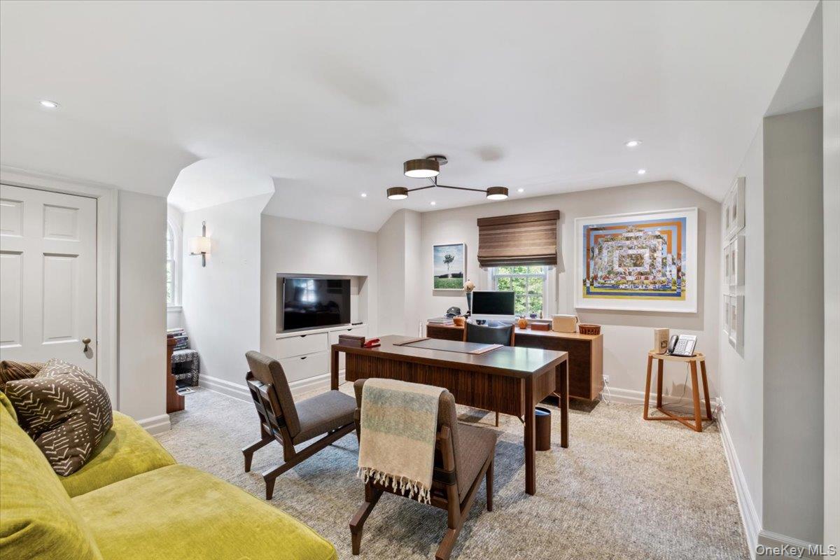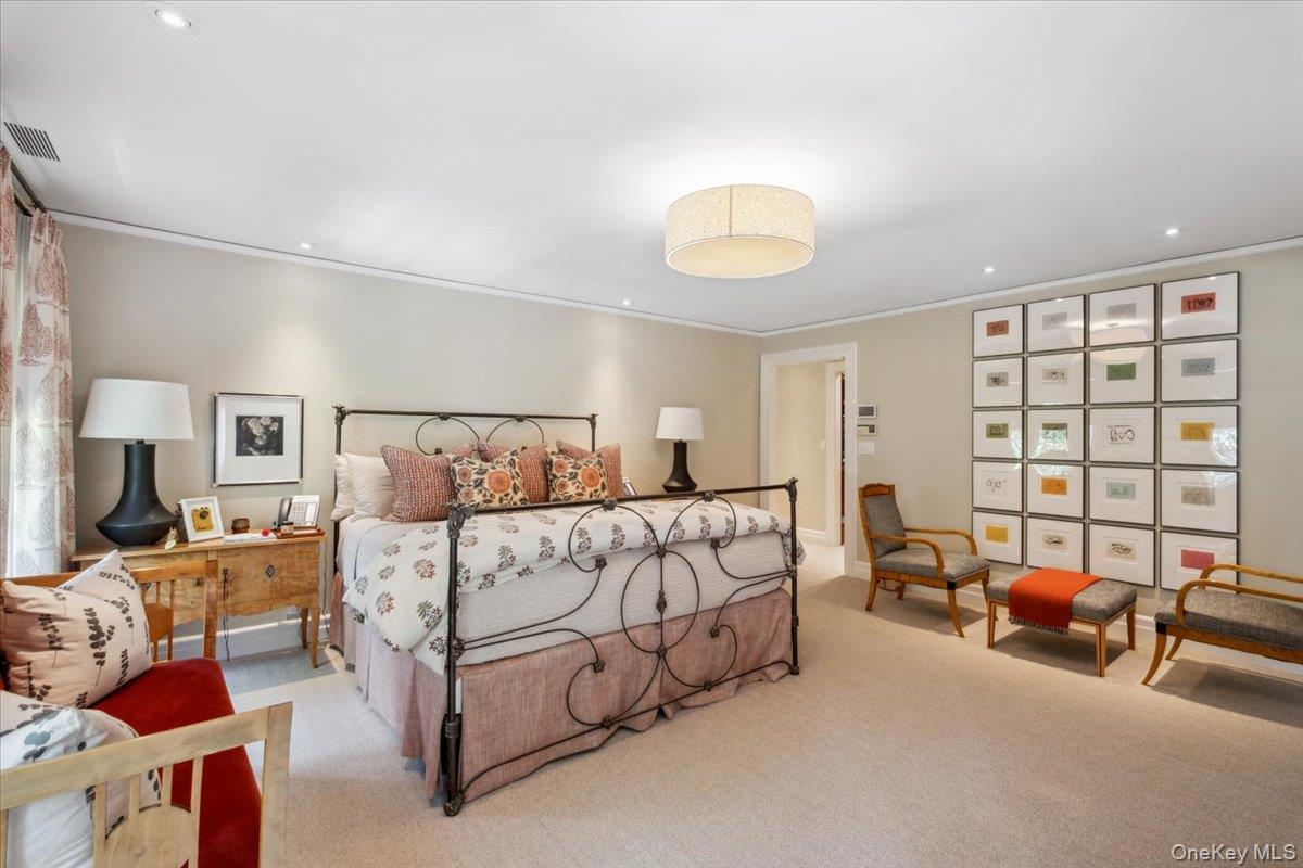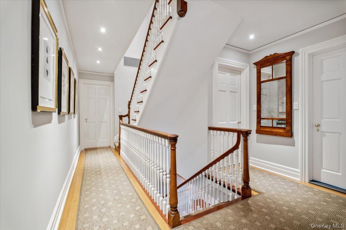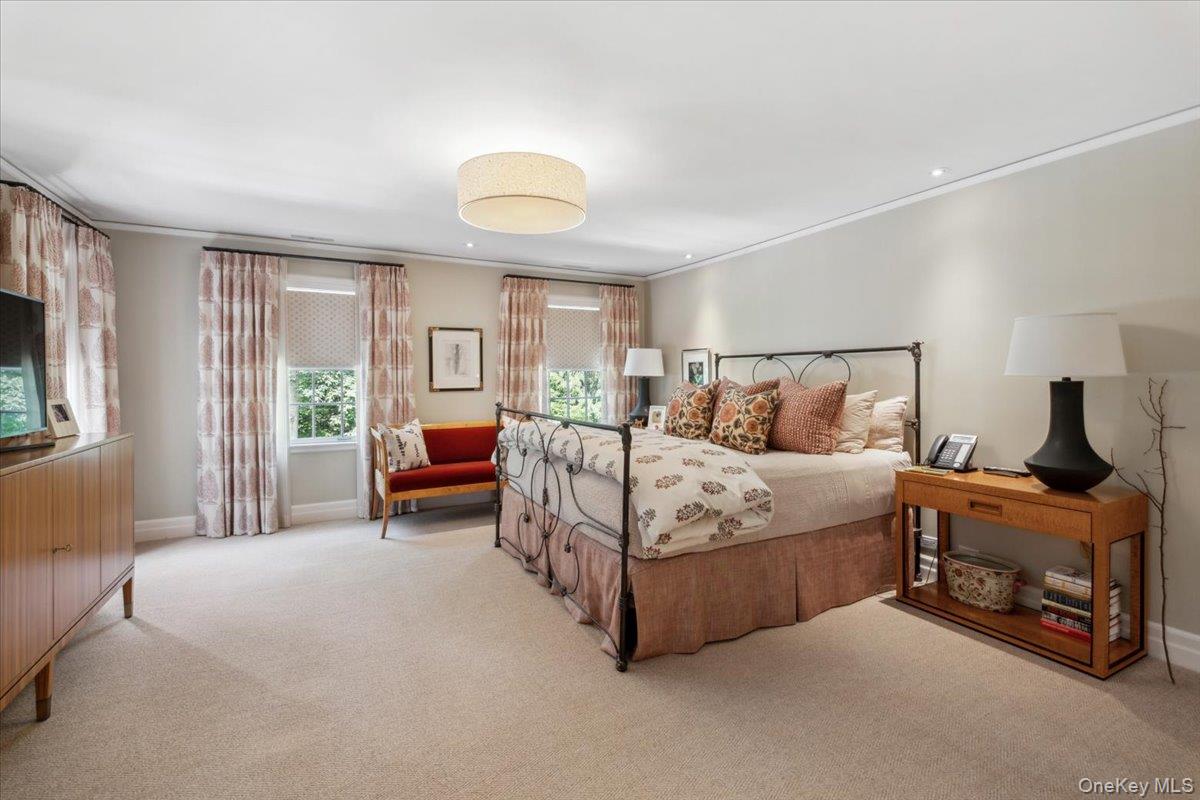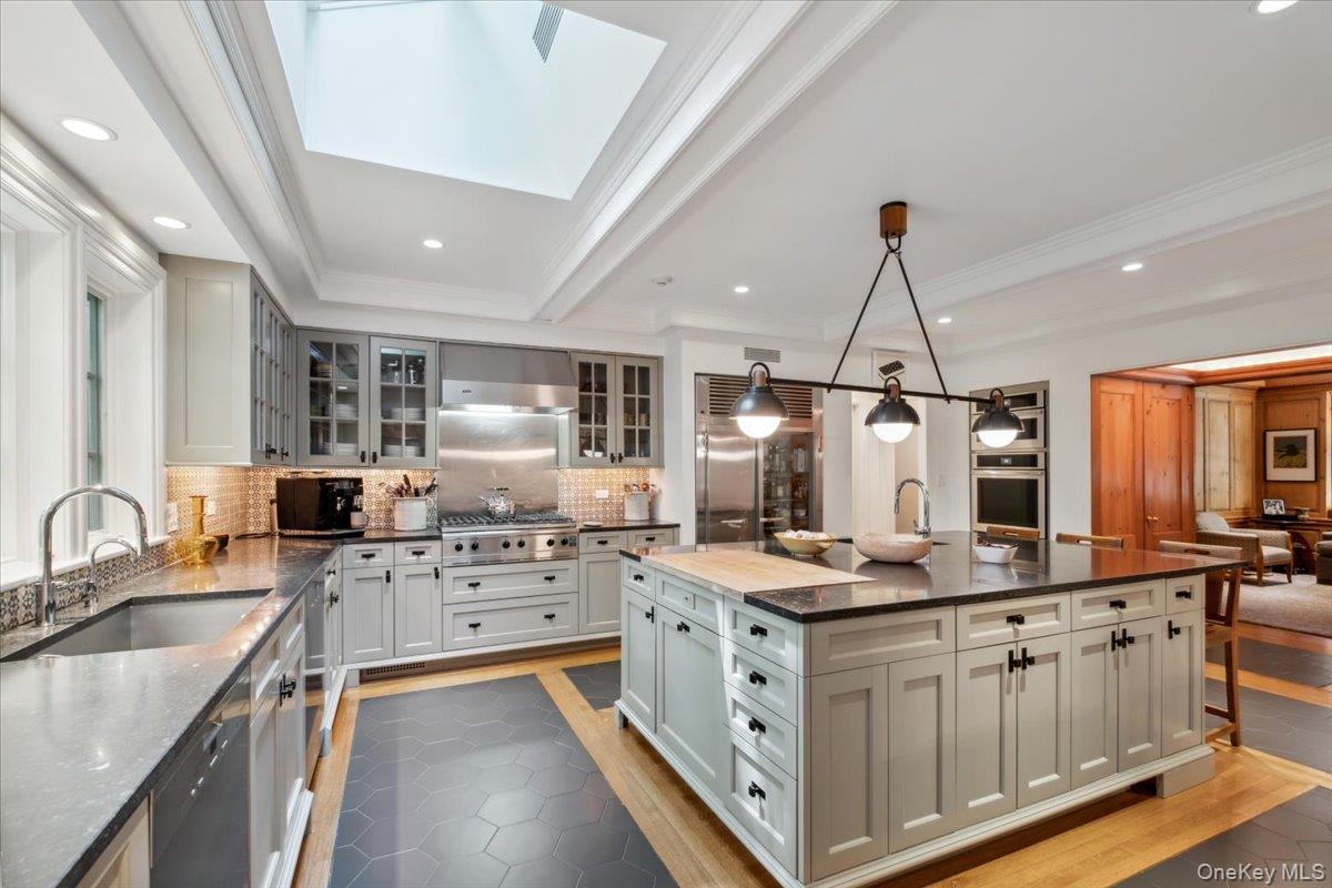 Rich in architectural detail and timeless sophistication, this exceptional eight-bedroom Colonial estate, set on 2. 13 spectacular park-like acres in Scarsdale’s coveted Heathcote/Murray Hill enclave, was thoughtfully renovated and updated in 1995 by Oliver Cope Architects. The property is complete with a meticulously maintained Har-Tru tennis court featuring classic wood posts and netted fencing while surrounding gardens and grounds were beautifully designed by British landscape architect Peter Cummin. A classic French door entrance opens to a gracious vestibule, leading into a welcoming foyer framed by striking archways and refined millwork. The oversized, formal living room, anchored by a wood-burning fireplace and bay window, opens through French doors to a screened-in porch overlooking the sweeping property. A large, formal dining room with French doors to the side grounds is ideal for elegant entertaining. The chef’s kitchen features a Traulsen glass refrigerator/freezer, six-burner Russel range with Viking hood, two Miele dishwashers, abundant custom cabinetry and drawers, a skylight, beam ceiling and an impressive large stone-topped island. A sunlit breakfast room with French doors to the bluestone patio enhances informal everyday living. A warm pine study/family room with fireplace, beam ceiling and bay window completes the main gathering spaces. Finishing the first floor is a dedicated laundry room with half bath, mudroom and convenient side entrance. Upstairs, the primary suite offers a sitting room with fireplace, terrace overlooking the property, large custom walk-in closet, spa bath with steam shower, dual vanities, soaking tub and private water closet. Additional bedrooms include one en-suite, two sharing a hall bath, and two bedrooms with a hall bathroom off the back staircase. The third floor provides two large bedrooms, a hall bath, walk-in attic/storage space and cedar closets. The tiled lower level features a recreation room with fireplace, full bath, mechanicals, and outdoor access. A full-house generator services the home. Offering complete privacy, this is a rare, timeless property defined by architectural integrity, exceptional scale and unrivaled setting. Close to Scarsdale High School, the fabulous freshly renovated Public Library, downtown shopping and dining, and the Metro-North train station, all minutes from this extraordinary estate.