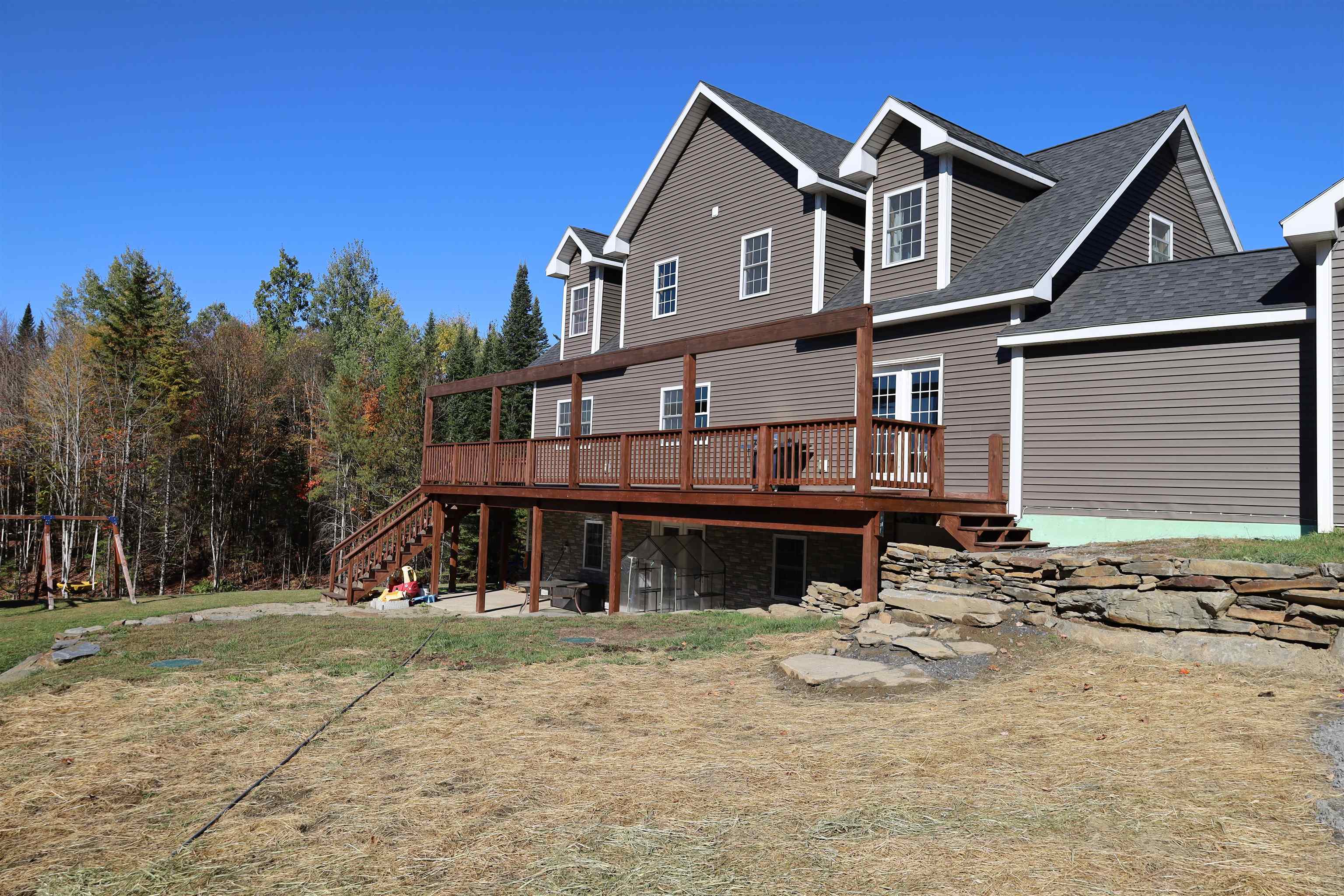 Professionally crafted in 2018 and thoughtfully designed for modern living, this expansive 3-level residence is set on 12. 27 private acres just minutes from town conveniences. Offering a seamless blend of comfort, function, and NEK lifestyle, the property invites you to live with ease. The main level showcases an open-concept layout ideal for entertaining, featuring a generous kitchen designed for baking & hosting, a spacious living area, and direct access to a large rear deck overlooking the peaceful wooded surroundings. The primary suite is conveniently located on the main floor and includes a walk-through closet and an ensuite bath complete with a soaking tub & oversized walk-in shower. A guest half bath completes this level. The second floor offers two additional bedrooms, a full bath, playroom and a dedicated home office- providing flexible space for work or creativity. The finished walkout lower level expands the living area with a game room, bonus room & half bath, ideal for guests or multi-generational living. A heated attached two-car garage includes a studio apartment above, currently generating $1, 000 per month in rental income. A detached three-car garage provides additional storage or hobby space. Outdoor features enhance the property’s appeal, with frontage along Fall Brook, a connecting stream with a kidney-shaped wade pool for summer enjoyment. VAST trail access is available from the adjoining property, and Interstate 91 is just a short drive away. Don't miss this rare opportunity to own a modern, easy-to-live-in retreat in the heart of the Northeast Kingdom.