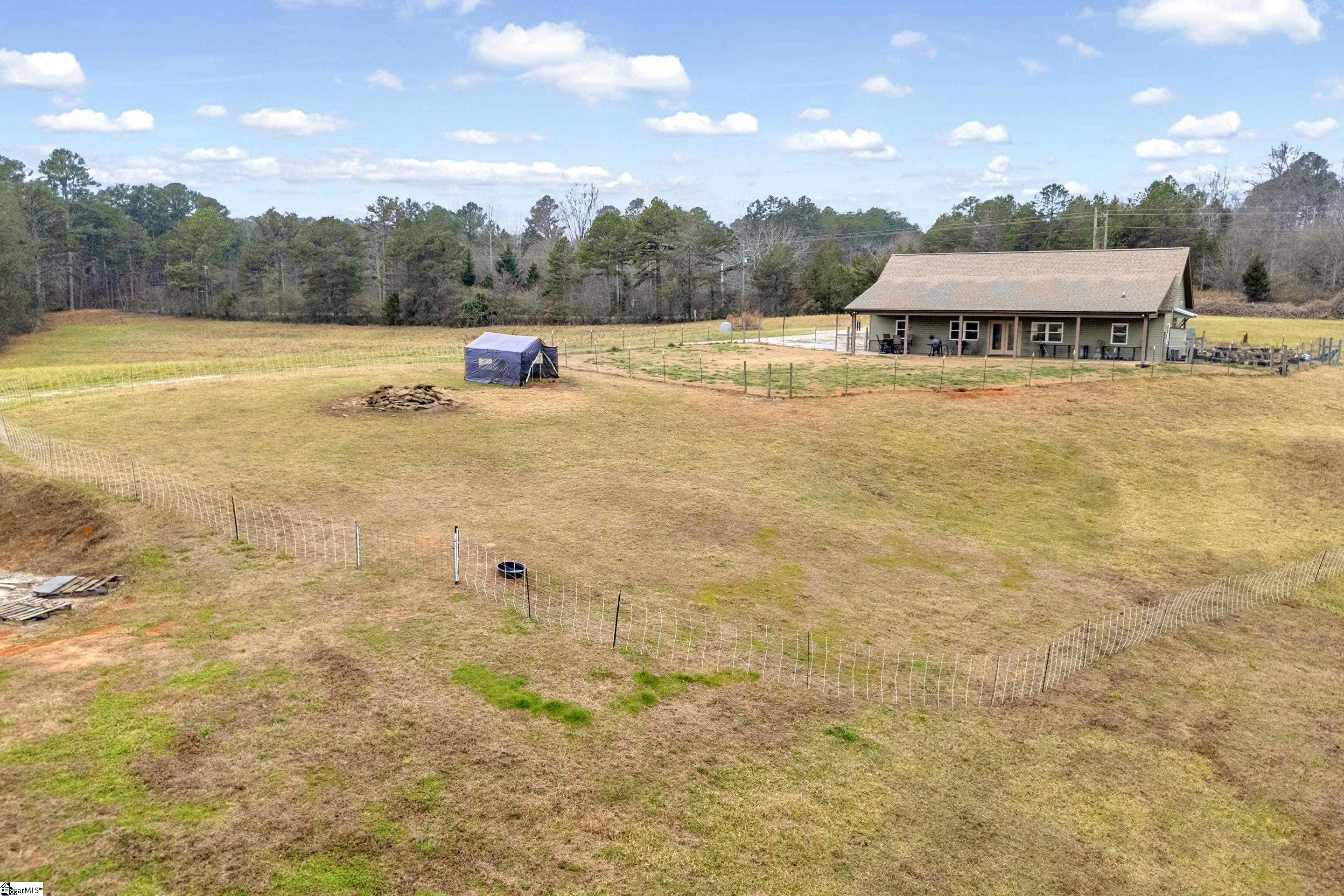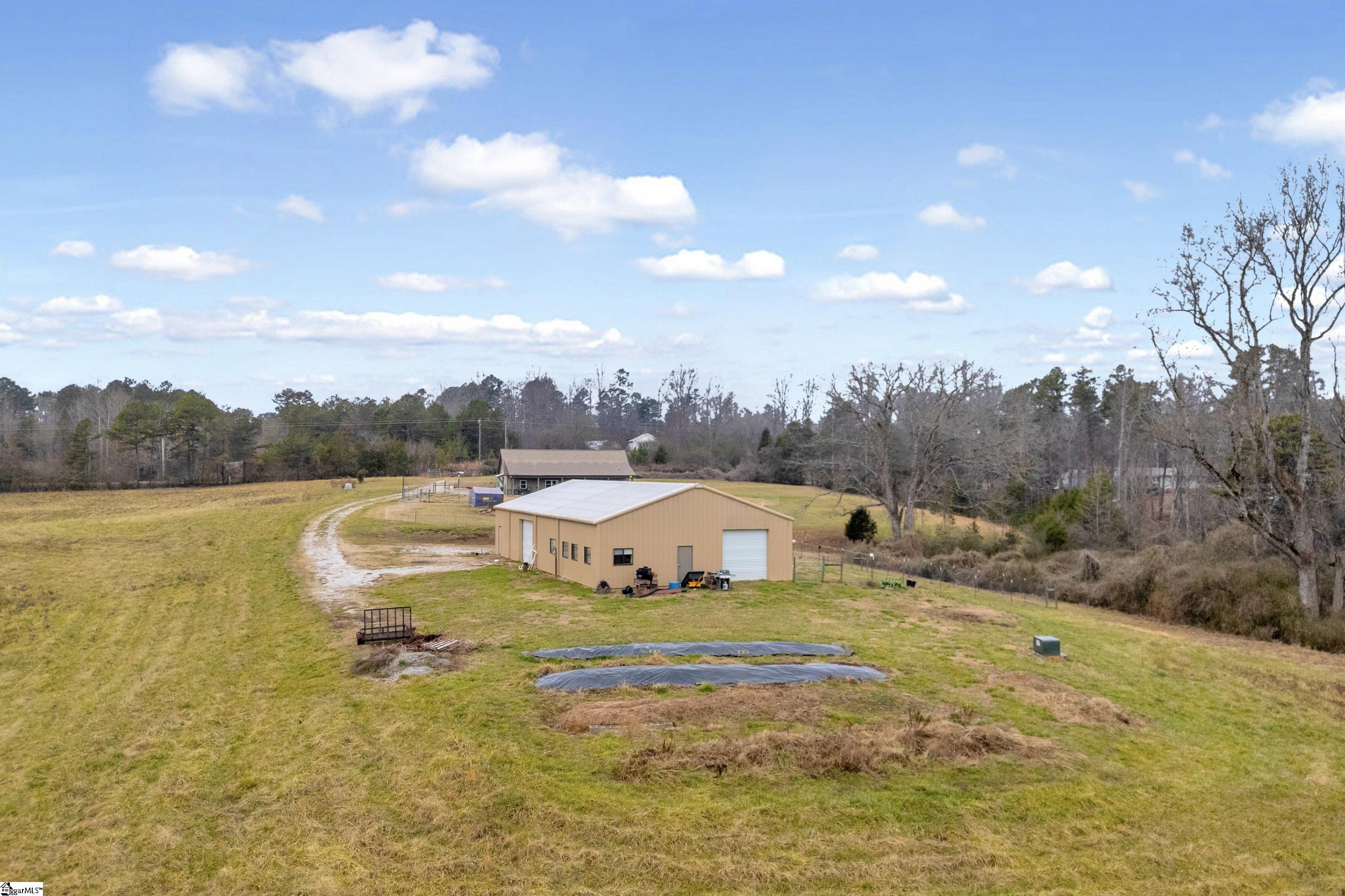 This 21. 72-acre farm property is located in the foothills of the Blue Ridge Mountains, offering productive land, strong infrastructure, and long-term agricultural and homestead potential. The property provides a private rural setting while remaining conveniently close to schools, shopping, medical facilities, and the outdoor amenities of Lake Keowee, Lake Jocassee, and Lake Hartwell. The land sits atop a sun-filled grassy knoll, making it well suited for gardening, pasture, livestock, and diversified farm operations. Currently operating as a working farm, the property supports Katahdin sheep, chickens, and a permaculture garden area. Natural creeks and springs enhance water access, and the property is fully fenced, with additional portable fencing in place for rotational grazing or smaller livestock. Multiple structures support both agricultural use and on-site living. The 1, 700+ sq ft “Poodle House” is a flexible farm building currently configured for animal care, featuring a 19x15 grooming/laundry room, 8 custom built-in kennels, a full bath in the potential primary suite, and a large half bath with space to add a shower, allowing for two full baths. This structure can continue to serve agricultural or animal-based operations or be adapted for farm housing, farm office, farm store or rental use. The property also includes a 40x80 insulated shop, ideal for equipment storage, processing, or workshop use. The shop offers two oversized garage doors, a food storage room, and a half bath/laundry room. Within the shop is an 800 sq ft, passive solar, one-bedroom apartment with a full kitchen, full bath, and separate living area, suitable for owner occupancy, farm labor housing, or rental income. A dedicated RV site with full utility hookups adds additional flexibility for seasonal use or farm help. A separate septic tank services the shop, apartment, and RV Site. With multiple additional building sites across the acreage, the property is well positioned for a primary farmhouse, barns, greenhouses, or a multi-generational farm compound. The combination of usable pasture, water features, fencing, existing structures, and location makes this property well suited for livestock farming, small-scale agriculture, homesteading, or expanded farm operations.