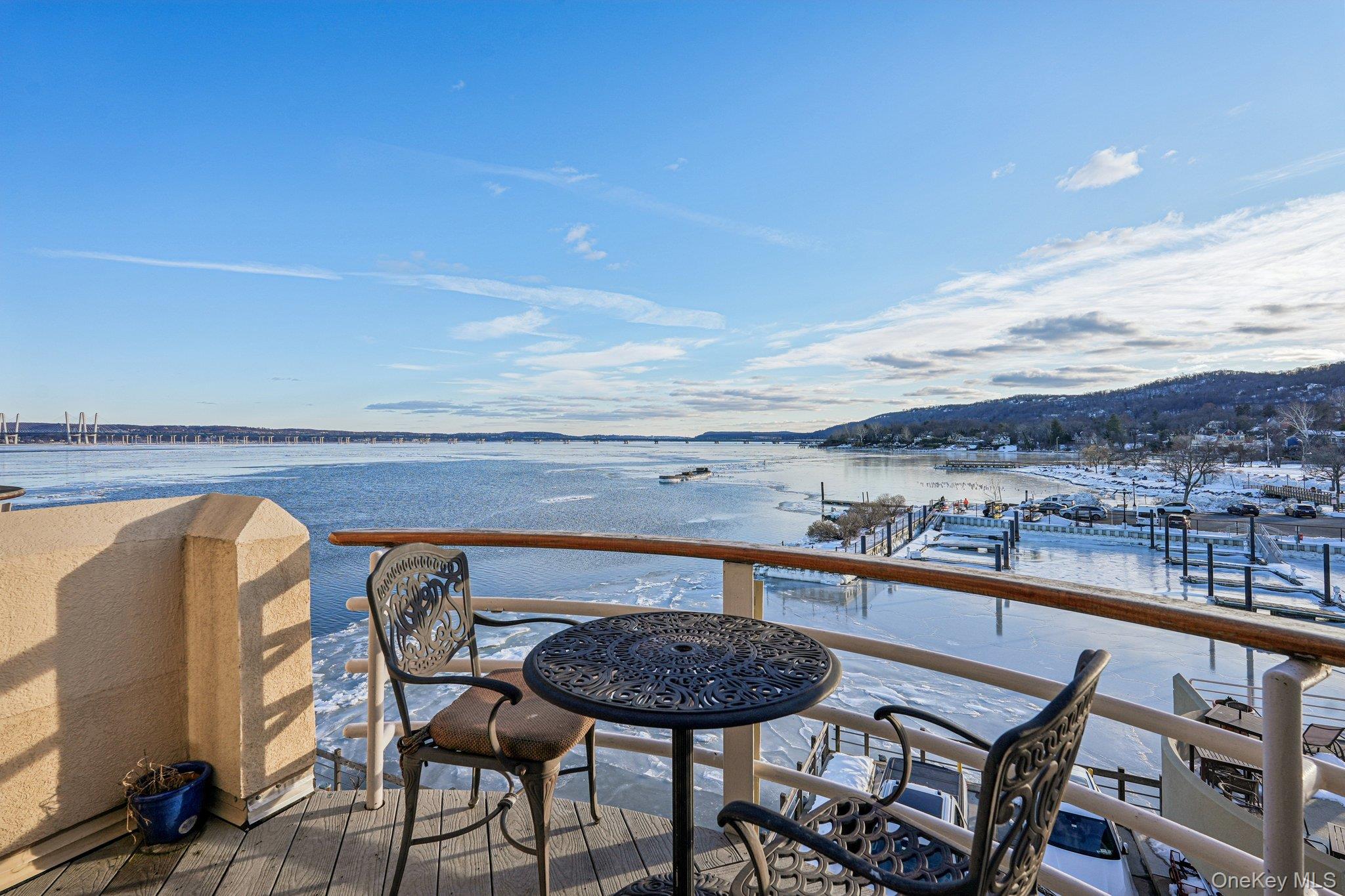 Experience extraordinary waterfront living in this dramatic three-level penthouse at the gated Clermont Condominiums in Nyack. With panoramic Hudson River views stretching north, south, and east, this rare residence offers an unmatched vantage point from nearly every level. Designed for both comfort and entertaining, the home features a wraparound deck, 28ft protected boat slip, and its own elevator to the kitchen — a truly seamless lifestyle on the river. The custom kitchen is outfitted with all new stainless steel appliances (except the dishwasher), blending style and performance. Hardwood floors run throughout, and a striking double-sided wood burning fireplace connects the living and dining areas. A massive skylight floods the interior and stairway with natural light, enhancing the home’s airy, open feel. Both full bathrooms have been fully renovated, offering updated finishes and modern design. The primary suite includes a spa-inspired bath. Additional features include central air, central vacuum and washer/dryer. Clermont’s resort-style amenities include a riverside in-ground pool, multiple barbecue areas, a fully equipped fitness center, and garage parking — all within a private, gated community. Just a short stroll to the Village of Nyack, you’ll enjoy easy access to antique shops, acclaimed restaurants, charming cafés, the farmers market, seasonal parades, and street fairs. The HOA fee covers exterior maintenance and landscaping, water, pool, gym, private elevator and boat slip, as well as unit windows and doors — making luxury living as effortless as it is spectacular. Welcome to a new level of Hudson River living.