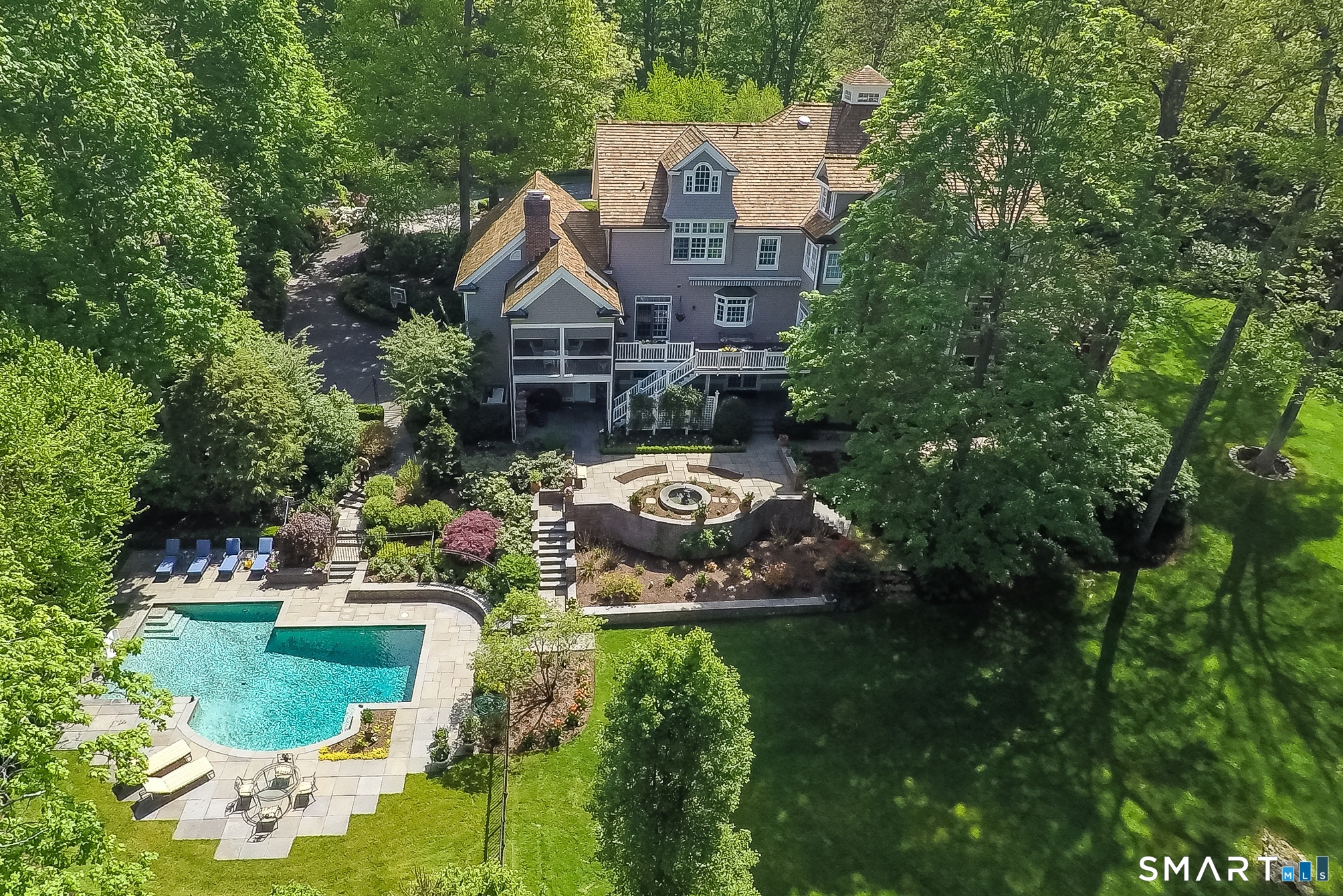 This stately Colonial home, featuring six bedrooms and six full bathrooms plus three half baths, offers an impressive blend of elegance and comfort. Upon arrival, you are greeted by beautiful landscaping and meticulously maintained gardens, setting a tranquil tone for the entire property. The entryway immediately captivates with its twin staircases and a soaring ceiling, creating a dramatic and welcoming first impression for guests and residents alike. Designed with ample room for everyone, the home boasts a comfortable living room perfect for relaxation, an inviting solarium filled with natural light, a chef's kitchen ideal for culinary pursuits, and a generous family room that serves as a central gathering space. During the summer months, enjoy leisurely days by the pool or savor picturesque sunsets from the comfort of the screened porch, making outdoor living a delightful experience. With four fully finished floors, this home provides all the space and amenities needed to accommodate contemporary living in style and comfort. Sale is subject to Probate Court Approval.