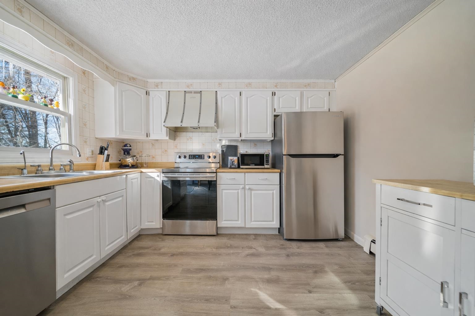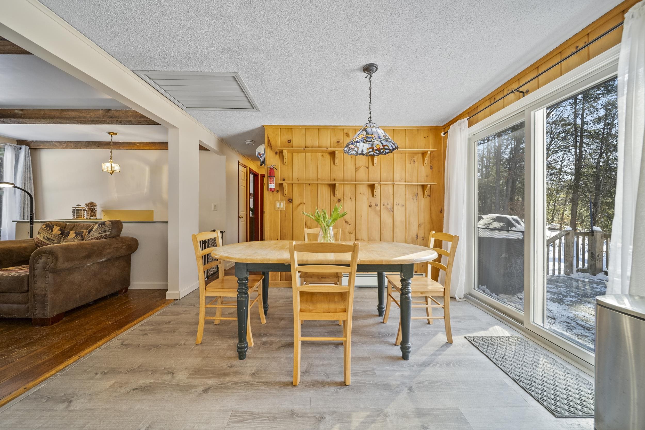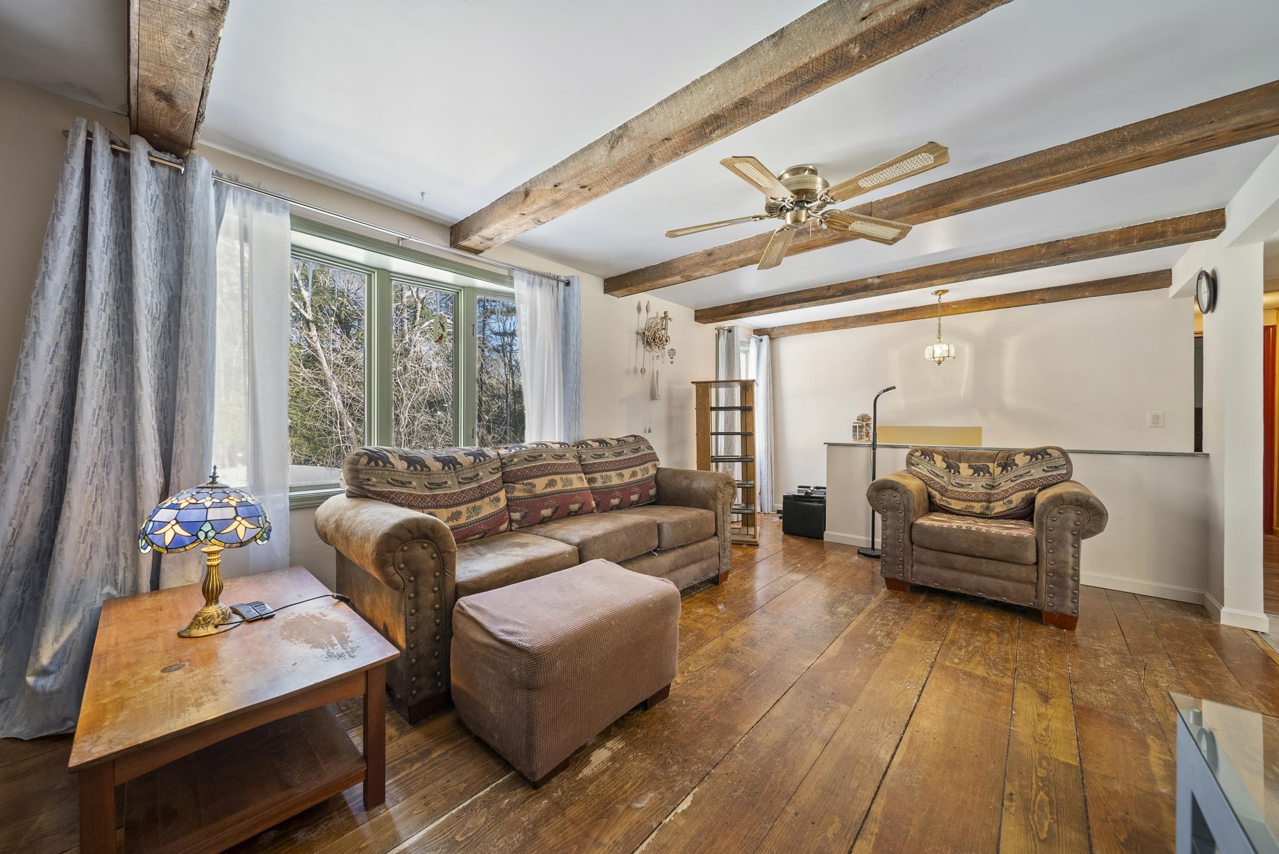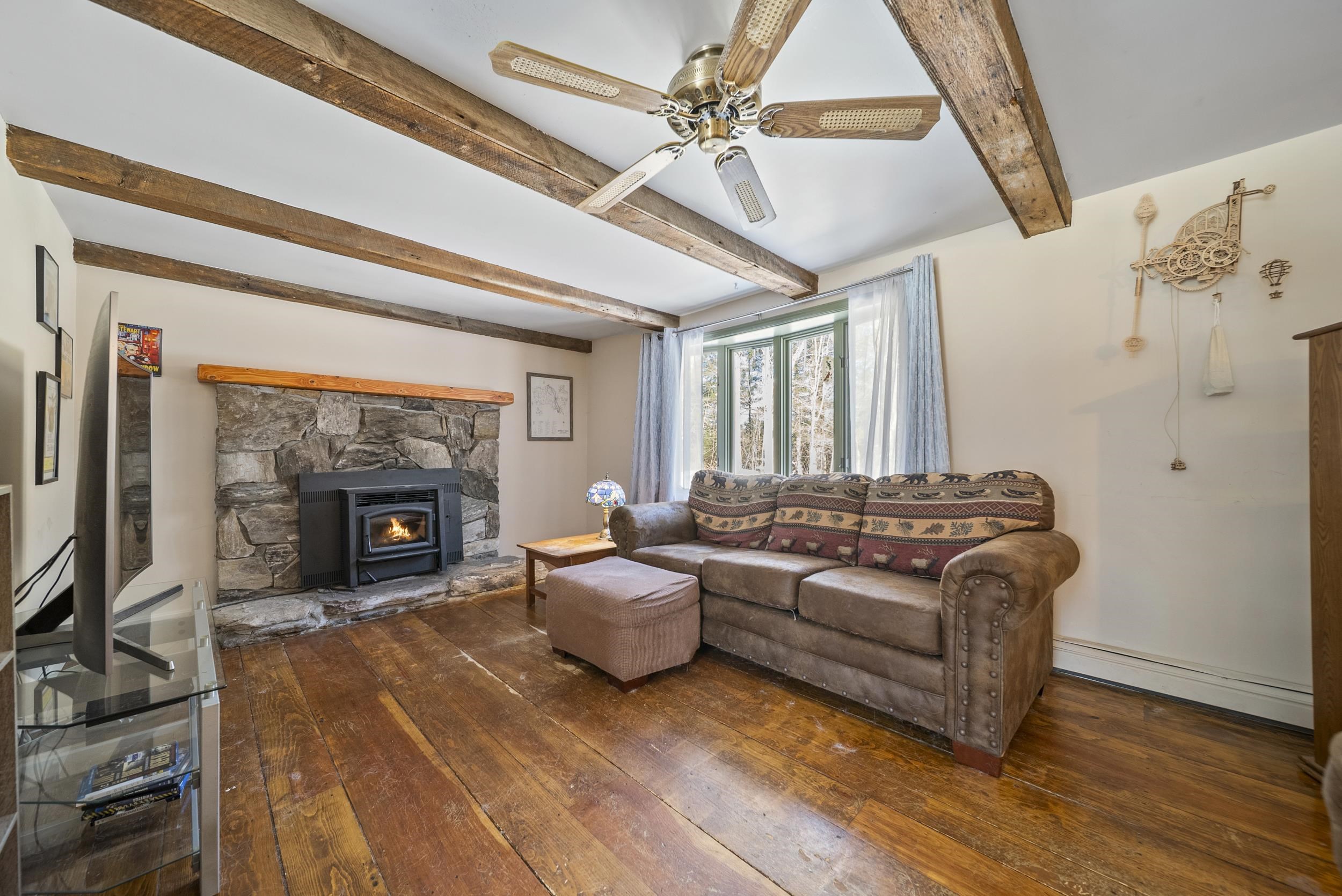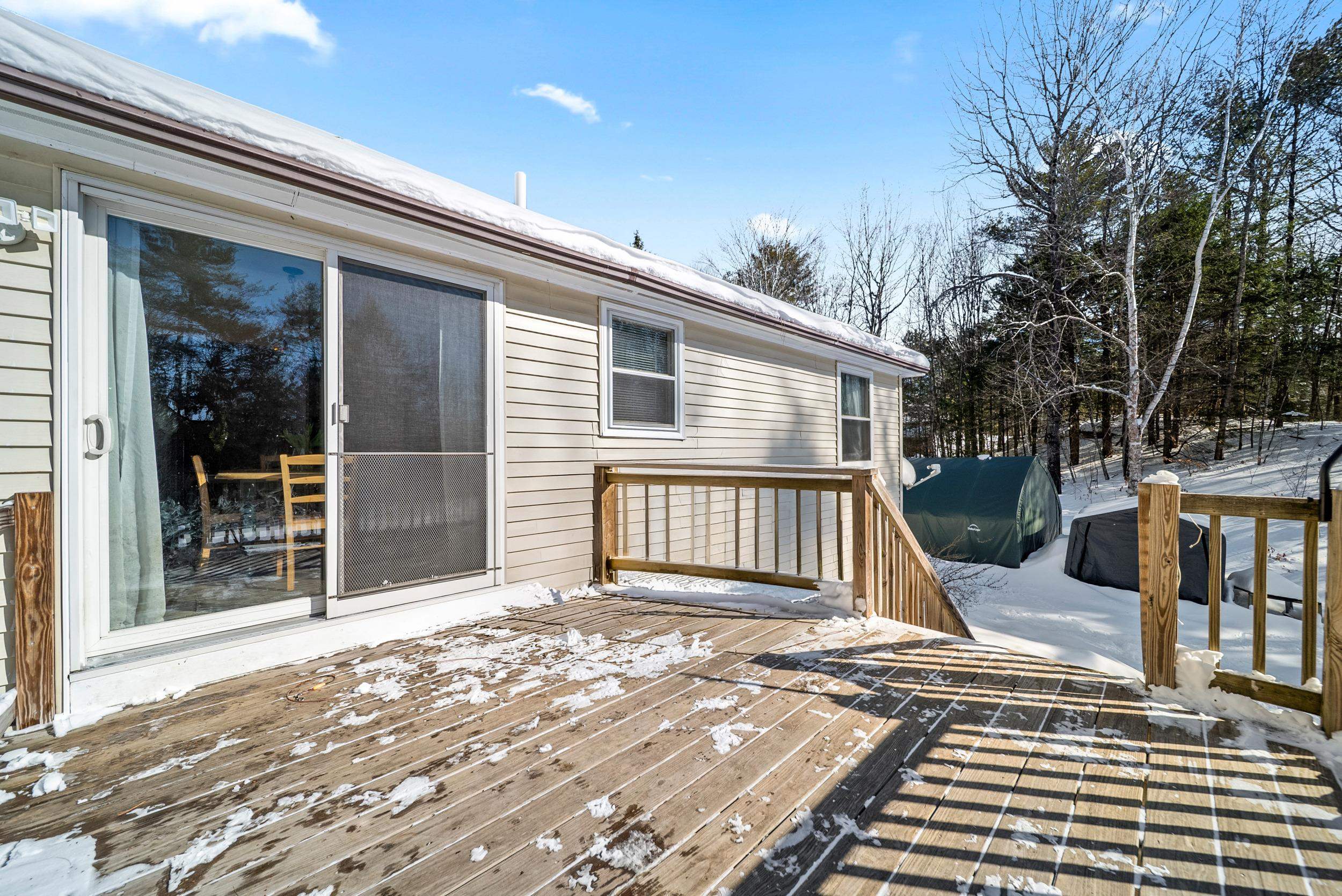 Set along a scenic country backroad in the heart of Dunbarton, this private retreat offers the space, serenity, and natural surroundings buyers crave. Nestled on over 7 acres of wooded land and abutting conservation land, this well-maintained 2-bedroom, 1-bath home delivers exceptional privacy in one of southern New Hampshire’s most sought-after towns. The main level features a sun-filled living room with wide pine floors, anchored by a cozy pellet stove—perfect for efficient, comfortable warmth during New England winters. The bright eat-in kitchen opens to a deck overlooking the expansive backyard, where you can enjoy peaceful views of the woods and frequent sightings of local wildlife, including deer and wild turkeys. Two comfortable bedrooms and a full bath complete the upper level, while the partially finished lower level provides flexible living space ideal for a home office, guest area, gym, or hobby rooms, along with laundry, workshop space, and generous storage. Notable features include a Kinetico water treatment system and reverse osmosis, whole-house fan, laundry chute, and oversized hot water tank. Surrounded by nature yet conveniently located for access to Concord, commuter routes, and nearby amenities, this property offers a rare combination of scenic backroad living, conservation frontage, and everyday functionality. A special opportunity to enjoy acreage, privacy, and the quiet beauty of Dunbarton, NH.